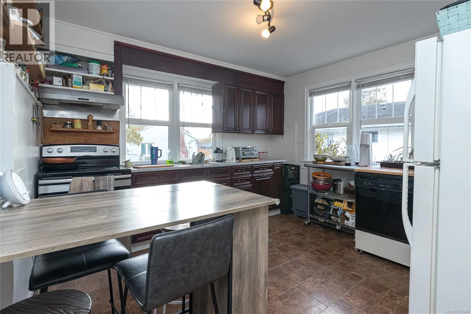 Located in the popular Saanich/Oak Bay Border area, this character home offers versatility and convenience. The upper level features three bedrooms and one bathroom, showcasing hardwood floors, updated vinyl windows, and a cozy gas fireplace. The lower level, with its separate entrance, includes 2 bedrooms and 1 bathroom â easily suited for extended family. Enjoy a large, fully fenced and private backyard perfect for kids, pets, or entertaining. Additional highlights include a spacious attached garage, upgraded 200-amp electrical service, and off-street parking for two vehicles. Ideally located just minutes from UVic, Camosun College, Jubilee Hospital, schools, and Hillside Mall, this property combines charm, functionality, and unbeatable convenience â perfect for first-time buyers, young families, or savvy investors. (id:27476)