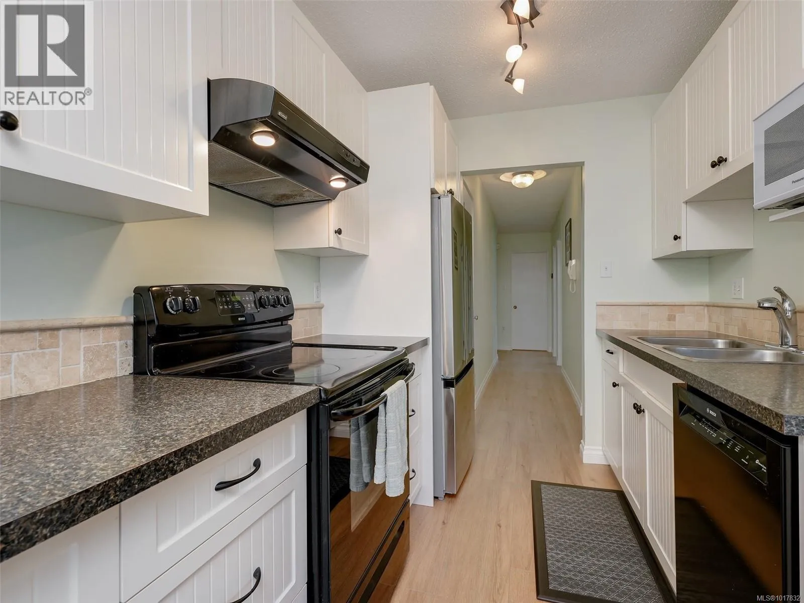 Welcome to Colony Park Manor - a well-maintained complex with fantastic amenities and an unbeatable central location. A Walk Score of 84 and Bike Score of 80, this home offers true convenience. Inside this updated two-bedroom suite, youâll find a spacious foyer with ample storage and new laminate floors that flow throughout most the home. The kitchen has been modernized with new appliances, extended counters, built-in desk and connects seamlessly to the open dining and oversized living area. Natural light pours through the wall of glass and patio doors leading to a 95 sqft private balcony, extending your living space. Both bedrooms are generously sized with large closets, new vinyl windows and blackout blinds. The renovated bathroom features a deep soaker tub & updated ceramic tile surround. The complex includes a pool, sauna, recreation room & workshop. Close to UVic, Mount Tolmie, Gordon Head Rec Centre & just minutes to downtown. All amenities just a few steps from your front door. (id:27476)