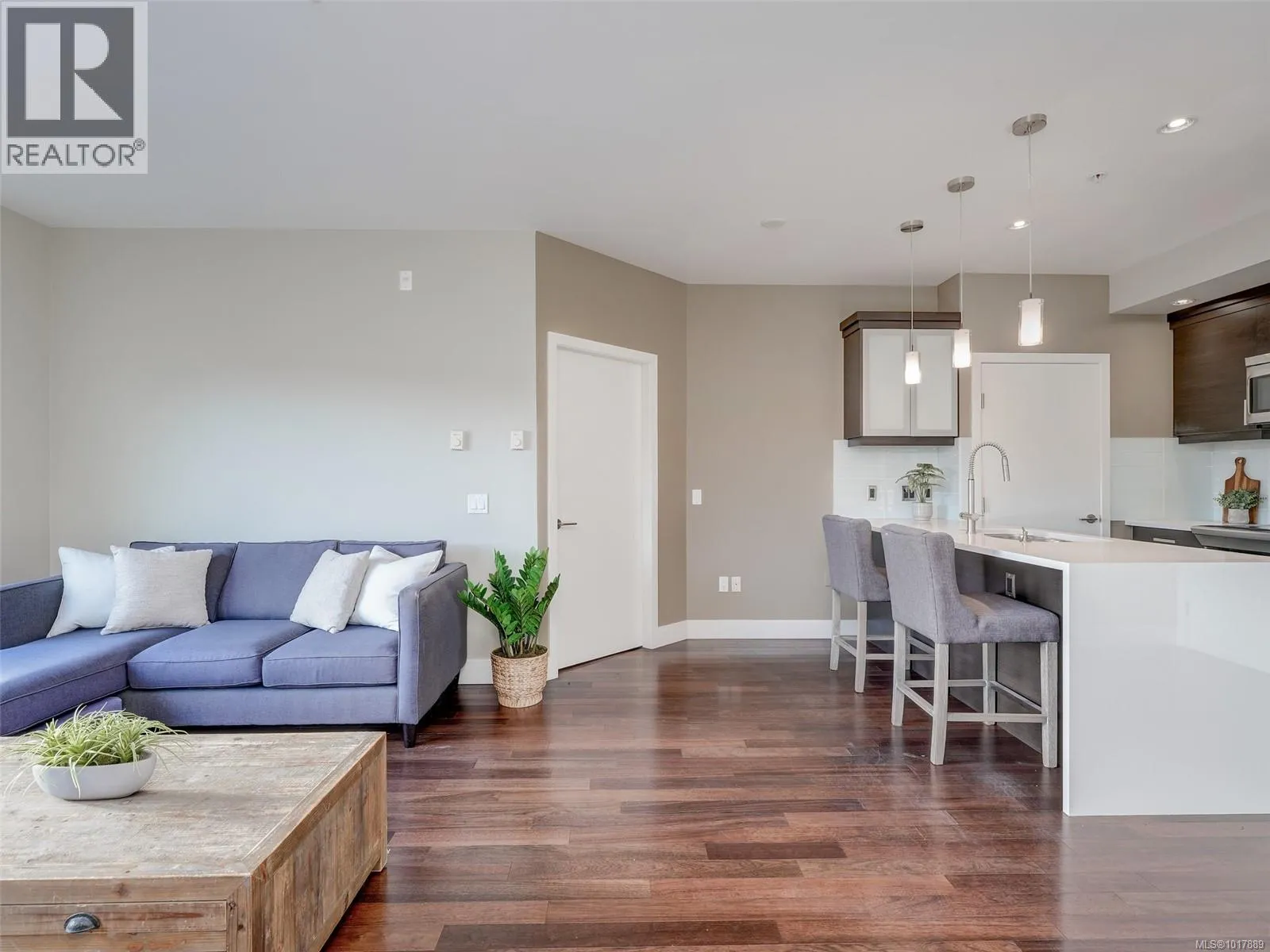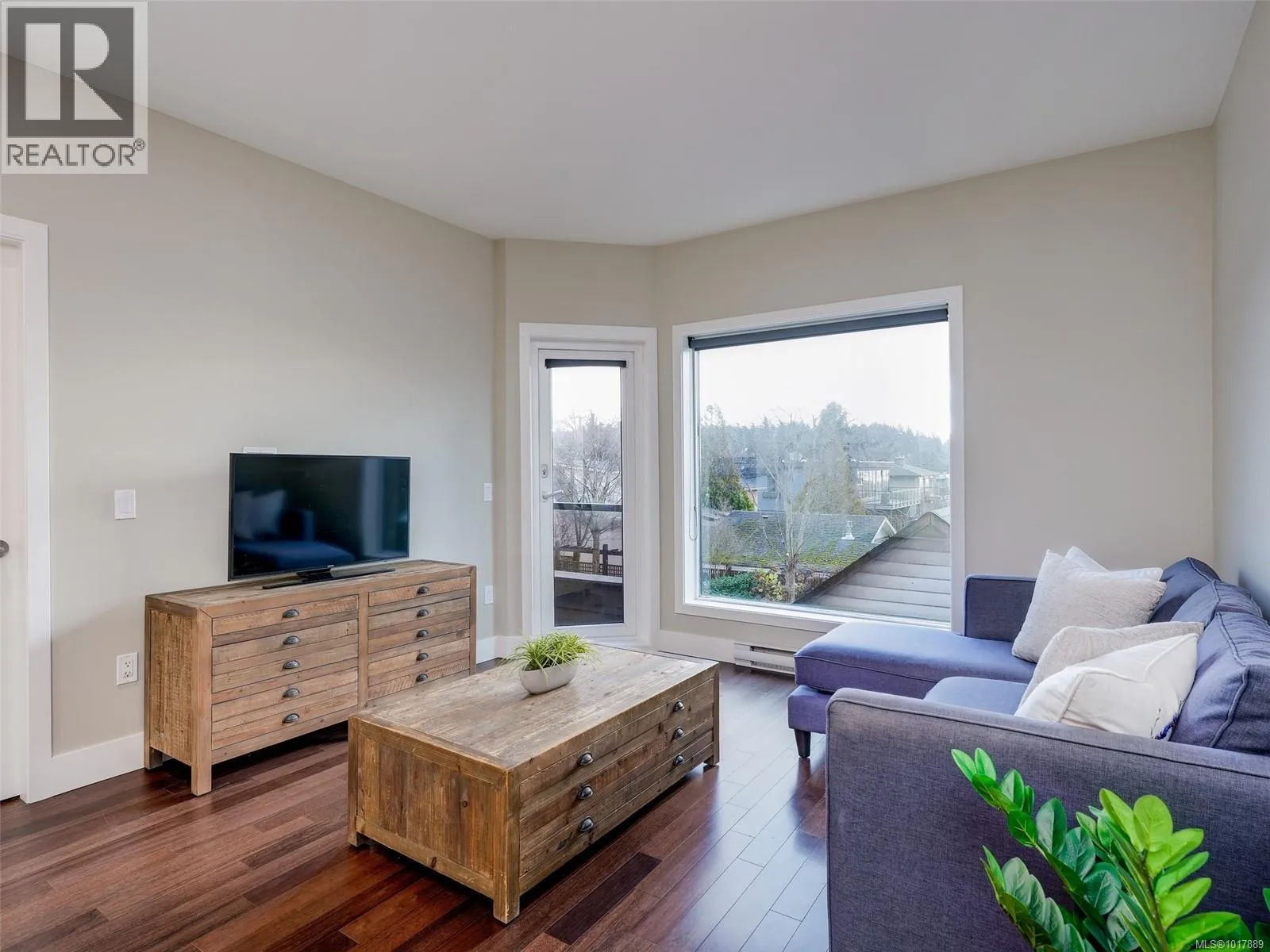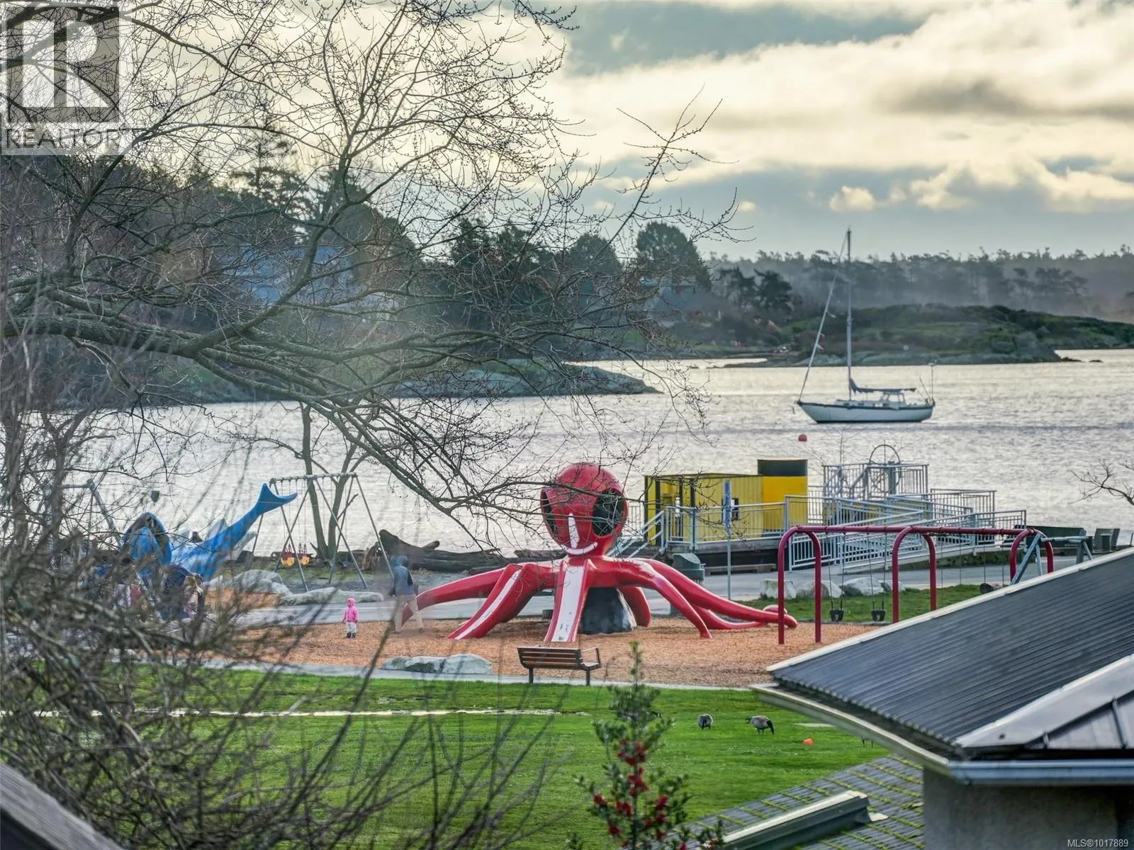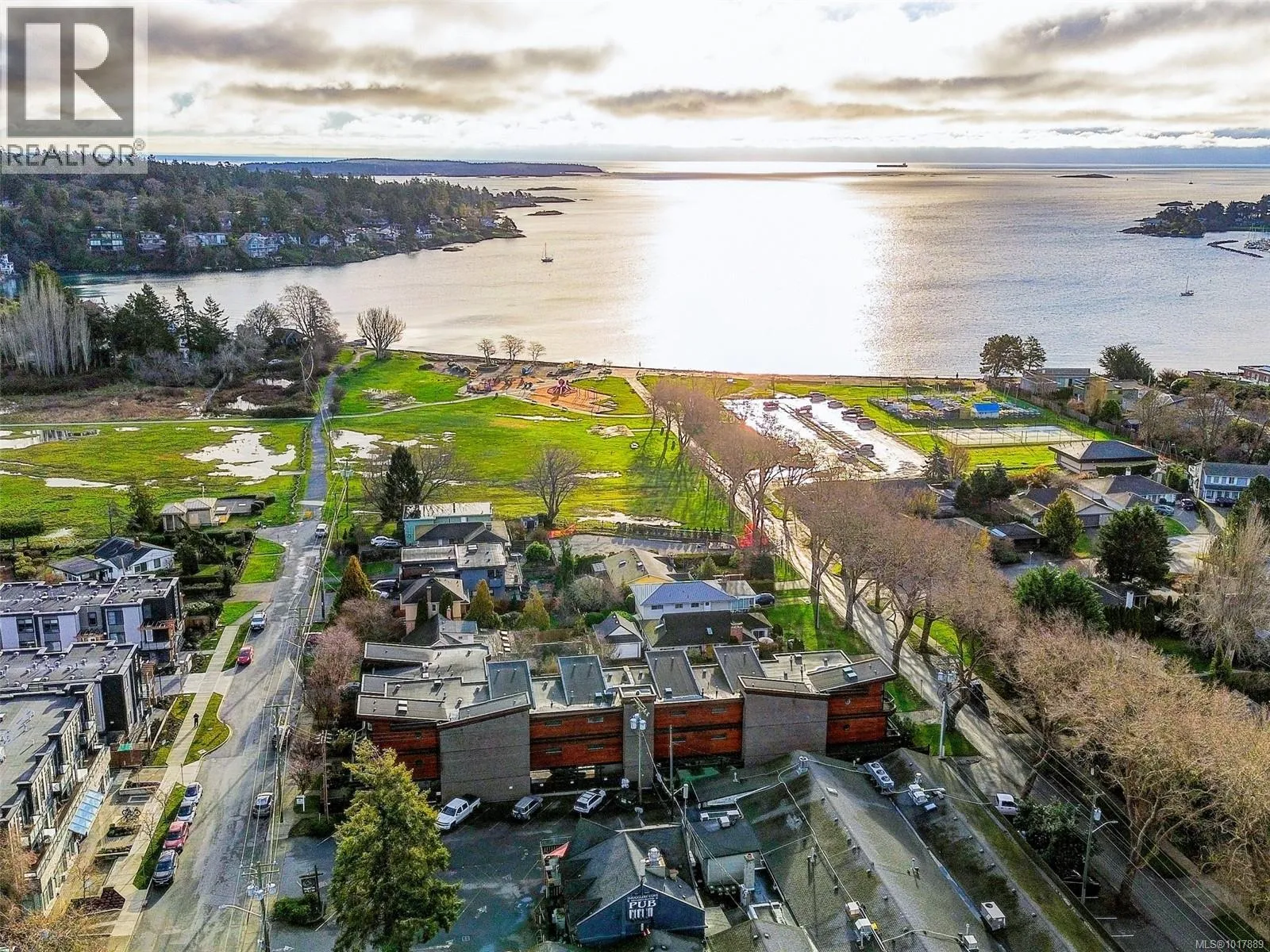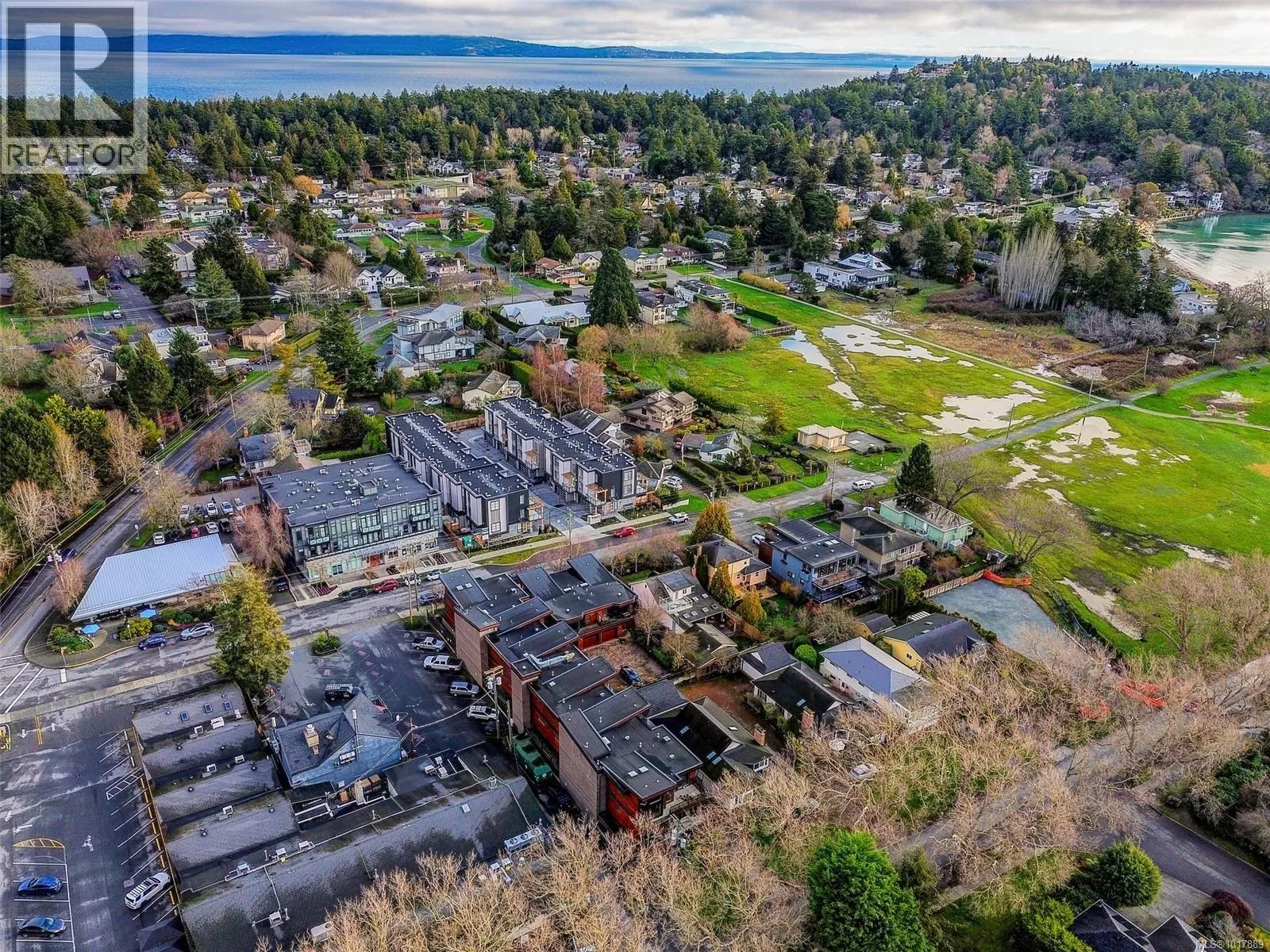 Direct and unobstructed OCEAN VIEWS from all principle rooms in this bight and modern 2 bed, 2 full bath condo. The ''Promenade'' is situated in the heart of the CADBORO BAY VILLAGE only a few steps from the sandy beach @ Gyro Park. In fact, you can watch kids playing on the Red Octopus from your South Facing Balcony. Inside you will find an amazing floor plan with the bedrooms on opposite sides of the open kitchen & living room. The features include hardwood flooring, quartz countertops, wood cabinets w/soft close doors, S/S appliances, in-suite laundry, 9' ceilings and heated tile floors in both bathrooms. A gorgeous ensuite off the master bedroom and convenient in-suite laundry make this a very comfortable place to live. Also, 1 covered parking stall and a secure storage locker are included. Walking distance to the University of Victoria and so many other amenities like Pepper's Foods, Smuggler's Cove Pub, and much more. Pets and rentals allowed. Book a viewing while you still can! (id:27476)