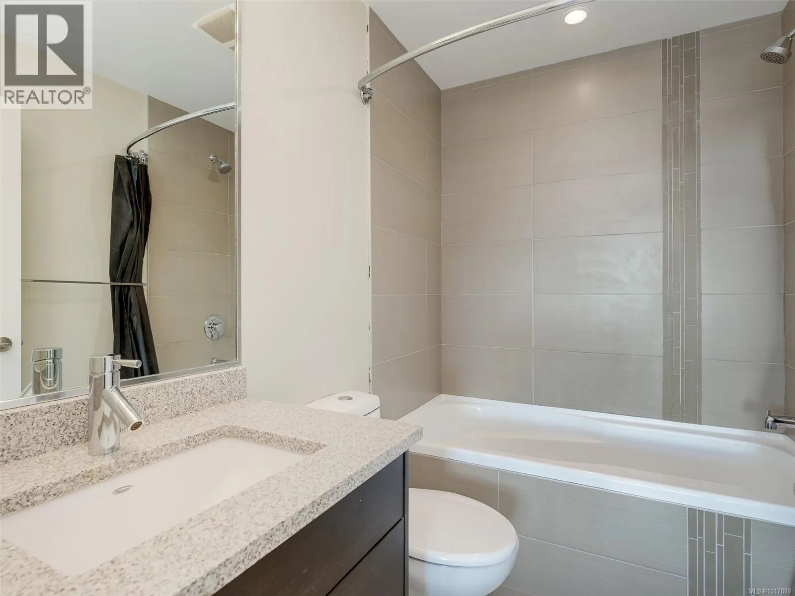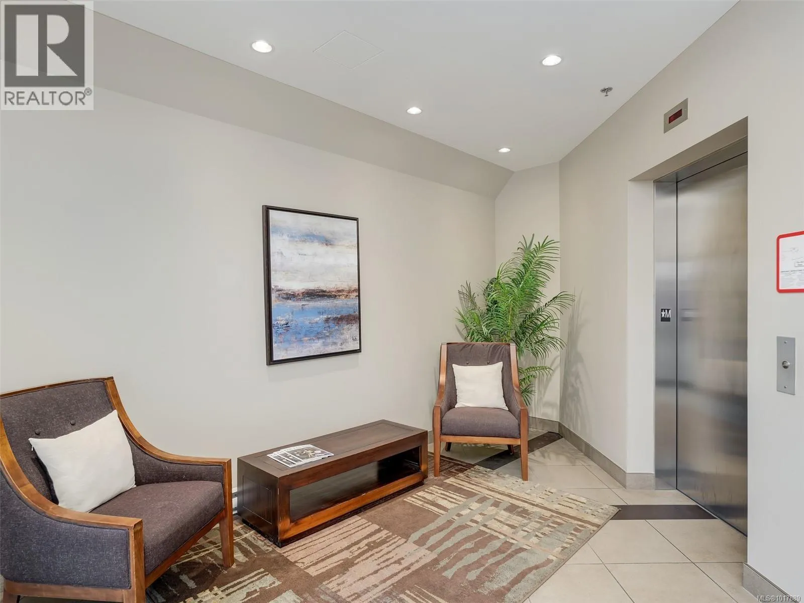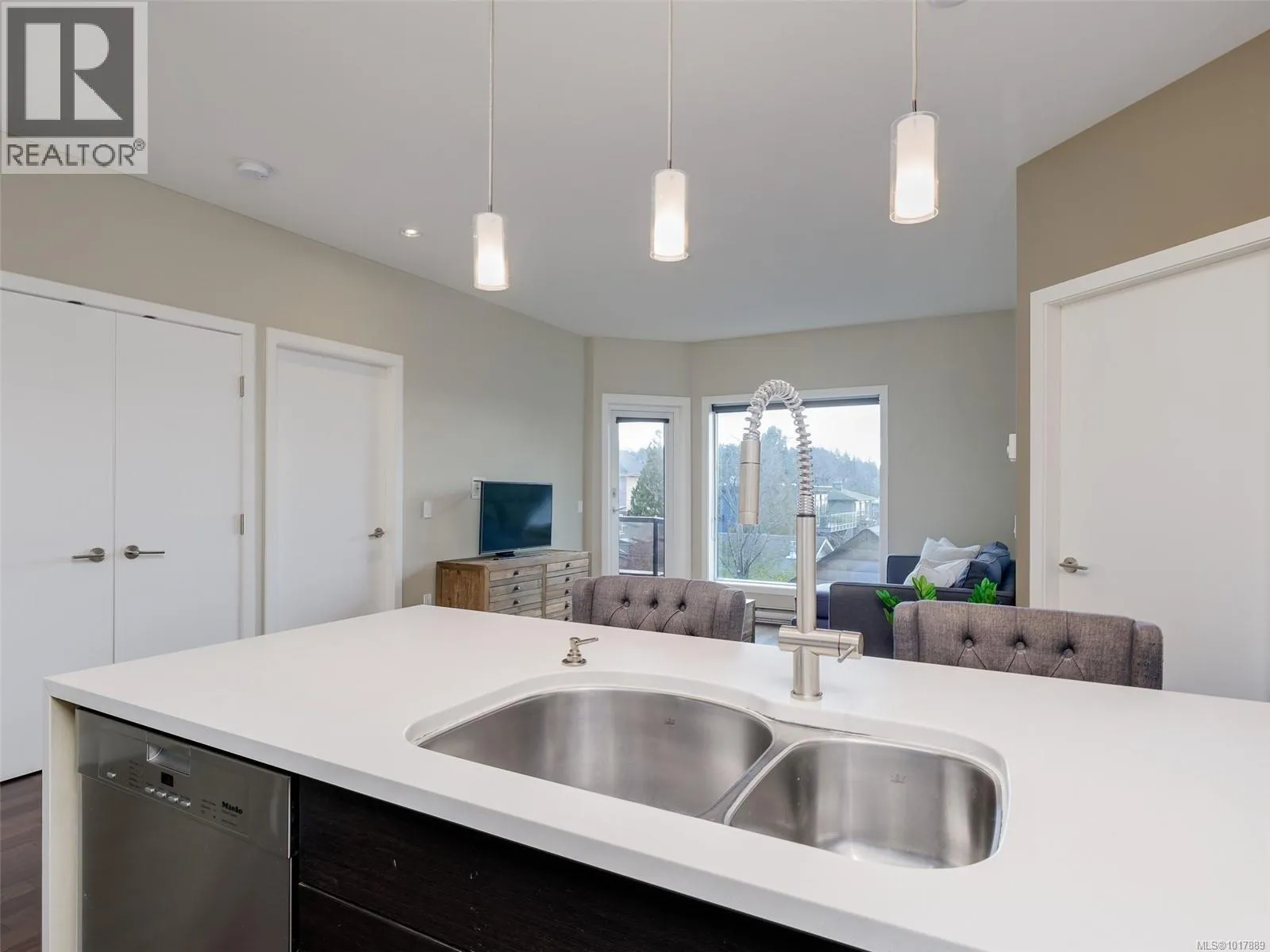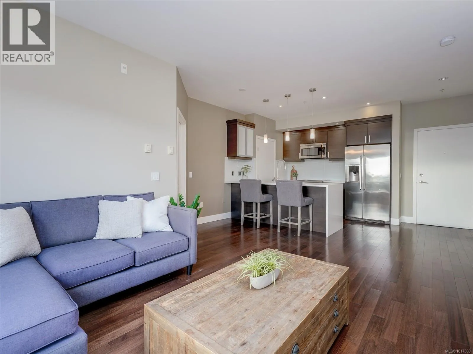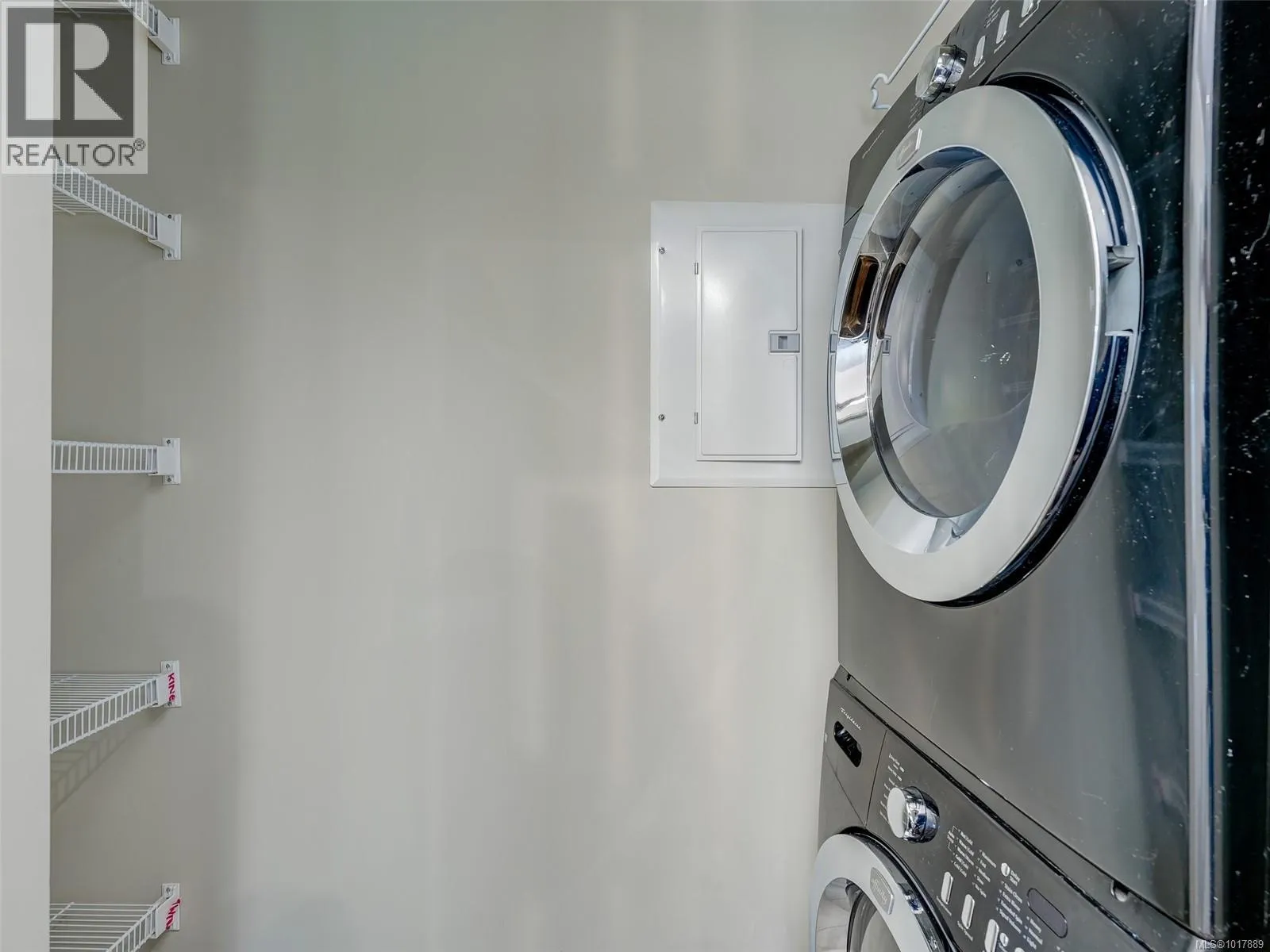 Direct and unobstructed OCEAN VIEWS from all principle rooms in this bight and modern 2 bed, 2 full bath condo. The ''Promenade'' is situated in the heart of the CADBORO BAY VILLAGE only a few steps from the sandy beach @ Gyro Park. In fact, you can watch kids playing on the Red Octopus from your South Facing Balcony. Inside you will find an amazing floor plan with the bedrooms on opposite sides of the open kitchen & living room. The features include hardwood flooring, quartz countertops, wood cabinets w/soft close doors, S/S appliances, in-suite laundry, 9' ceilings and heated tile floors in both bathrooms. A gorgeous ensuite off the master bedroom and convenient in-suite laundry make this a very comfortable place to live. Also, 1 covered parking stall and a secure storage locker are included. Walking distance to the University of Victoria and so many other amenities like Pepper's Foods, Smuggler's Cove Pub, and much more. Pets and rentals allowed. Book a viewing while you still can! (id:27476)