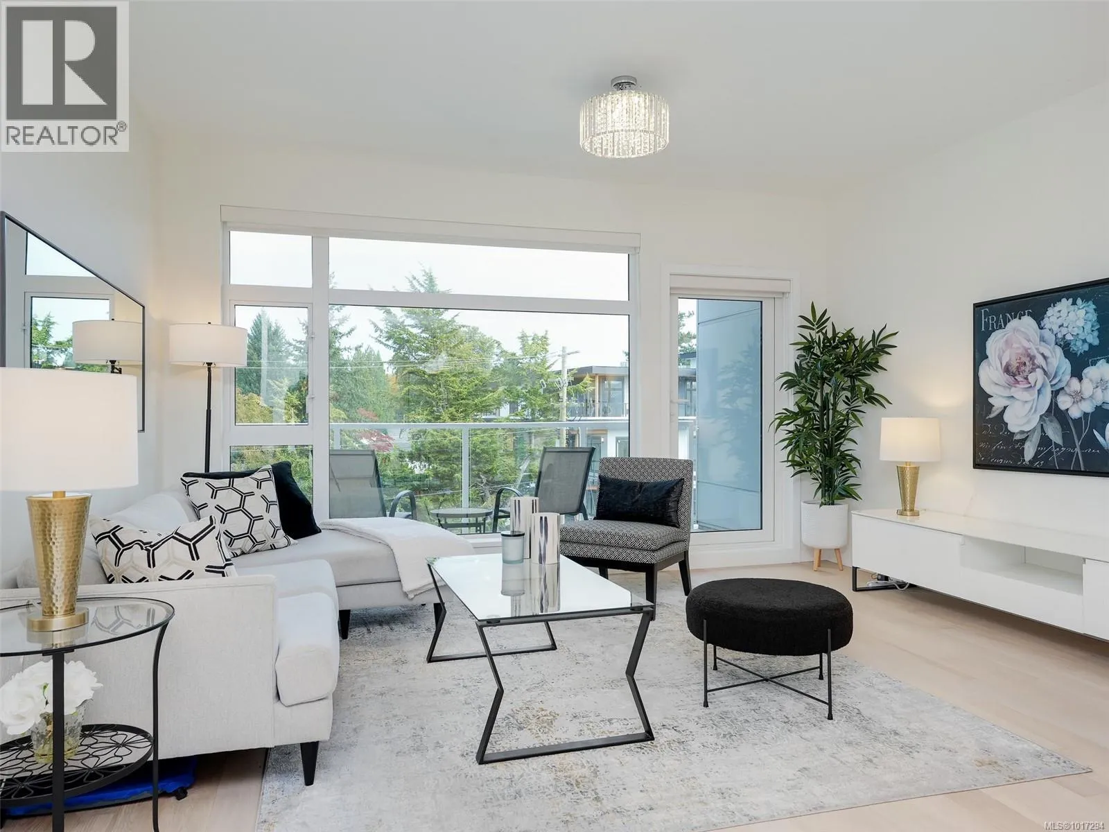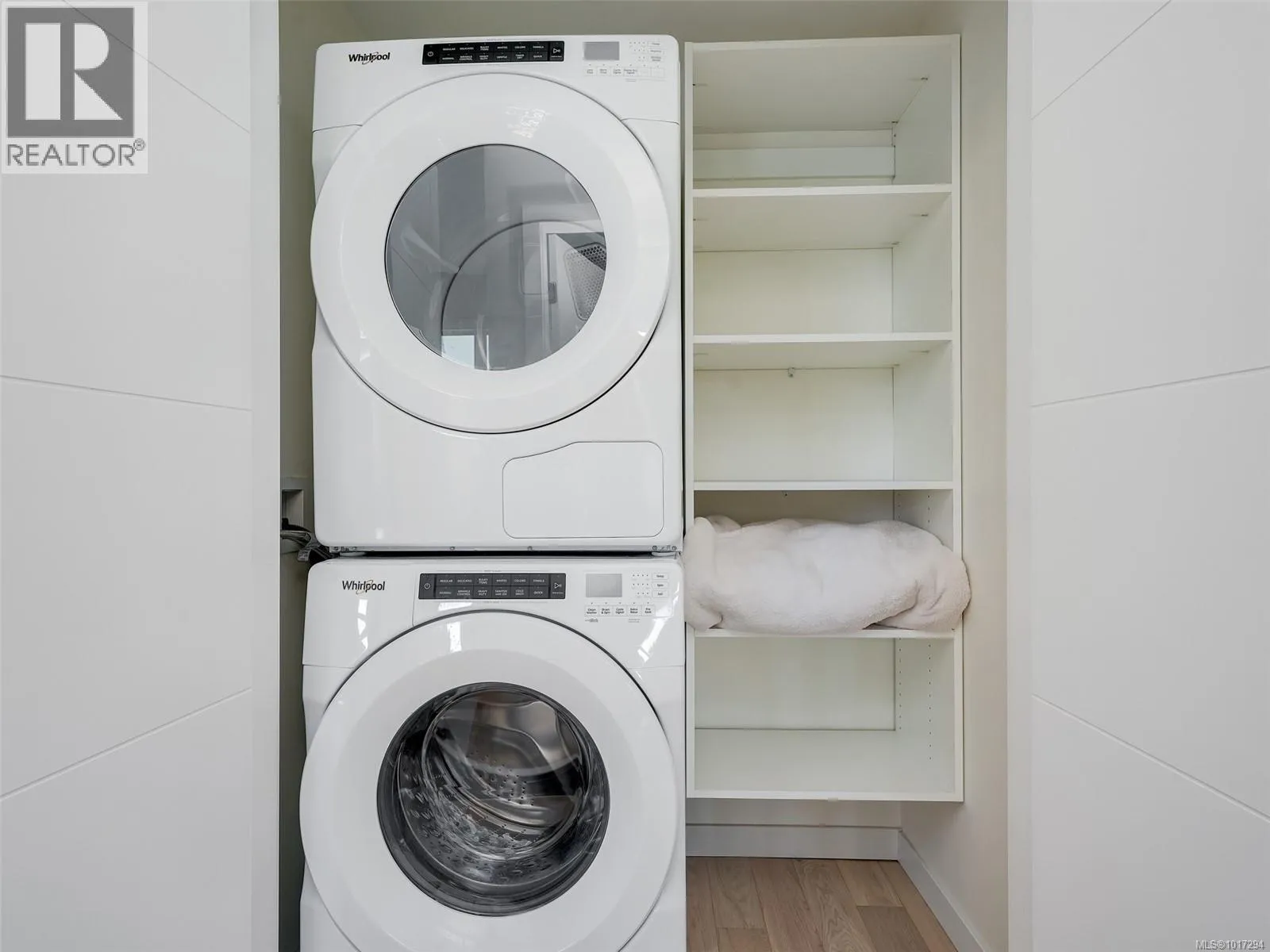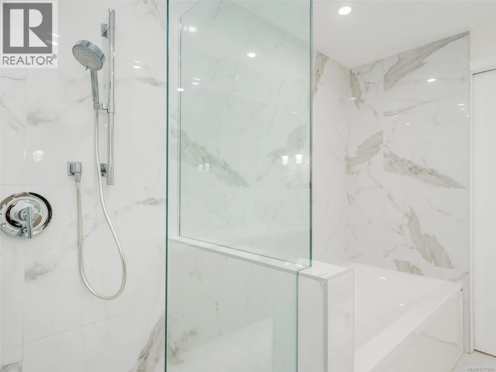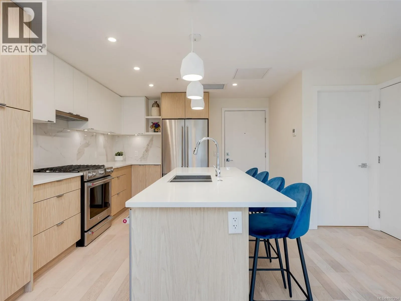 COASTAL LIVING AT THE PRESTIGIOUS HARO. Enjoy ocean views from your 1 bedroom, 2 bath condo that captures luxurious living in beautiful Cordova Bay. The interior showcases a chef-inspired kitchen with premium KitchenAid appliances, sleek quartz countertops, and ample pantry storage. Hardwood flooring guides you to the primary suite, which includes a walk-in closet, a spa-like 5-piece ensuite with a deep soaker tub, heated floors, and dual vanities. Gas outlet on the deck for your BBQ or fire pit. Added conveniences include in-suite laundry, secure underground parking, separate storage locker, bike storage all in a pet friendly complex. Situated on the quiet side of the building ensures a peaceful atmosphere. Short stroll to the ocean, close to restaurants, gym, shopping, Mattick's farm and an easy commute to downtown, ferries and the airport. (id:27476)