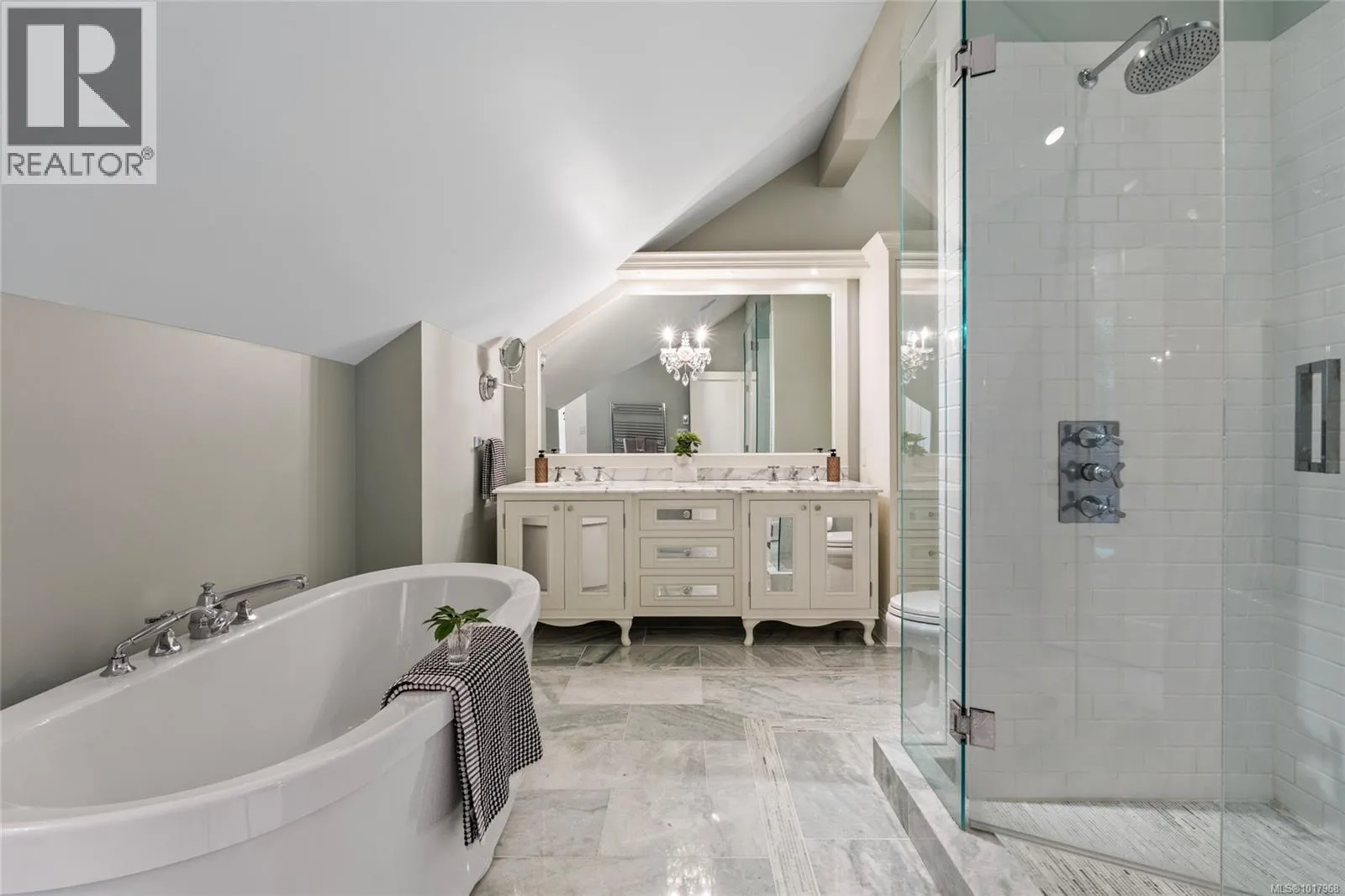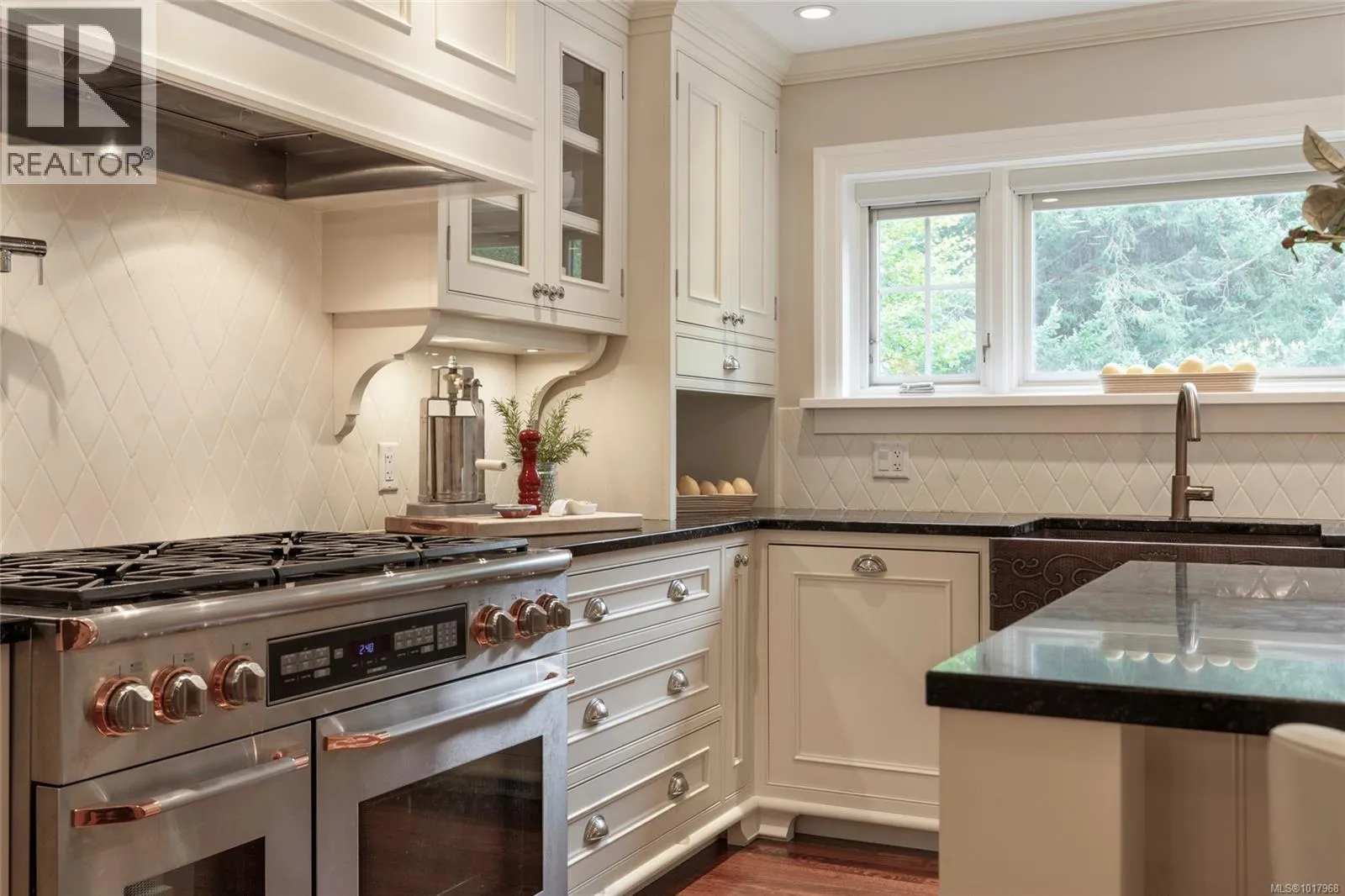 Prepare to be impressed by this exquisitely renovated 5-bedroom, 4-bath executive residence on a sprawling 17,460-square-foot lot just steps from Mt. Doug Park. The chefâs kitchen is a true showpiece, featuring high-end Dacor appliances, granite countertops, fine cabinetry, and an oversized island perfect for family and friends to gather around. French doors open to a vast, sun-drenched deck overlooking a private backyard surrounded by mature trees and lush gardens including a fantastic outdoor kitchen. The expansive primary suite captures stunning views of Mt. Doug and offers a spa-inspired ensuite with dual sinks, a freestanding tub, and a walk-in shower. Thoughtful sanctuaries throughout the home and yard create a sense of warmth and character, while the flexible lower level offers ample space for recreation, work, or guests. Walk to nearby beaches and enjoy the serenity of this exceptional property â a perfect blend of sophistication, comfort, and natural beauty. (id:27476)