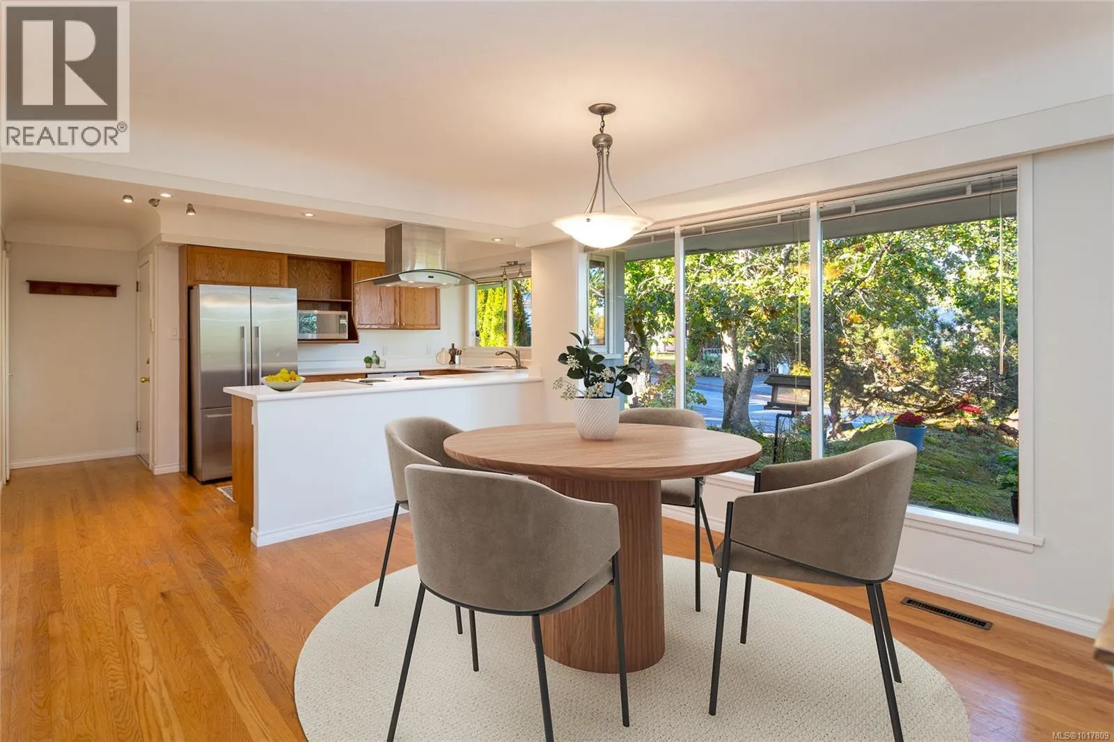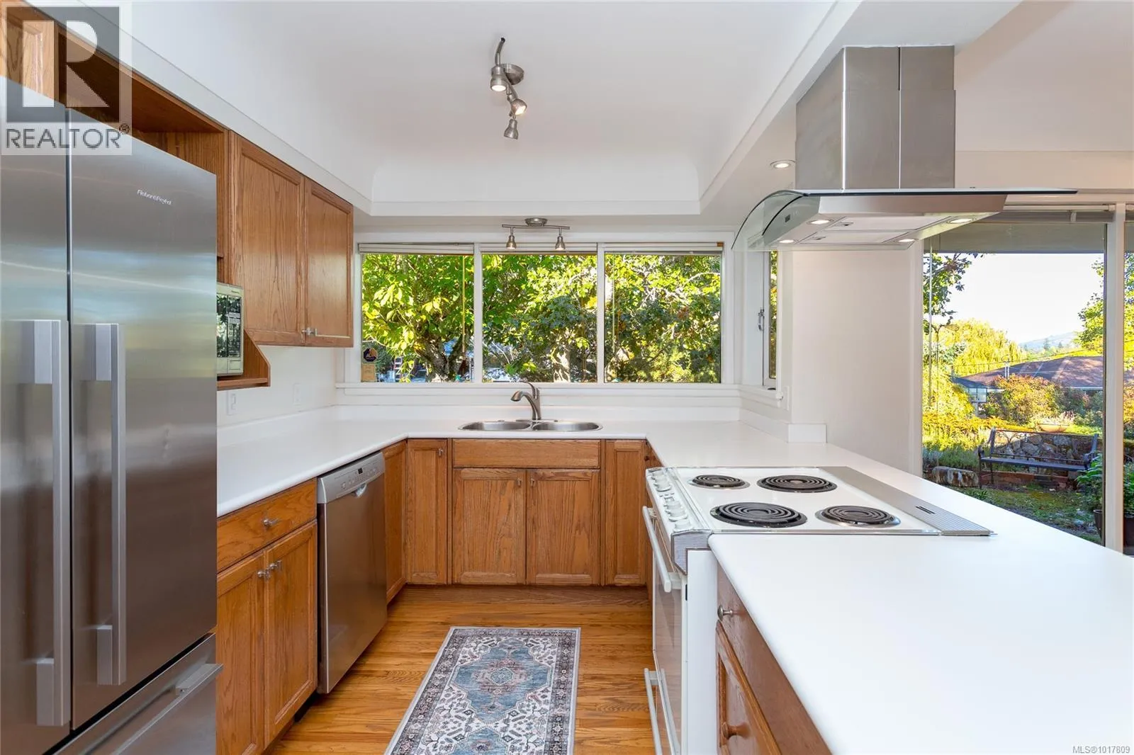 Spend the holidays in your charming & pretty new home in Marigold! Bright & inviting, this beautifully maintained & immaculate 3 bed, 2 bath home offers easy one-level living with gorgeous oak floors & an open-concept layout connecting the dining & kitchen areas. Gorgeous picture windows fill the home with natural light, while versatile rooms adapt to your familyâs changing needs. Sited high on its 6,165 square foot lot for privacy & sweeping views of Christmas Hill & downtown, this sweet property features charming curb appeal, easy-care landscaping & private outdoor spaces include newer back & side decks (2023). Recent updates incl interior paint (2025), HW tank (2024), repaved driveway (2023), new fridge & dishwasher (2022). The second bedroom with Murphy bed adds flexible space for guests or a home office. With ample parking for several vehicles & a wonderful, quiet community close to schools, parks & walking trails, this home combines comfort, function & charm in one ideal package! (id:27476)