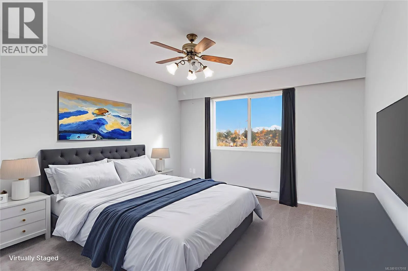 NEW PRICE $399,000. Virtual Open House, HD Photos, Video & Floorplans Online! Top-floor SE-facing corner unitâbright, freshly painted, with brand new carpet and upgraded windows. Offering 1,100+ sqft of generous living space, including a spacious living/dining area and an enclosed balcony with lovely views of Gorge Park and glimpses of the waterway. This 55+ building is incredibly well-managed, with a strong, friendly community. Enjoy monthly gatherings, a shared lounge, storage, laundry, and covered parking. Two cats or birds allowed (no dogs). Rentable for future plans or move-in ready today! Close to shopping, medical, parks, Uptown, Downtown, Gorge Golf Course, and Gorge Park/Waterway. Strata Plan states 1246 sqft. Floor Plan states: finished 1132sqft, deck/unfinished 100sqft total = 1232sqft. Quick possession possible! (id:27476)
