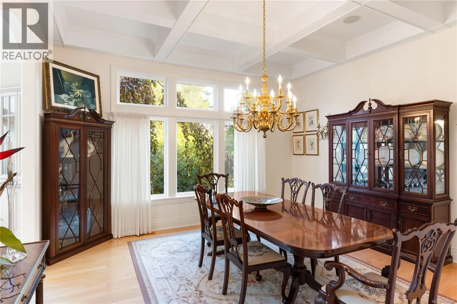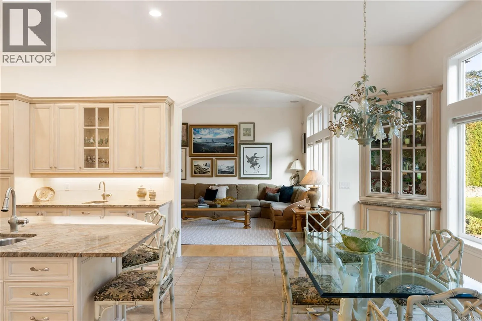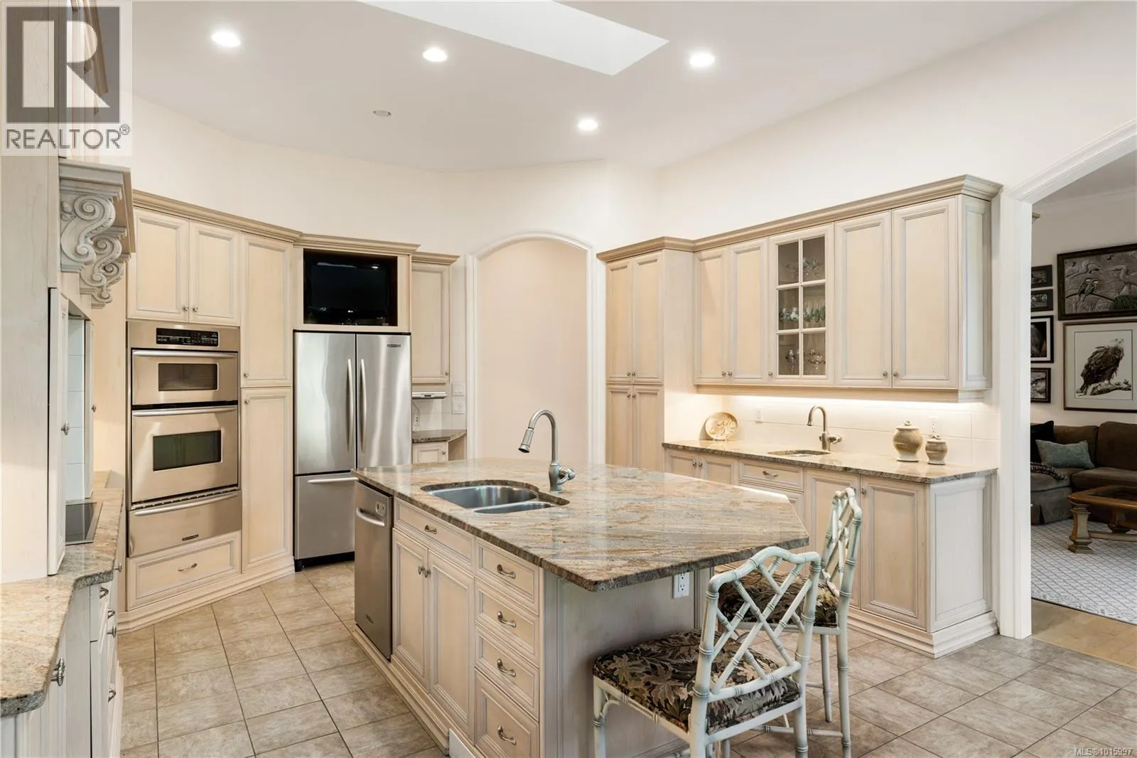 Elegant Custom-Built Rancher on Ten Mile Point! Tucked away on a gently sloping 0.44-acre lot surrounded by lush gardens, this exceptional custom-built home impresses at every turn. Inspired architectural details such as 12'4'' tray and coffered ceilings, graceful curves, and abundant skylights create a bright and welcoming sense of grandeur. With more than 4,200 sq. ft. on the main level, the home offers true single-level living, complemented by flexible bonus space downstairs â perfect for guests, extended family, or entertaining on a larger scale. At the heart of the home, the kitchen seamlessly connects to the family room, formal dining area, and a private patio ideal for morning coffee or evening gatherings. The spacious primary suite forms a peaceful retreat at the north end of the home, complete with a six-piece ensuite and walk-in closet, while two additional bedrooms on the opposite wing provide comfort and privacy for family or guests. Set on a quiet no-through street, this serene property is just steps from Ten Mile Pointâs pristine shoreline, parks, and walking trails â and only minutes from Cadboro Bay Village, UVIC, and the Royal Victoria Yacht Club. A rare combination of elegance, comfort, and location. (id:27476)