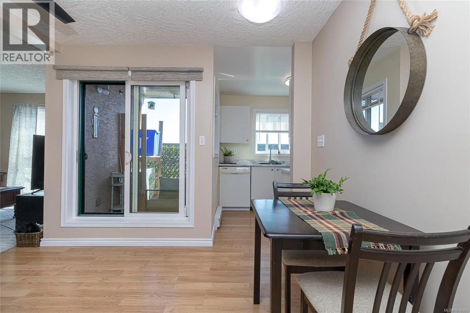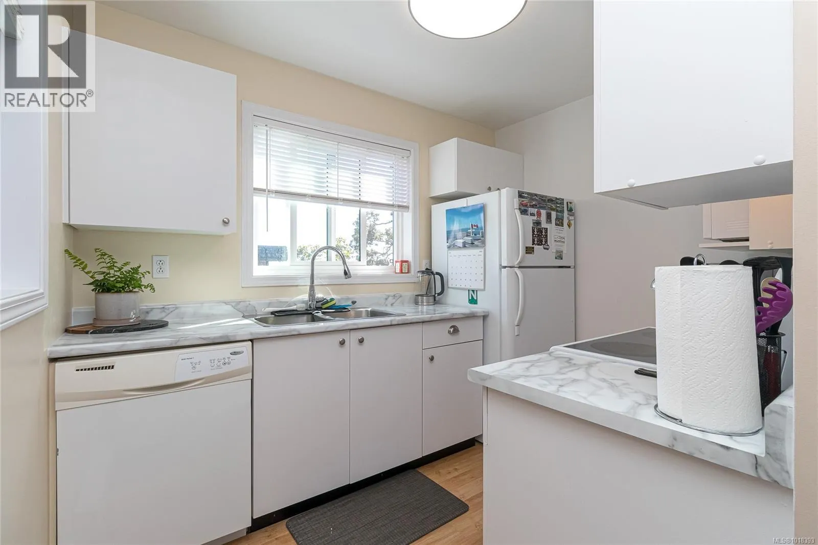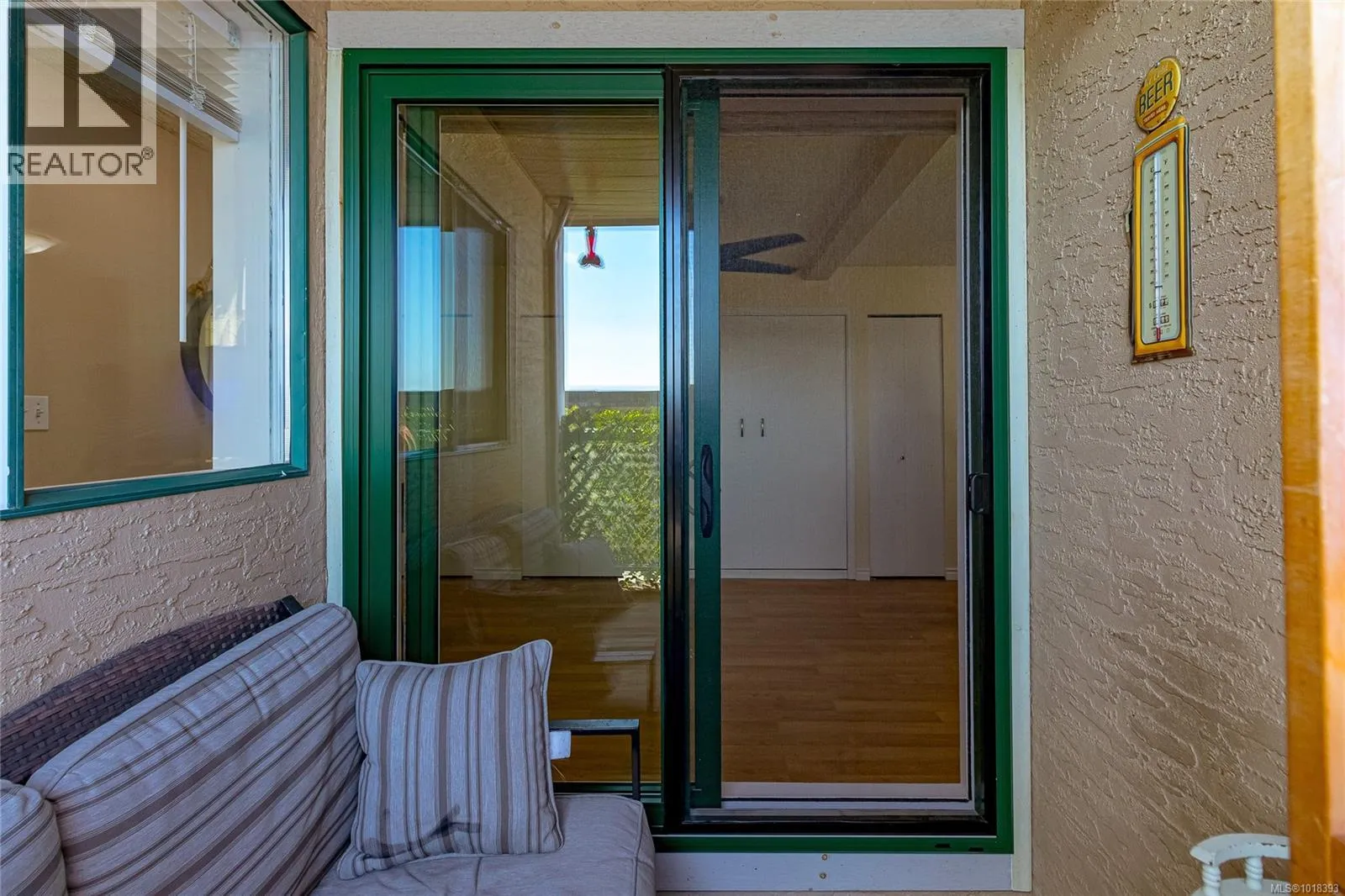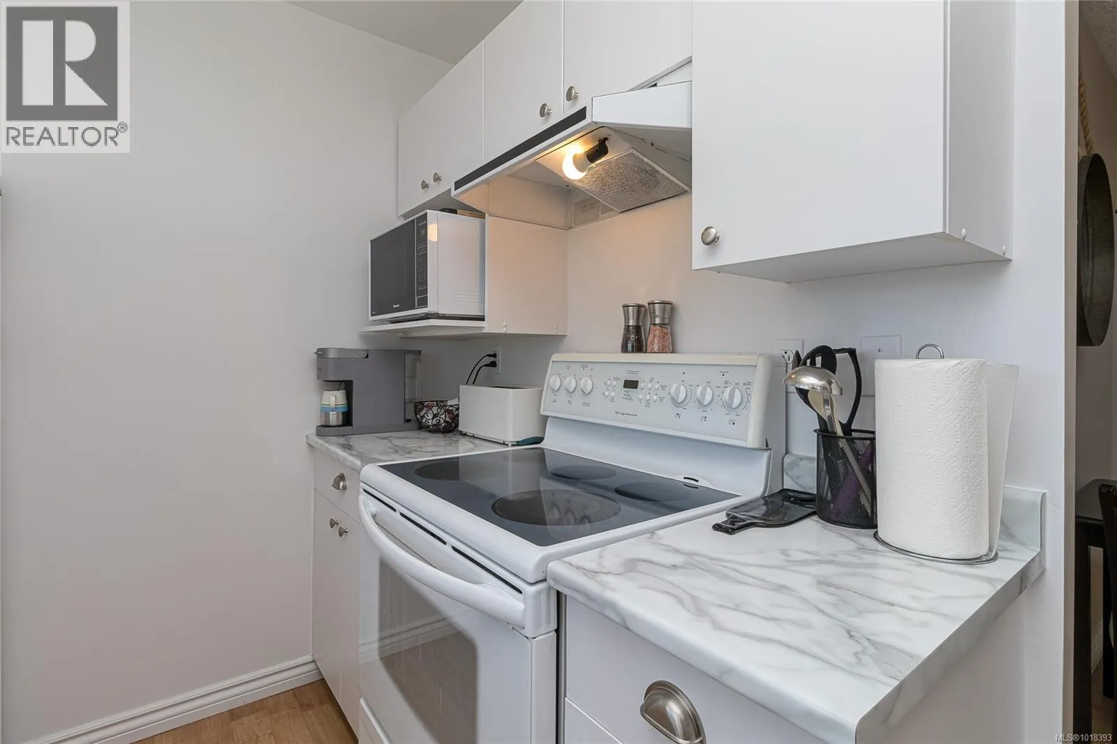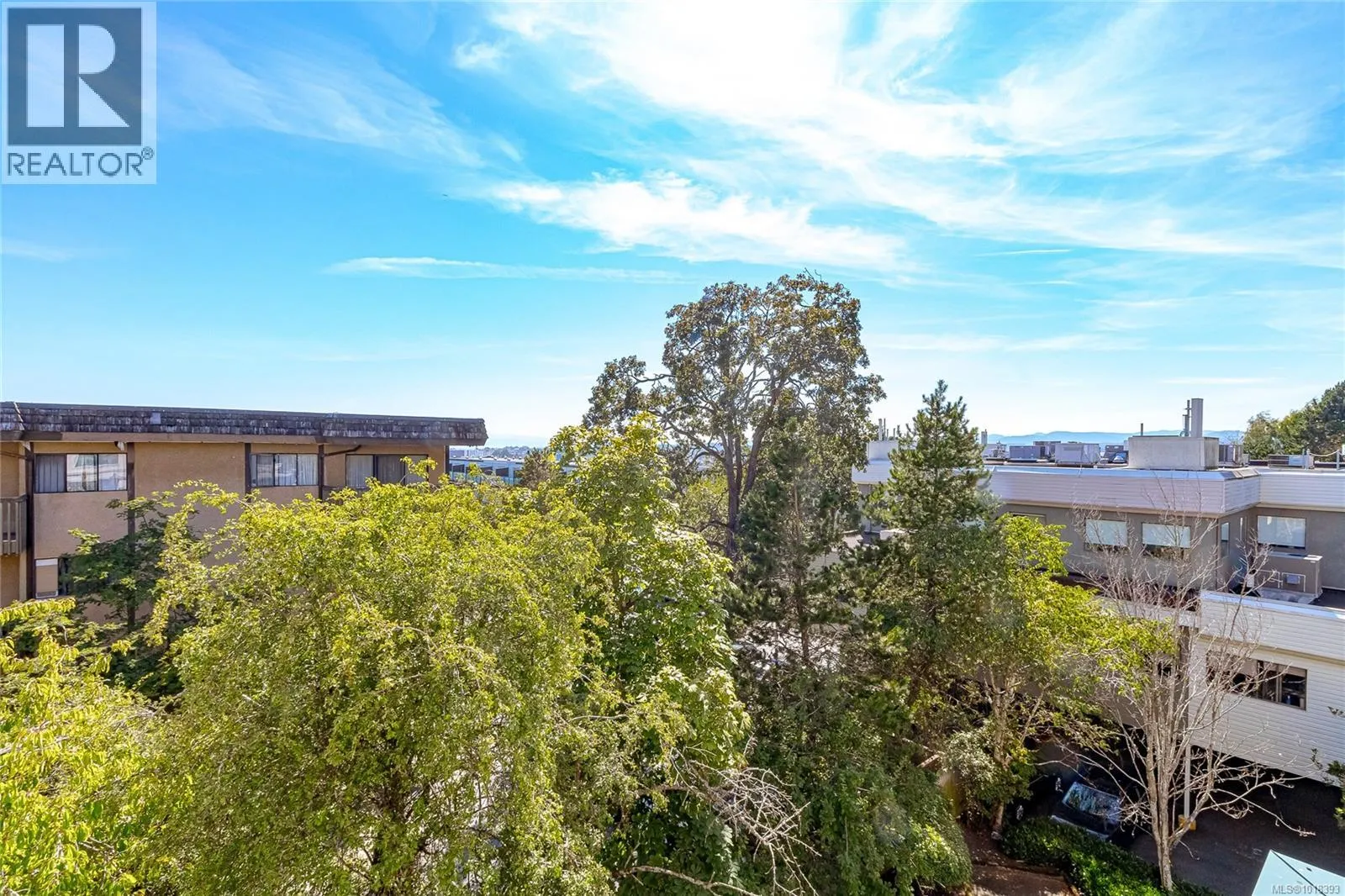 Priced to sell!! This 2 bedroom 2 bath condo with low strata fees has been impeccably maintained including fresh new paint, newer appliances, new kitchen counters and newer lighting including a ceiling fan. Custom window coverings throughout as well as all new windows and slider. The owners installed a custom Murphy bed hidden into the wall, great for those extra guests. This beautiful corner suite is in a prime location at the back of the building on an upper floor with tree top views. Just minutes to the heart of Uptown and Mayfair Mall. Easy access to Transit and one of the loveliest family parks including tennis and play area down the hill. This won't last long. Book your showing today! (id:27476)