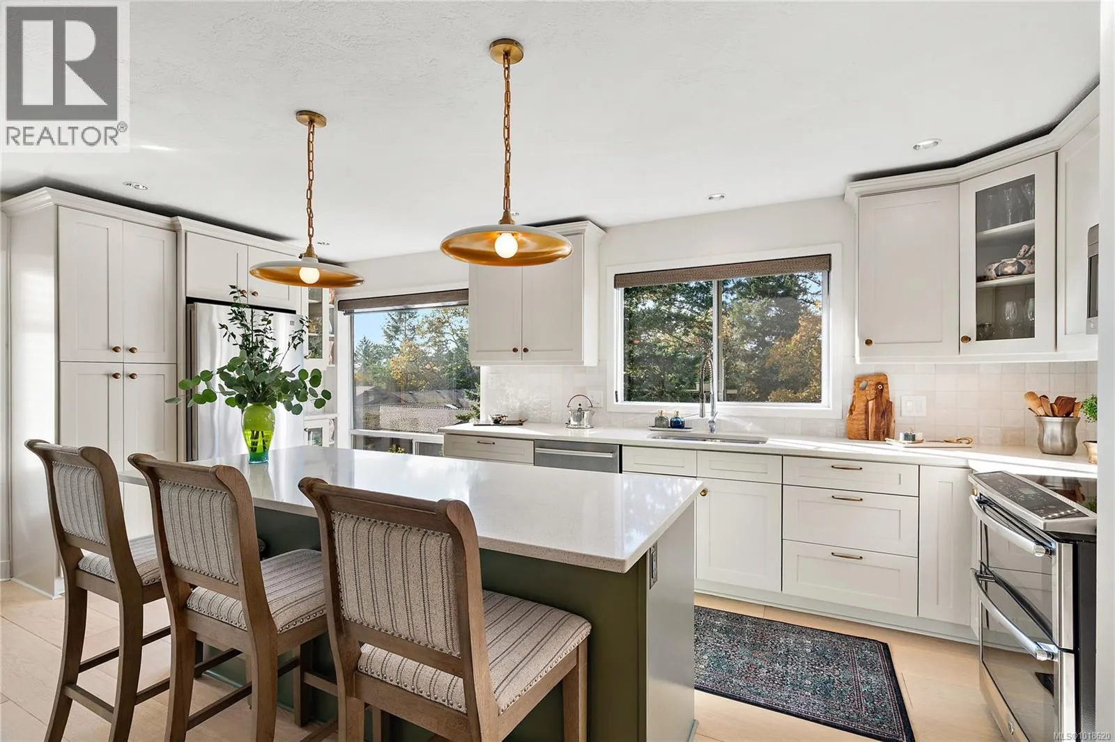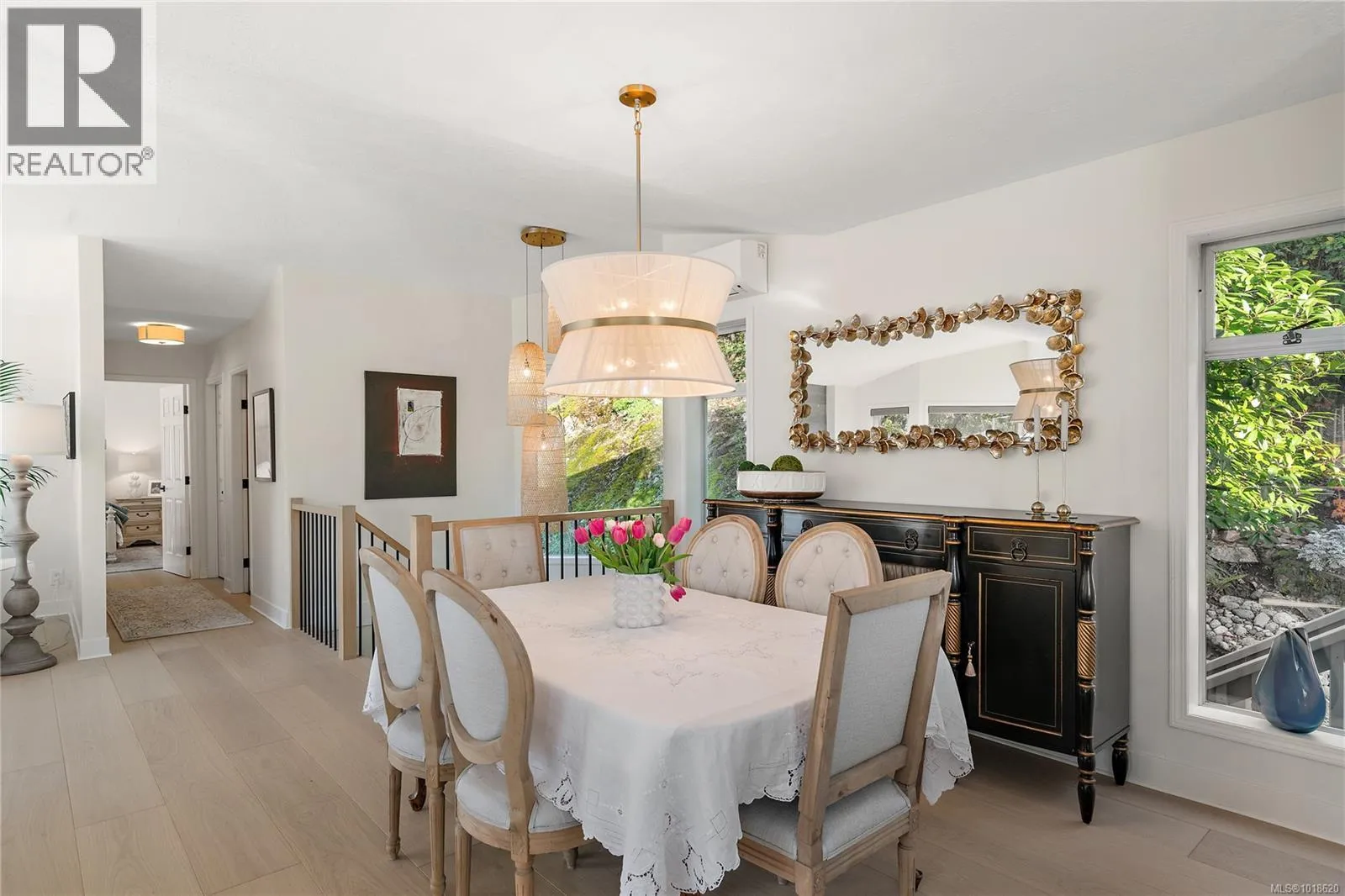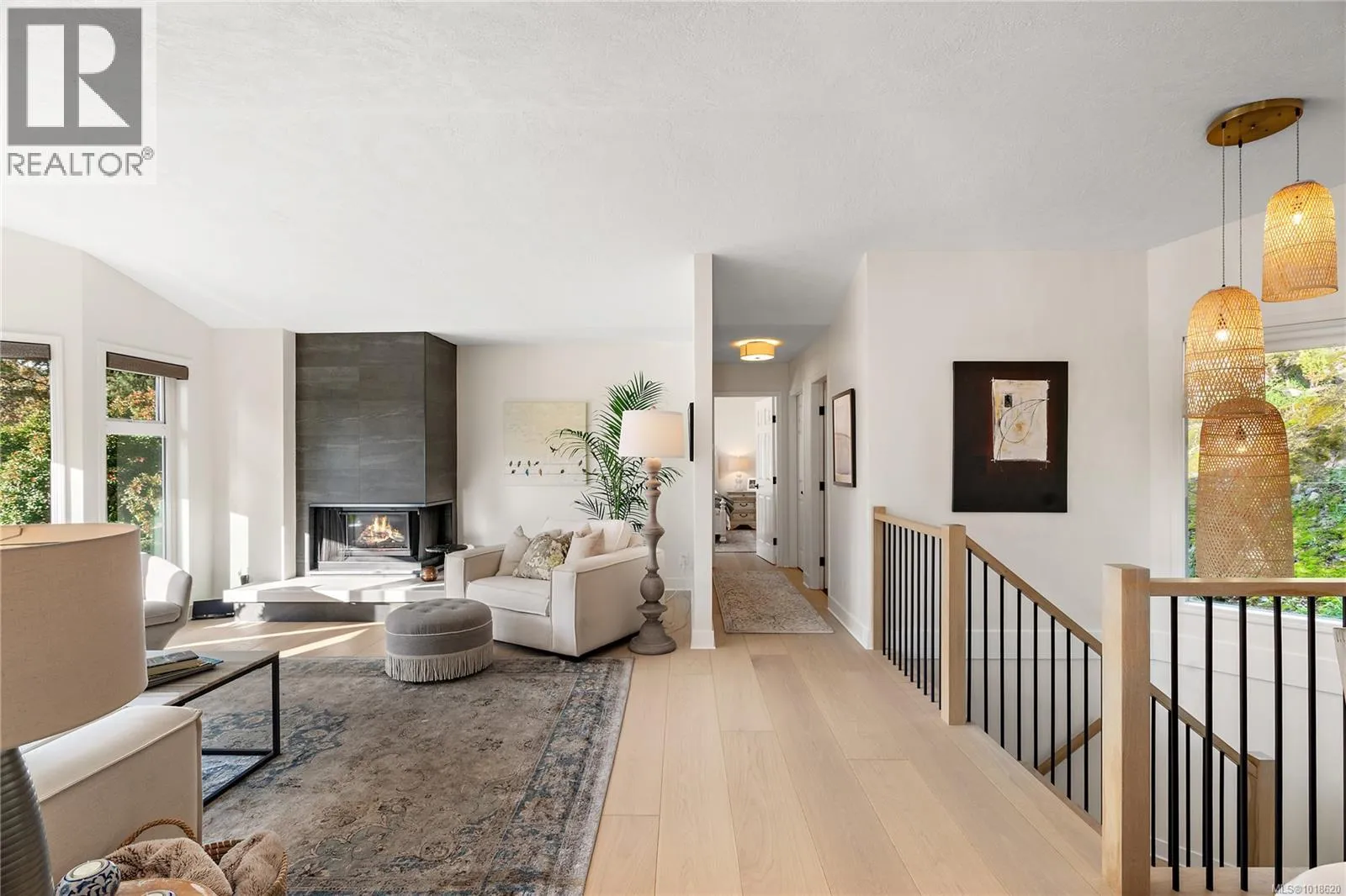 Discover the perfect blend of privacy, style, and low-maintenance living in this stand-alone Broadmead townhouseâoffering the feel of a single-family home without the upkeep. Wide-plank white oak floors and expansive west-facing windows fill the open-plan interior with warm natural light. The custom kitchen features quartz countertops and flows into a contemporary living space with a sleek gas fireplace and heat pump for efficient year-round comfort. Spa-inspired bathrooms include heated floors, and with 2 bedrooms plus a spacious office/den, and a double car garage, this home adapts effortlessly to your lifestyle. Outside, a Japanese-inspired zen garden creates a serene oasis on the hillside, complemented by a deck and patio ideal for relaxing or entertaining. Located in the highly desirable Quail Run communityâknown for its generous lots and beautiful landscapingâand just steps to the Lochside Trail, Broadmead Village, Rithetâs Bog, and endless nature pathways. (id:27476)