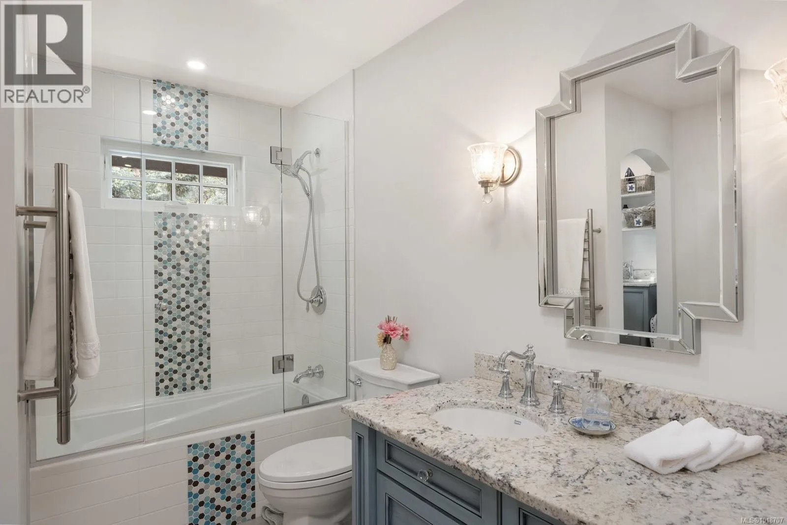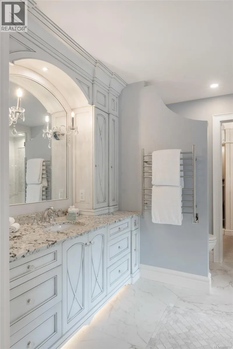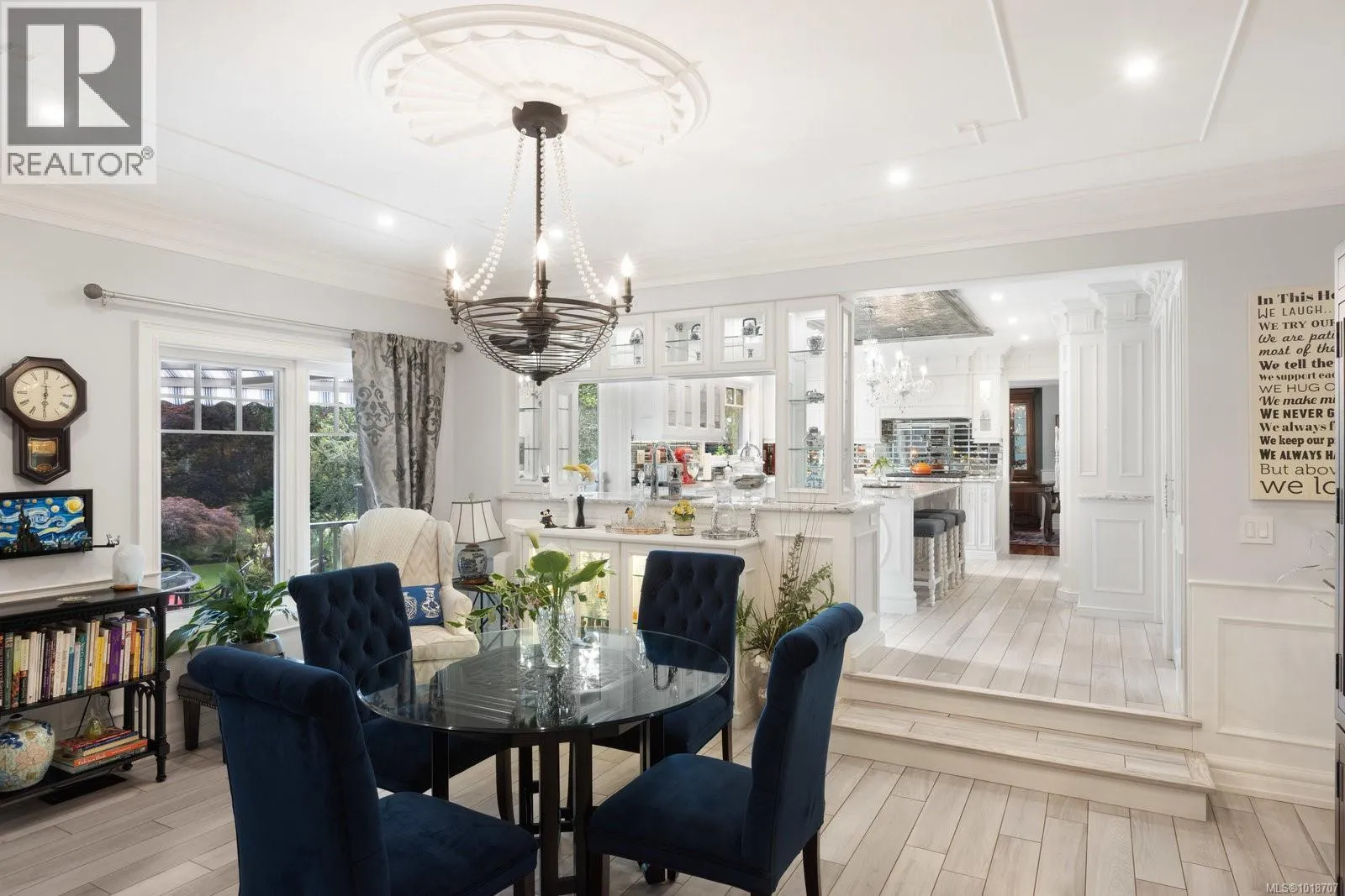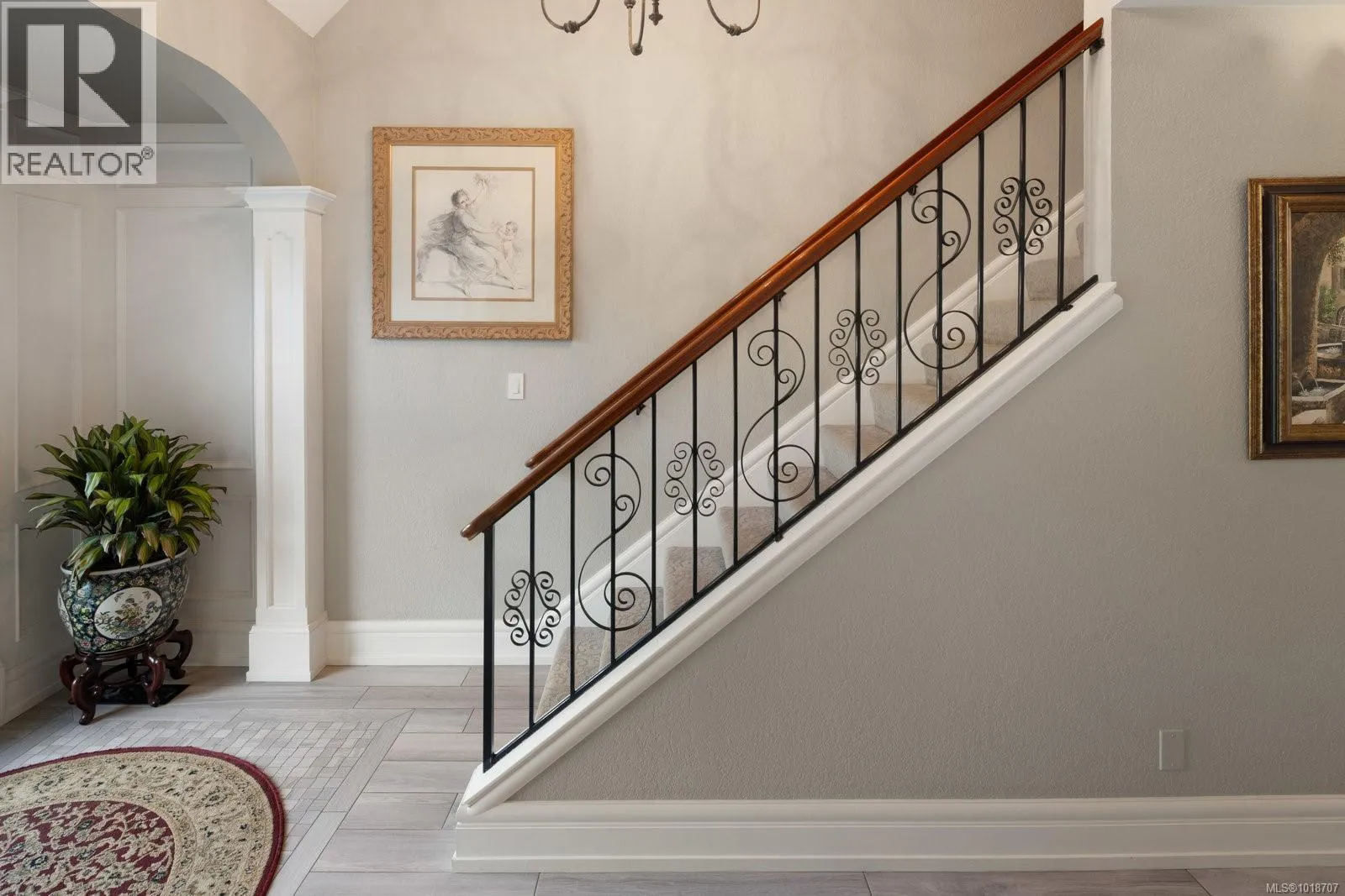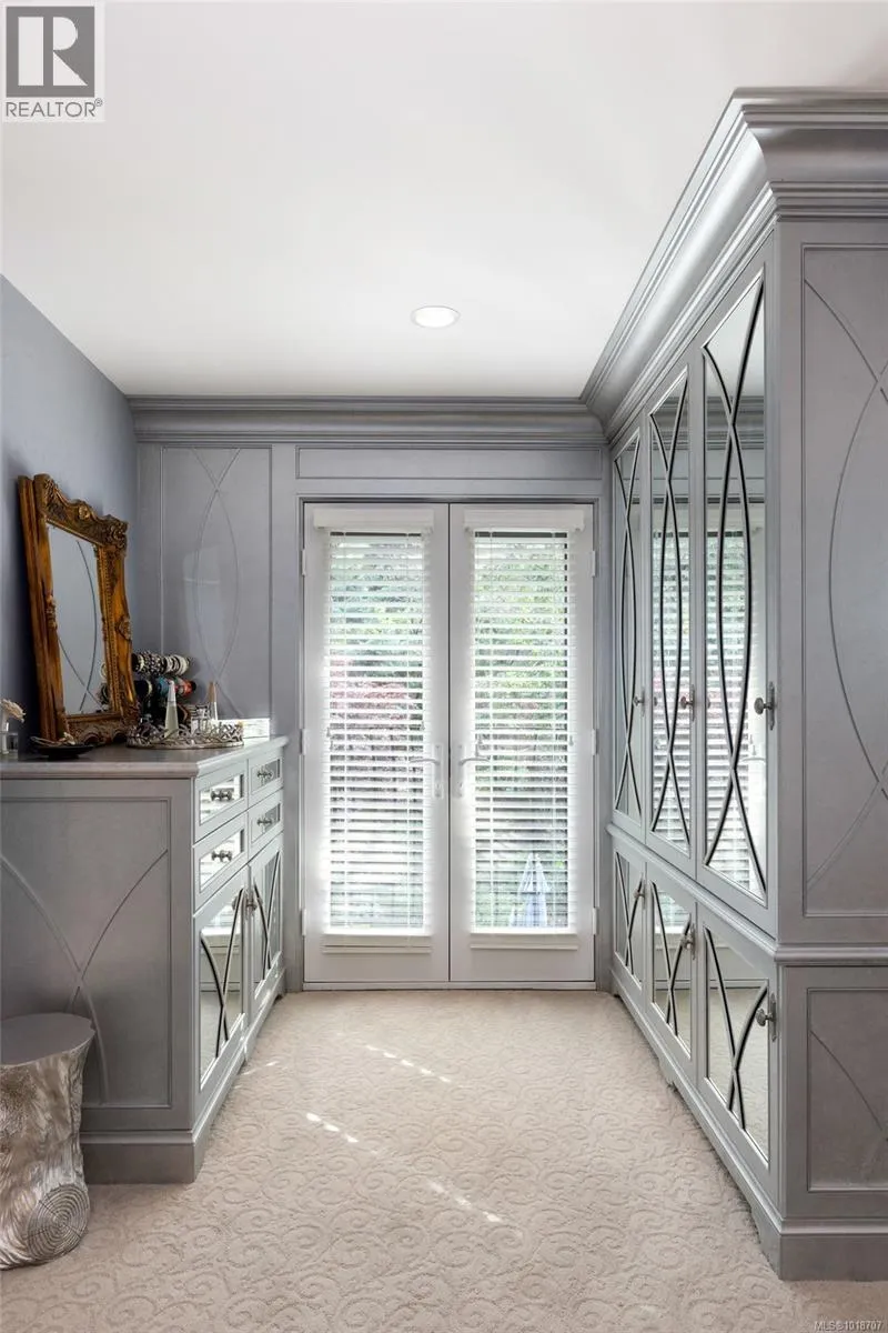 A stately stone exterior French Country Manor in prestigious Wedgewood Point on Ten Mile Point. This luxurious home features a unique blend of timeless design, functional craftsmanship and the comforts of modern living. Backing onto Benson Park, come home to peace, privacy and nature all around on this 1/3 acre of lush landscaped grounds complete with stone pathways, raised and irrigated vegetable and fruit gardens, sun deck, covered patio and hot tub, bathed in South-West light. Inside, architectural interest abounds with elevated bespoke cabinetry throughout; find coffered ceilings, wainscotting and many distinctive functional features. The kitchen is a statement of glamour rooted in tradition; bespoke cabinetry, Wolf & Sub-Zero, built-in coffee station & stone counters. Vaulted Great Room impresses with dramatic floor to ceiling library wall with rolling ladder. Upstairs, a primary suite offers a Juliet balcony, dual walk-in closets, spa-like ensuite with soaker tub & steam shower. Two additional bedrooms, main bath and laundry room complete the upstairs. Double garage, detached single garage with 400+ sq ft loft studio with bathroom offer flexible living or workspace options. (id:27476)