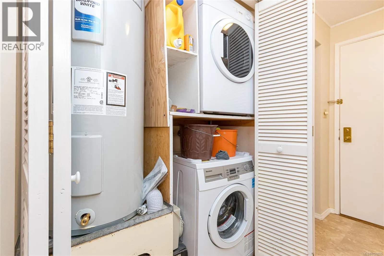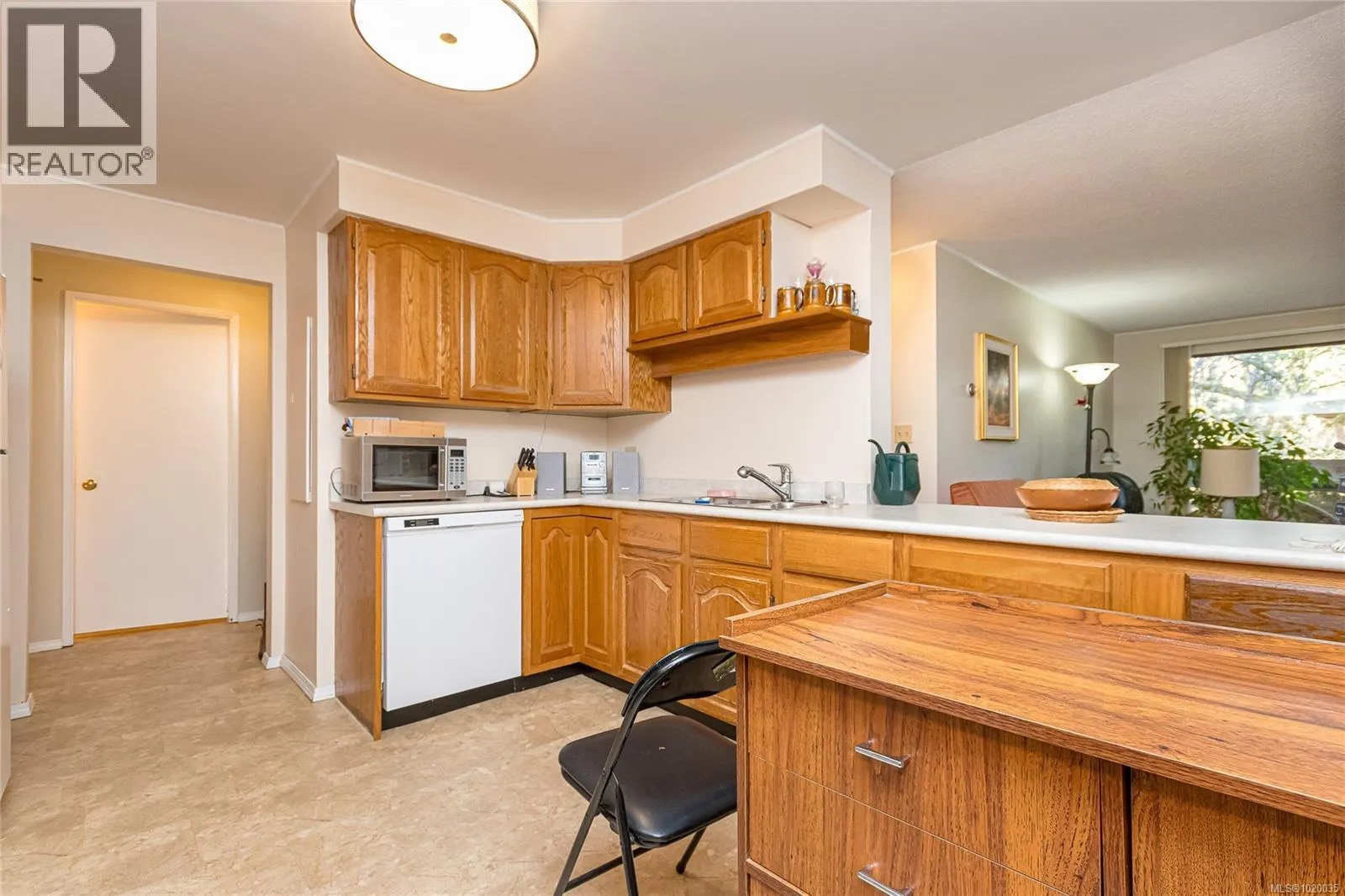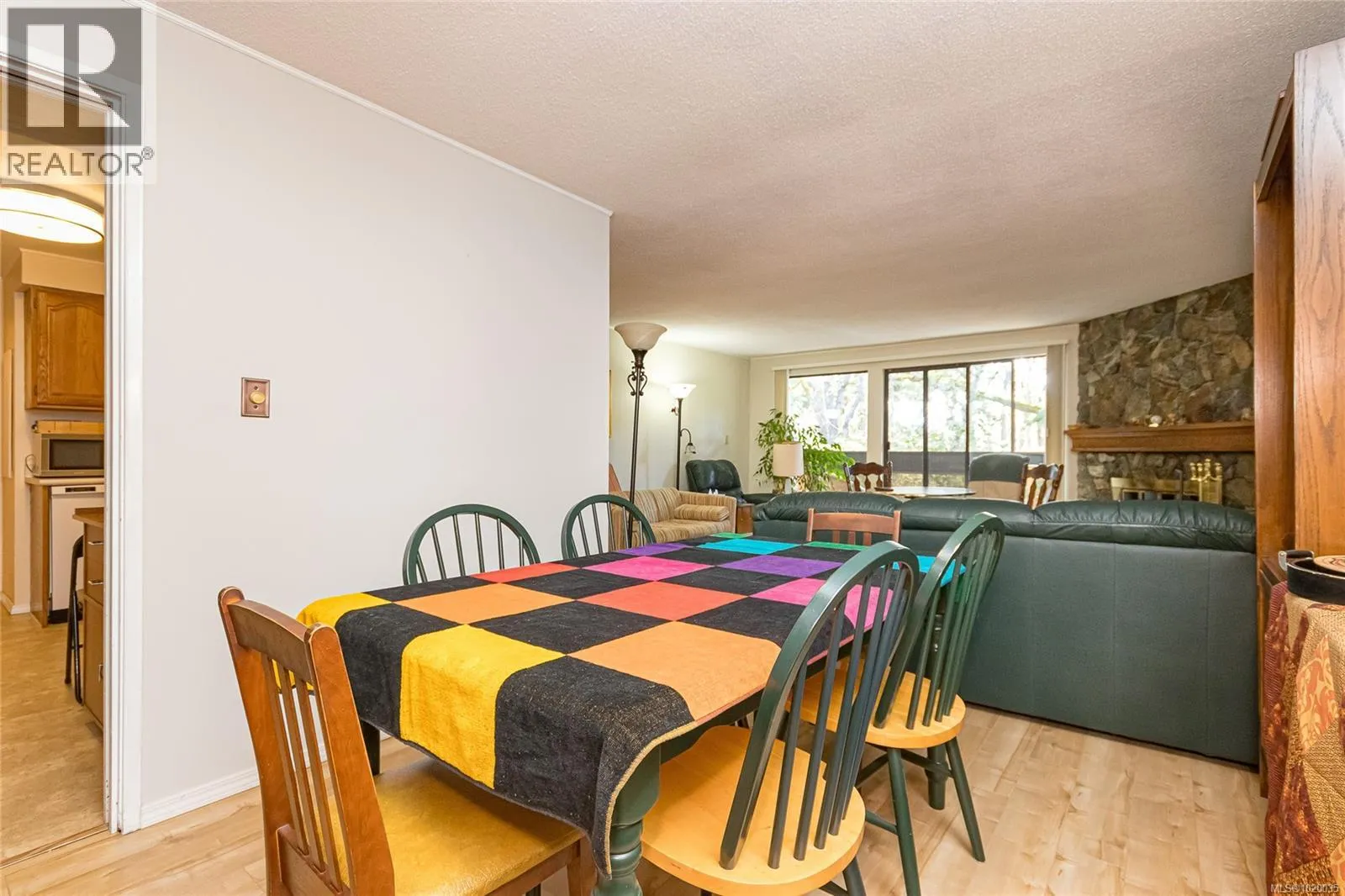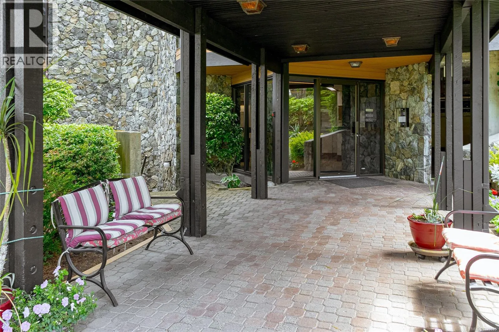 DISCOVER THE CHARM OF GLENORA WOODS! Nestled in a serene, park-like setting backing onto the lush greenery of Playfair Park, this spacious 2-Bedroom, 2-Bathroom suite offers tranquility just moments from city conveniences. Tucked away from the hustle and bustle, yet only a short stroll to transit, shopping, downtown, and the Quadra Centre. This bright and open floor plan features a large kitchen with separate dining area - perfect for hosting, cozy living room with wood-burning fireplace, generously sized bedrooms and bathrooms, in-suite laundry, and a private east-facing balcony that is drenched with morning sunshine! Offering separate storage, secure underground parking, with plenty of additional guest spots available. Previously a 19+ community, Glenora Woods offers a more mature environment for its residents. No pets, BBQs, or smoking. A rare find in an unbeatable locationâdonât miss your chance to view! (id:27476)