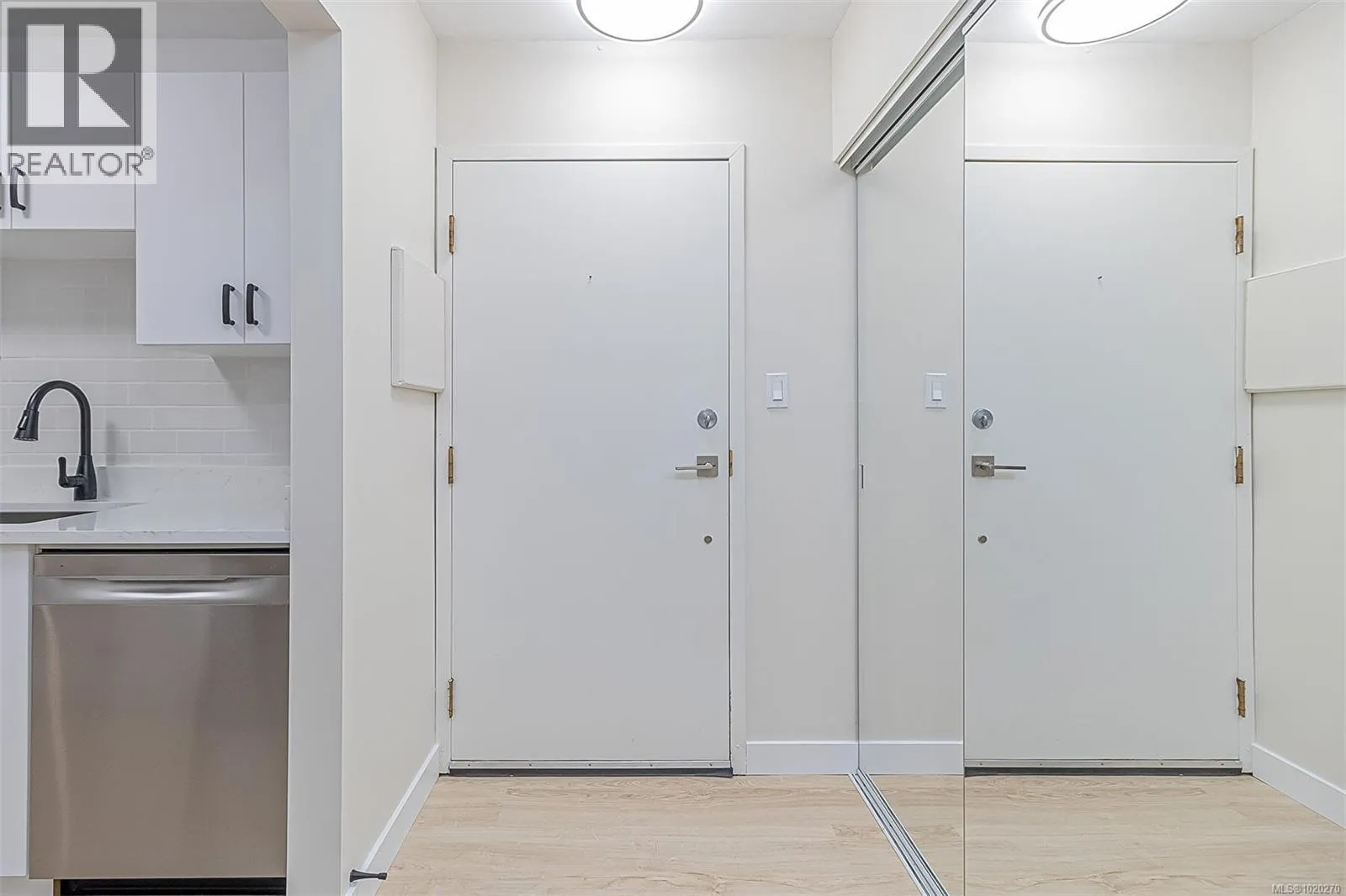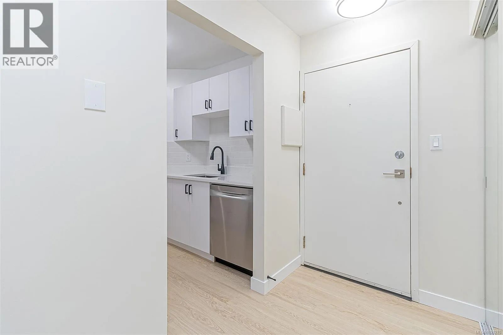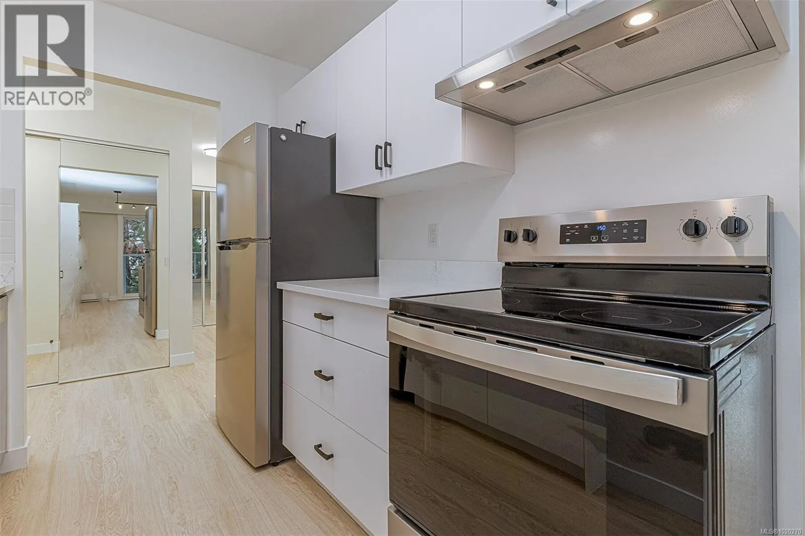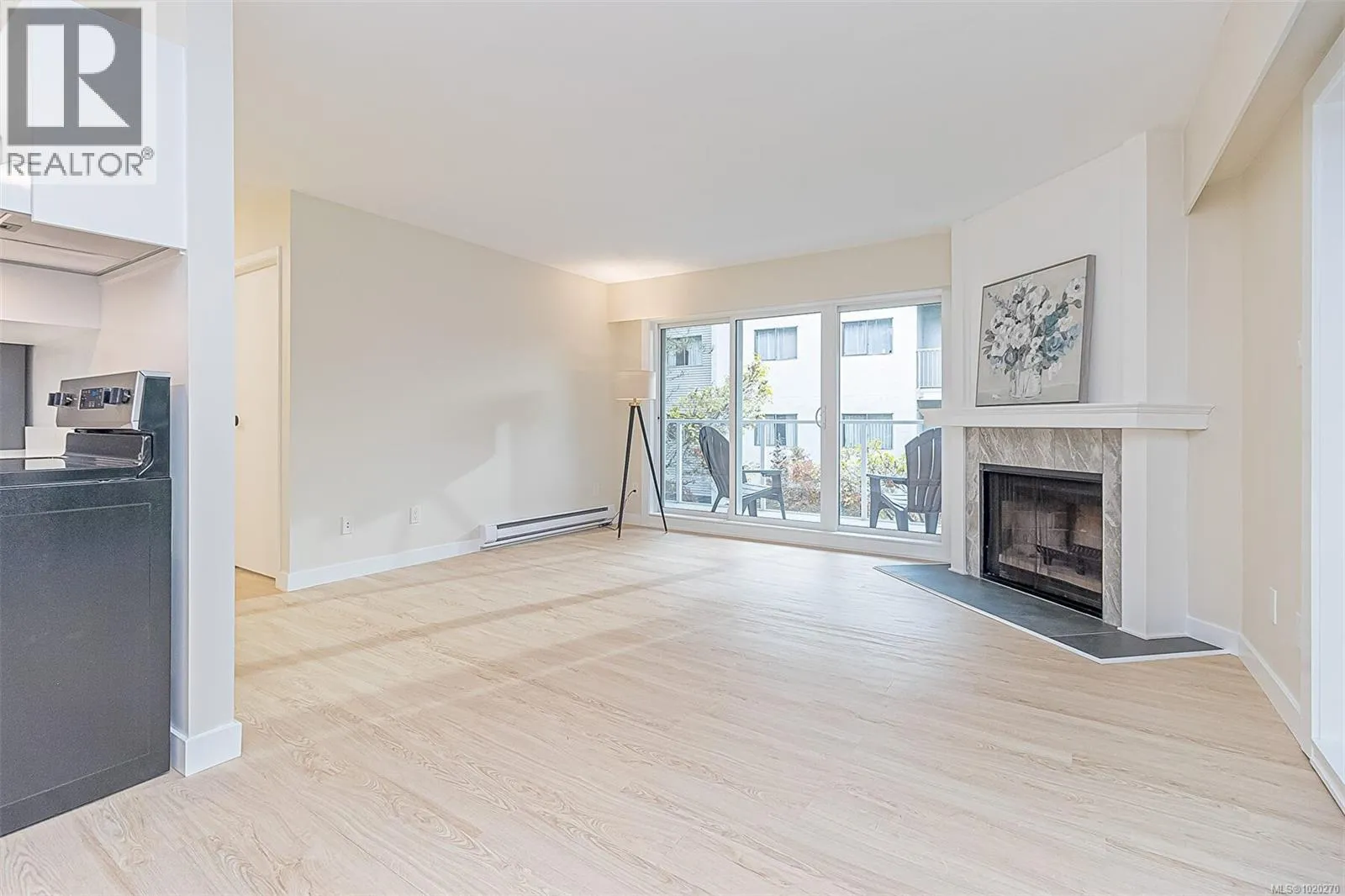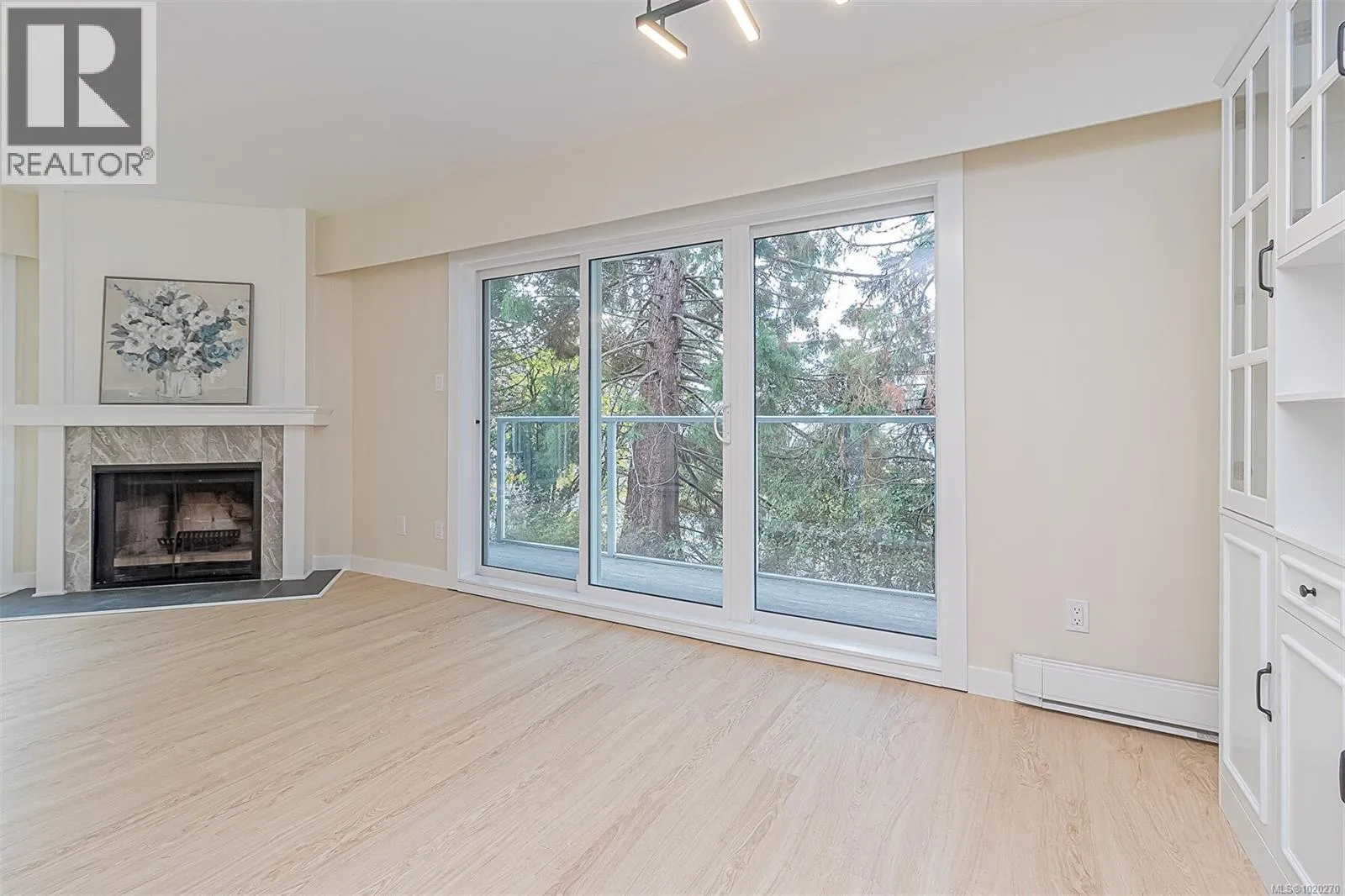 Beautifully Renovated and Bright 2 bedroom corner condo with an amazing 4 new patio doors to 2 amazing balconies. Enjoy your New Kitchen cabinets with subway tile backsplash and new stainless steel appliances including dishwasher and quartz countertops. Spacious Living and Dining Rooms with a wood fireplace with a beautiful mantel adding a nice feature to the room. New waterproof vinyl plank flooring in living and dining rooms and both bedrooms is a real plus. Just painted throughout in light and bright designer colours. Large bathroom with new vanity and bath/tub surround make this nice and bright. Insuite laundry off master bedroom. This professionally managed builidng has just undergone a major exterior and balcony renovation. Hot water is included in your strata fee. Secure underground parking. Cats are Welcome but Sorry no Dogs.Great Location close to Rutledge Park and Mayfair Mall. Excellent Bus Service. (id:27476)