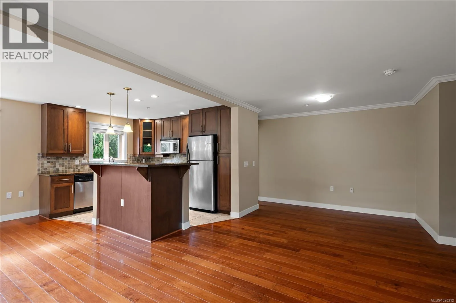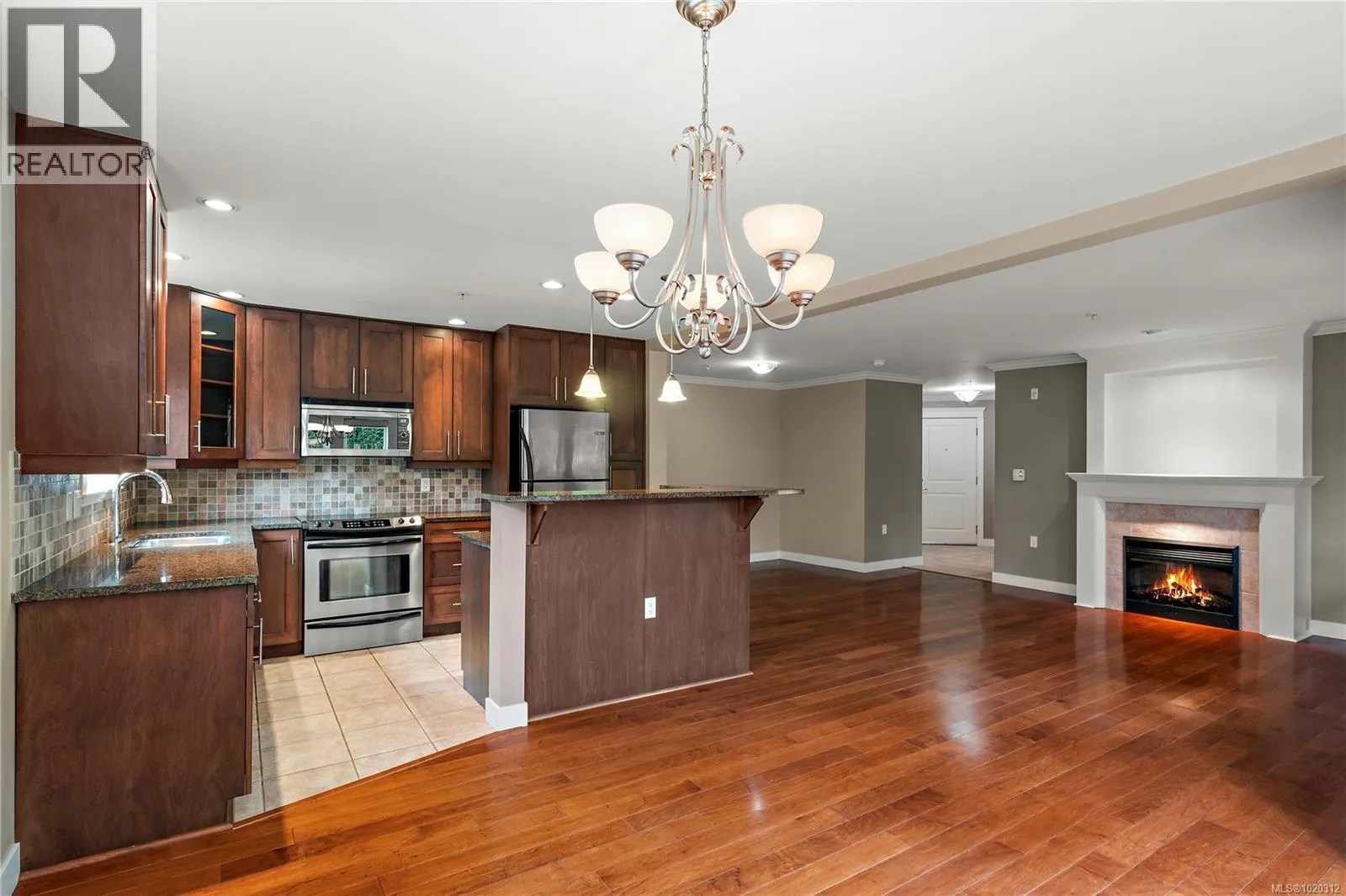 Welcome to Heatherdale Estates â one of Royal Oakâs most desirable communities. This ground level 2-bedroom, 2-bathroom corner unit offers 1,100+ sq.ft. of thoughtfully designed open-concept living. Built by Mike Geric, this quality development features hardwood floors, gas fireplace and a great floorplan. Large windows flood the space with natural light. The chef-inspired kitchen features a generous island, granite countertops, and stainless steel appliances â ideal for entertaining or everyday living. Step onto your private sundeck to enjoy morning coffee or unwind in the evening. Additional highlights include in-suite laundry, secure underground parking, and bike storage. This well-maintained, pet-friendly building allows rentals, offering flexibility for both homeowners and investors. Located on a convenient transit route, youâre just minutes from Broadmead Village, Royal Oak Shopping Centre, Commonwealth Place, and the scenic trails of Elk/Beaver Lake. (id:27476)