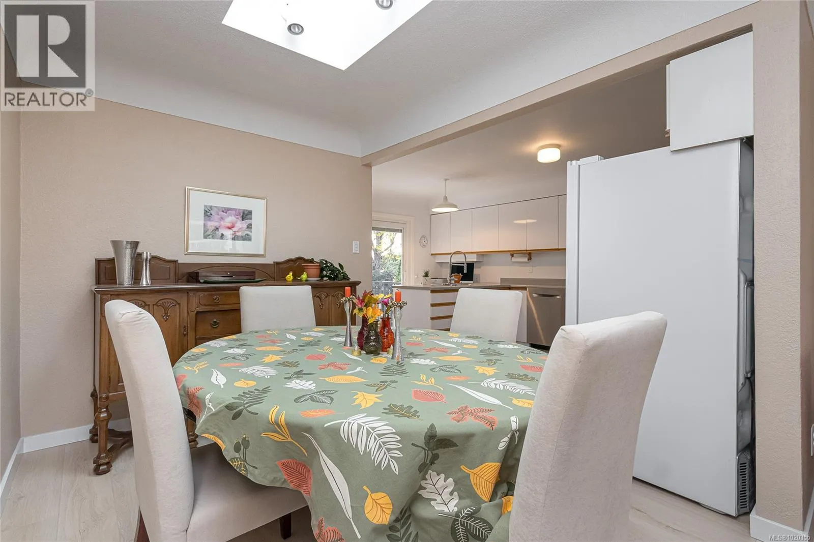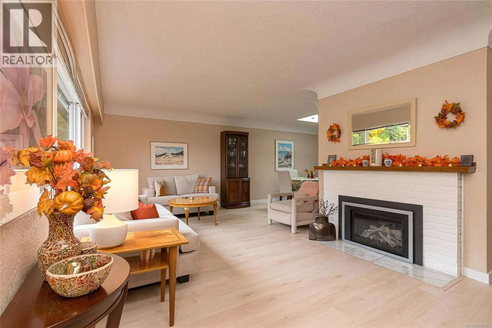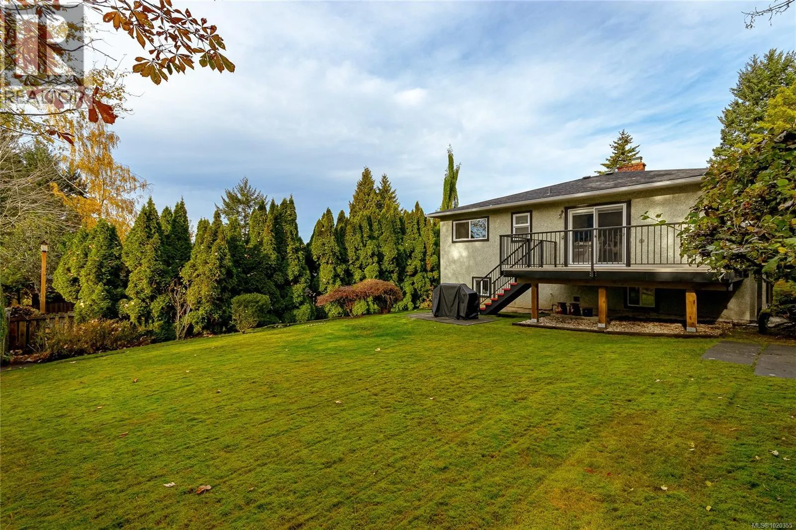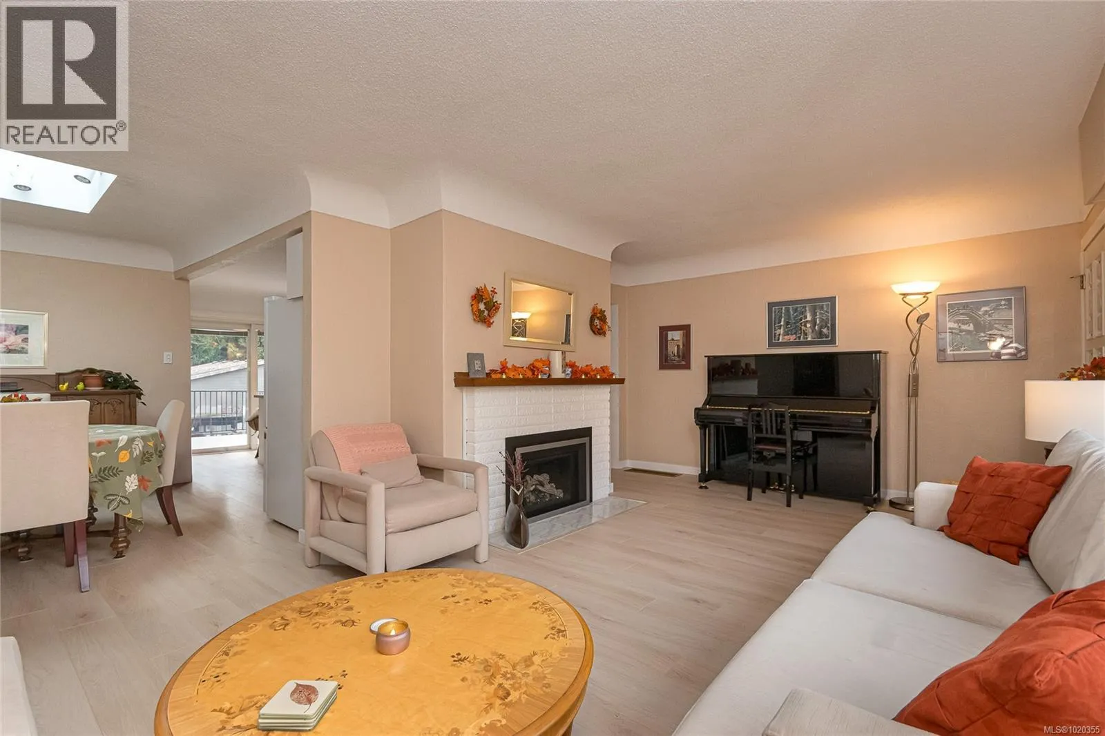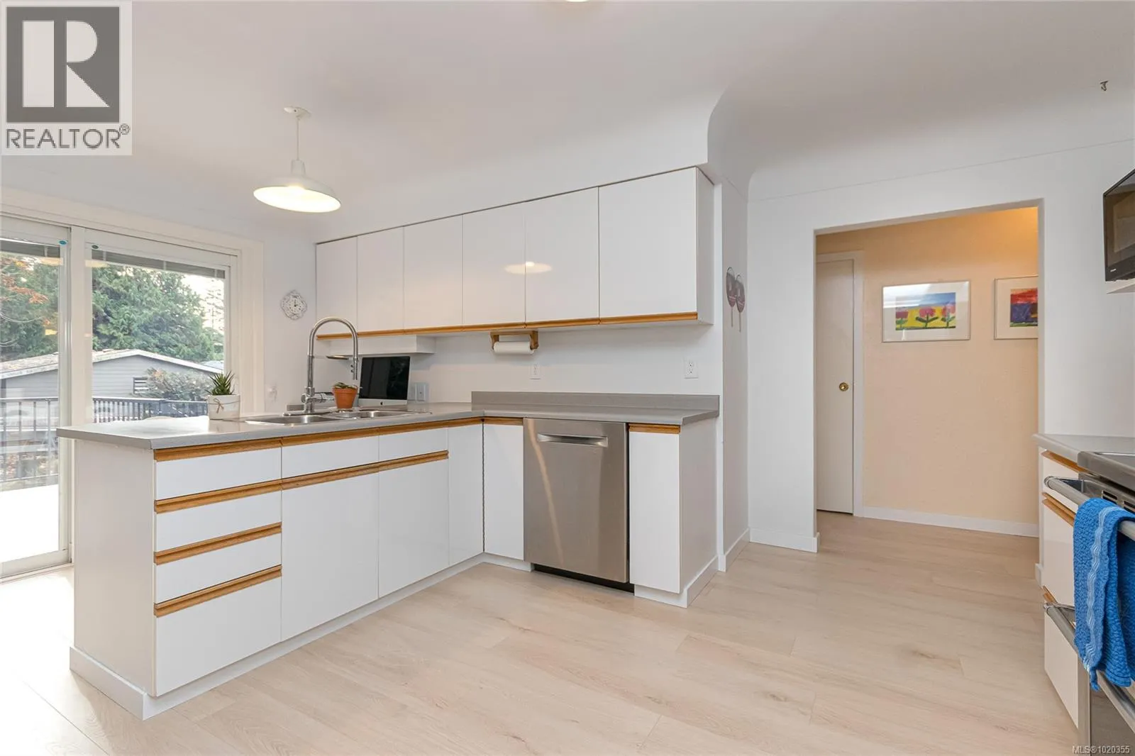 Nestled among the gentle, rolling hills of the Blenkinsop?Valley on a tranquil, no-through street, this home graces a generous 9,000?sq?ft on a sunny level lot. Step inside to discover the open and inviting living room. Featuring luxury plank floors throughout the main level, this space offers both style and comfort. A standout gas fireplace sets the stage for cozy winter evenings, while elegant cove ceilings flow through the primary rooms and the adjoining dining area, which is illuminated by a skylightâperfect for gathering with friends and family. The European-style kitchen is designed for both daily ease and entertaining: crisp white cabinetry with warm oak accents, a sleek polar-white tri-door fridge/freezer, stainless appliances, a breakfast bar seating three, abundant counter space and a built-in computer station for the on-the-go lifestyle. From here, step directly onto the south-facing rear deck, where youâll overlook a private, sun-filled backyard. Outside, the expansive family-sized deck is ideal for relaxing or entertaining, and the yard is beautifully landscaped and designed for privacyâall complemented by ample parking space. On the main level youâll find three well-sized bedrooms, including a generous primary suite. A fully updated full bathroomâwith separate showerâis conveniently located off the hall by the 3 bedrooms. Downstairs, the lower level features a large family roomâideal for additional living spaceâa fourth bedroom, an updated bathroom with a deep soaker tub, and a laundry/utility room. Itâs the perfect zone for multi-purpose living. Efficient features include a gas furnace and vinyl-framed windows. Location is exceptional: right next to Mount?Doug?Park, with walking trails to the summit just steps from your front door! Situated in one of the cityâs most coveted school catchments (Lochside, Royal?Oak & Claremont) and at the heart of the Blenkinsop?Valley, youâre minutes from fresh farm stands, Root?Cellar, Galey?Farms & Mt.?Doug. Call now! (id:27476)