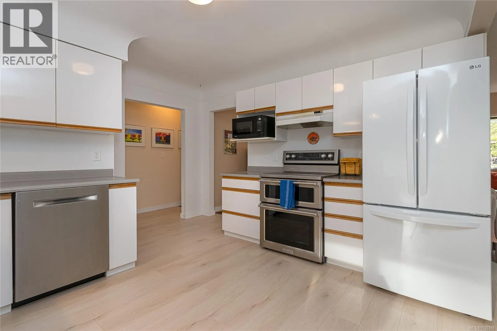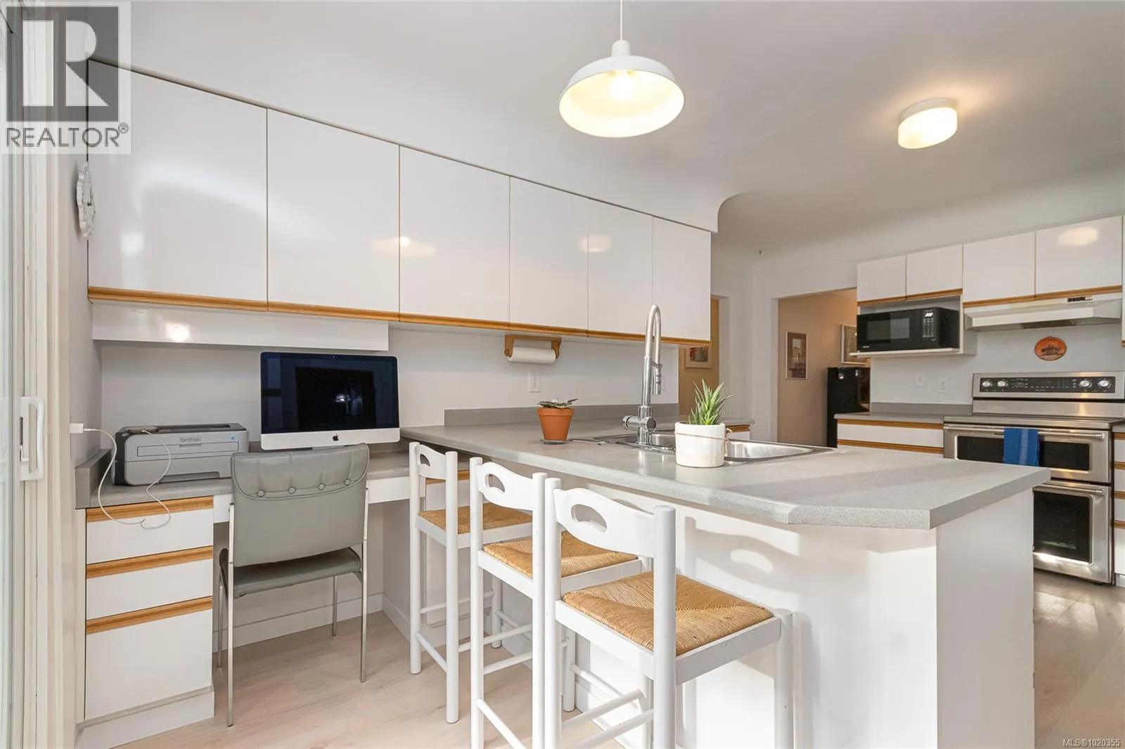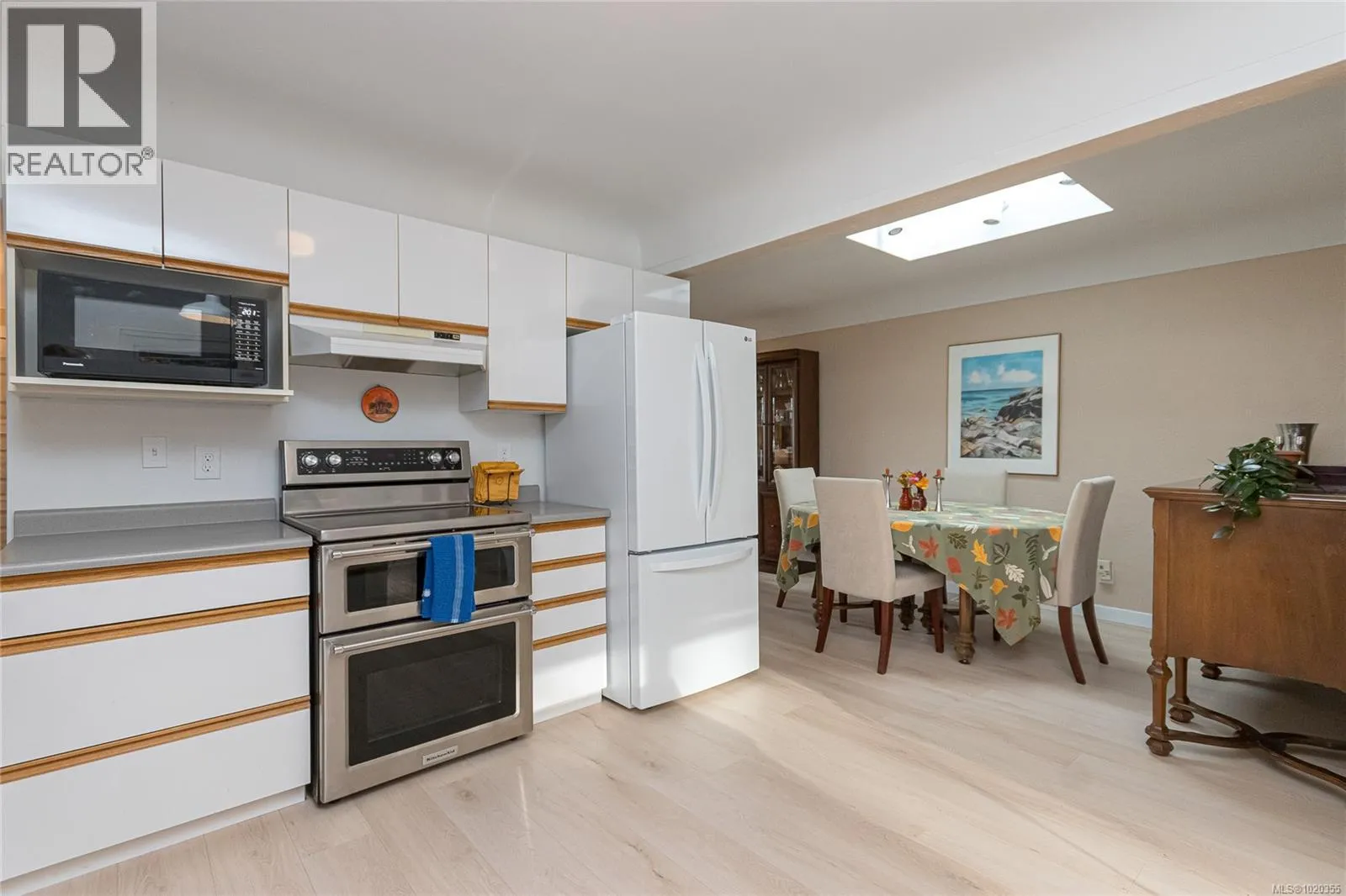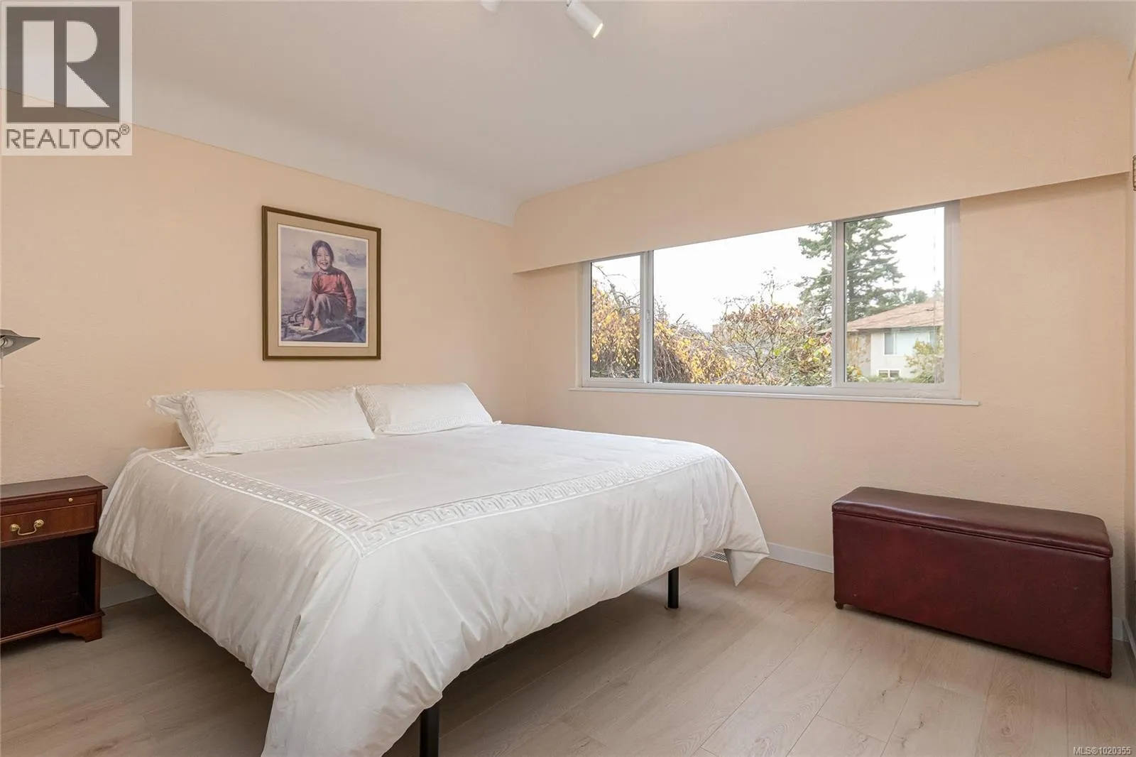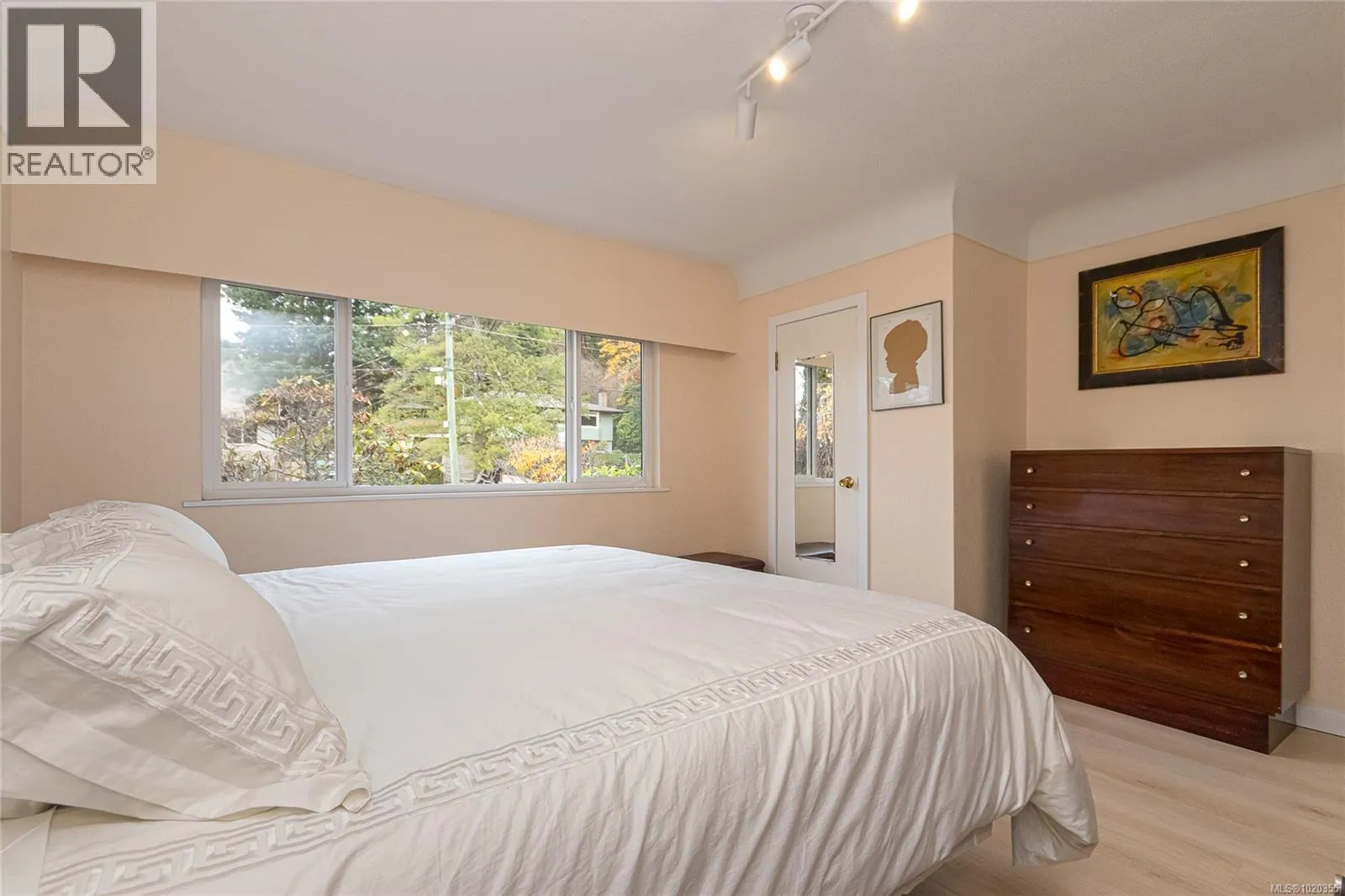 Nestled among the gentle, rolling hills of the Blenkinsop?Valley on a tranquil, no-through street, this home graces a generous 9,000?sq?ft on a sunny level lot. Step inside to discover the open and inviting living room. Featuring luxury plank floors throughout the main level, this space offers both style and comfort. A standout gas fireplace sets the stage for cozy winter evenings, while elegant cove ceilings flow through the primary rooms and the adjoining dining area, which is illuminated by a skylightâperfect for gathering with friends and family. The European-style kitchen is designed for both daily ease and entertaining: crisp white cabinetry with warm oak accents, a sleek polar-white tri-door fridge/freezer, stainless appliances, a breakfast bar seating three, abundant counter space and a built-in computer station for the on-the-go lifestyle. From here, step directly onto the south-facing rear deck, where youâll overlook a private, sun-filled backyard. Outside, the expansive family-sized deck is ideal for relaxing or entertaining, and the yard is beautifully landscaped and designed for privacyâall complemented by ample parking space. On the main level youâll find three well-sized bedrooms, including a generous primary suite. A fully updated full bathroomâwith separate showerâis conveniently located off the hall by the 3 bedrooms. Downstairs, the lower level features a large family roomâideal for additional living spaceâa fourth bedroom, an updated bathroom with a deep soaker tub, and a laundry/utility room. Itâs the perfect zone for multi-purpose living. Efficient features include a gas furnace and vinyl-framed windows. Location is exceptional: right next to Mount?Doug?Park, with walking trails to the summit just steps from your front door! Situated in one of the cityâs most coveted school catchments (Lochside, Royal?Oak & Claremont) and at the heart of the Blenkinsop?Valley, youâre minutes from fresh farm stands, Root?Cellar, Galey?Farms & Mt.?Doug. Call now! (id:27476)