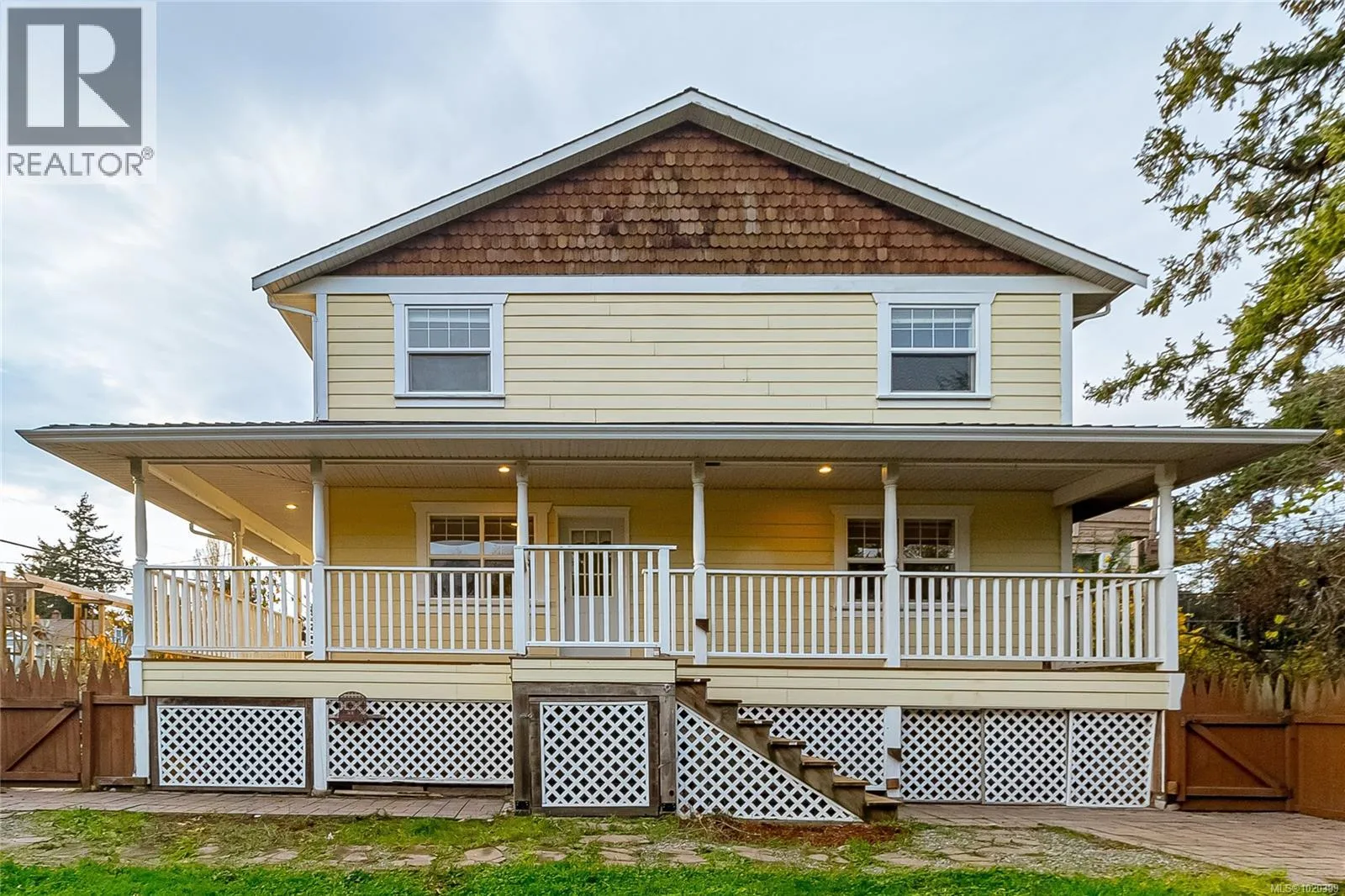 This beautiful and spacious 4BD/4BTH home combines classic country charm with modern comfort. The standout primary suite includes a cozy sitting area, heated-tile ensuite with claw-foot tub, separate shower, and a generous walk-in closet. Ideal for a large family, it offers three bedrooms upstairs plus a family room and den below. The warm living room features a natural gas stone fireplace, and the large kitchen with walk-in pantry is perfect for gatherings. A bonus studio suite above the double garage has its own entrance. Enjoy great separation of space with a lovely patio, greenhouse, hot tub, and a small yard on the opposite side. A wrap-around porch and two fully fenced yard areas add to the charm. Plenty of parking for a boat or RV, plus room for kids, pets, and gardening. All within walking distance to Swan Lake, Uptown, and the Galloping Goose Trail. (id:27476)