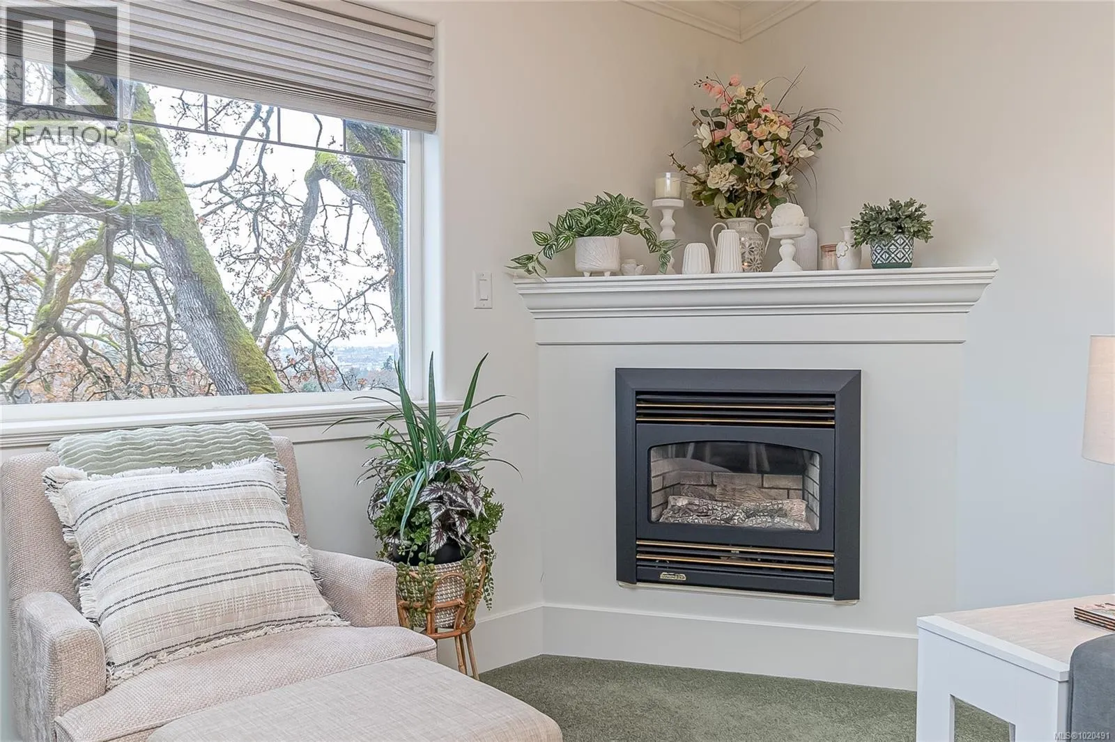 This classic British Arts and Crafts mansion was converted into 12 townhouse-style homes in 2001. Set on a hilltop, the home offers a pleasant outlook with city, ocean, and Olympic Mountain views. Large windows bring in plenty of natural light, giving the space a bright and comfortable feel. The upper level features two bedrooms, including a primary with a full ensuite and walk-in closet, plus an additional bathroom and a laundry room. The main level has an open layout with a gas fireplace in the living room, and a balcony where you can enjoy the views.The property includes unique touches like the old greenhouse structure, a small fish pond, and well-kept gardens. A new roof and gutters were completed in 2025, adding great value and peace of mind. The strata is proactive and committed to maintaining the grounds and buildings.Tucked away in a quiet neighbourhood yet still close to downtown and all amenities, this home blends character, convenience, and a peaceful setting. (id:27476)