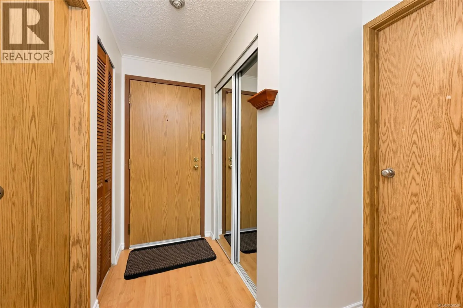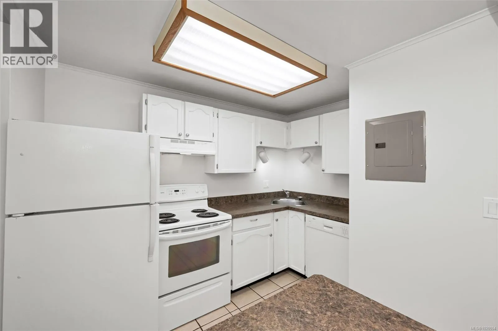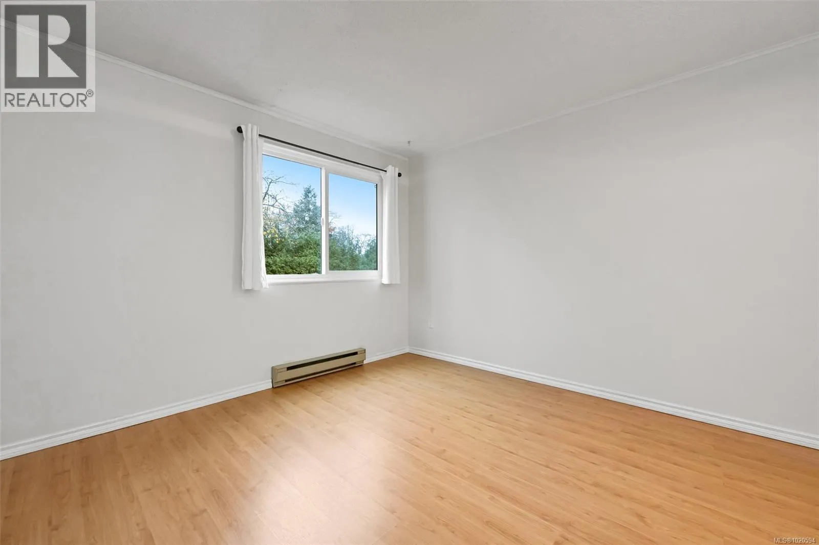 Surrounded by a Garry Oak forest and nestled in a quiet, secluded setting away from busy streets, this private 2-bedroom, 1-bathroom southwest corner suite offers peaceful living. It features a wood-burning fireplace, new LED lighting, laminate flooring, in-suite laundry, newer windows, newer washer and dryer, fresh paint, and a new hot water tank. The open kitchen includes a coffee bar, and sliding doors from the living room and primary bedroom lead to a spacious south-facing balcony. The dining area enjoys a west-facing window looking out over the grounds. Set on 2.8 acres of park-like grounds with mature plantings, this pet-friendly, home is minutes from Uptown, Saanich Centre, Swan Lake, and the Galloping Goose Trail. Includes one parking spot with potential to rent extra parking. This unit enjoys the security of elevated living but the convenience of main floor accessibility. Immediate possession available. A wonderful blend of comfort, nature, and convenience! (id:27476)