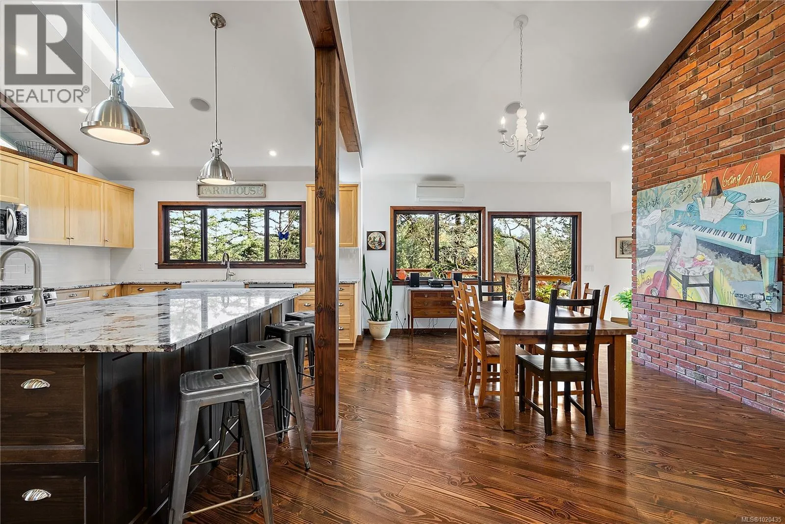 Escape to your very own 9.2 acres of gently rolling meadows & lush, mature forest in highly sought-after W. Saanich. Perfectly positioned just mins. from Victoriaâs urban conveniences, this exceptional property offers the rare combination of privacy, tranquility, & accessibility. A beautifully renovated residence is perched at the heart of the acreage, showcasing an open-concept design that blends modern comfort with timeless West Coast style. The gourmet chefâs kitchen features gleaming granite countertops, premium stainless-steel appliances, a large island & custom cabinetryâideal for both entertaining & everyday living. Vaulted ceilings & skylights flood the main level with natural light, while the striking brick fireplace creates a cozy focal point for family gatherings. The deluxe primary suite is a true retreat which includes a spa-inspired ensuite with a soaker tub & walk-in shower. 2 additional bedrooms, a full bath and a half bath complete the main level. Downstairs, a spacious family room, recreation area/versatile 1 bed suite with full kitchen offer flexibility for guests, teens or extended family. Step outside to enjoy the ultimate in indoor-outdoor living on the expansive wraparound deck with a hot tub. Outdoors, this property is a dream for hobby farmers & equestrian enthusiasts alike. The custom-built pole barn features a hay loft, & the fenced pasture is suitable for horses, cows or sheep. Additional infrastructure includes a pig pen, a chicken coop, & covered parking stalls. A detached 3 car garage with an impressive 700 sq.ft. workshop above offers endless possibilities for hobbies or a home business. A-1-zoned with rural property status & surrounded by scenic forest trails, this property invites you to embrace country living without compromise. Excellent schools, local markets, & recreation are just minutes away. Ask us about available agricultural grants & small business bursaries that can help bring your rural dreams to life. (id:27476)