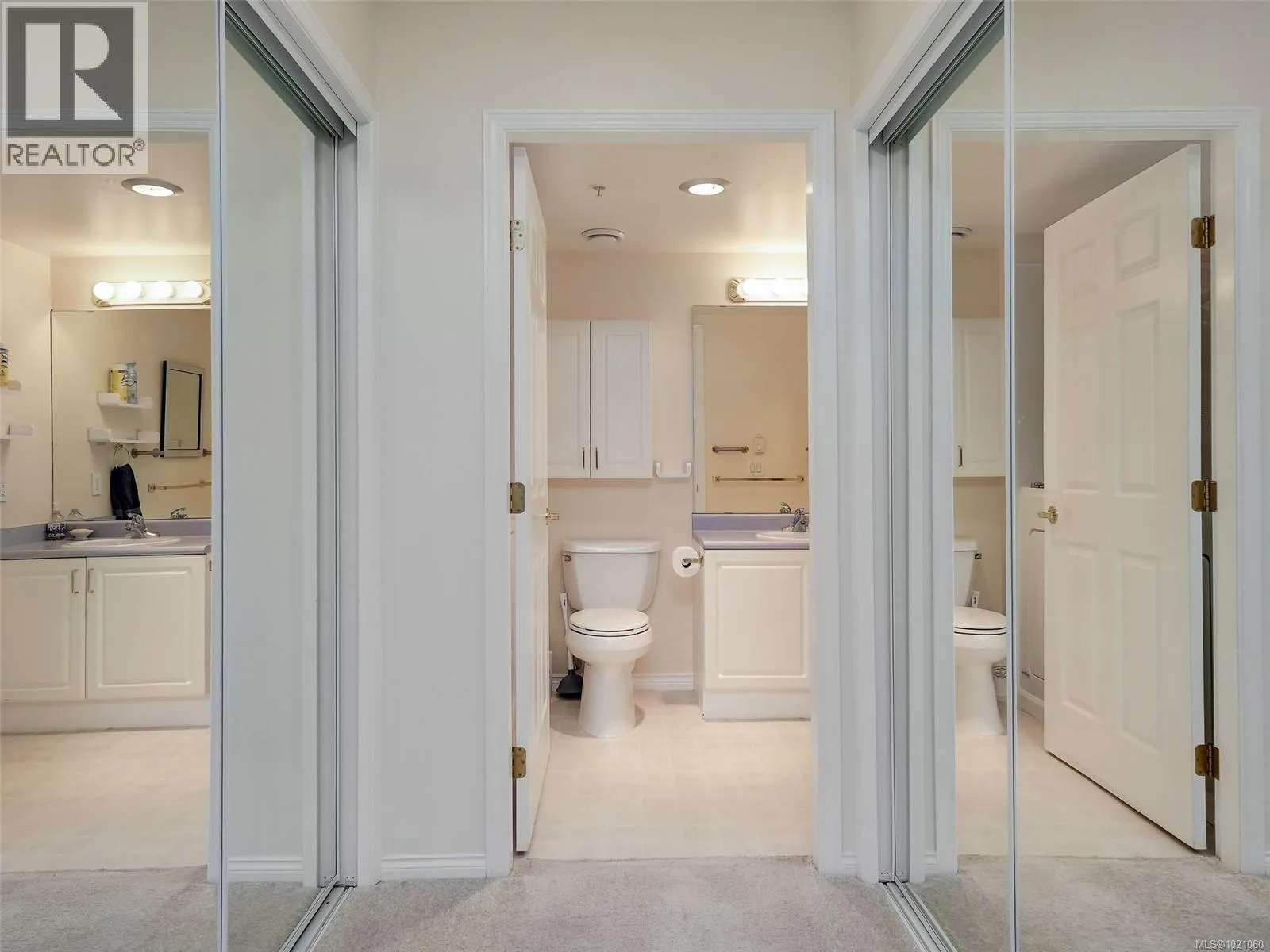 Rosebank Gardens 55+living. This TOP FLOOR 2BR & 2BA â 875 SQFT bright suite offers: a skylight, full kitchen w/ double sink, spacious living/dining room w/ quiet southward views from the private balcony over gardens & trees, a Master w/ walk through closets to ensuite, a bright South facing 2nd bedroom/den & a 2nd bathroom off front hall. Primary bathroom has a custom walk in tub, installed for $14,500. Rosebank Gardens - providing central/safe & independent living/lifestyle. Rosebank is a 55+ independent living community offering a 3 course meal a day, weekly cleaning and linen service, 24-hour staff, First Alert response, coinless laundry on every floor, lounge and dining areas, an activity room, a guest suite, and beautifully landscaped grounds. Ideally located just a short walk to groceries, the library, and other nearby amenities like University heights. (id:27476)