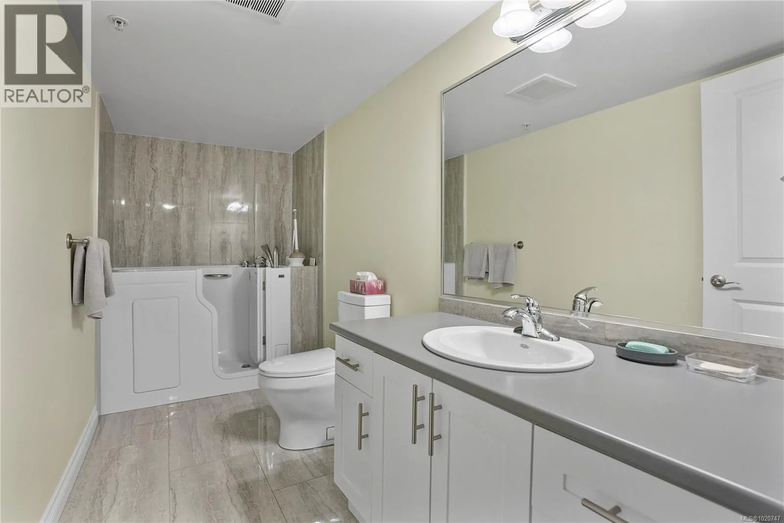 Welcome to Viewmont Heights in Royal Oak Village! This 2 bed/2 bth patio-style style ground floor unit is a 55+ complex (2008) located in the popular area of Saanich. Near Broadmead village & close to all transportation yet tucked away from traffic with shops, recreation, medical services, groceries & amazing restaurants only a short walk away. This well-kept, UPDATED home is in great condition with heated tile flrs and has an open kitchen & living rm, making it a very spacious floorpan. Upgraded walk in style tub and large easy-access shower. Handy in-suite laundry, secure underground parking, separate storage & a well-organized strata. Perfect walkable, private location and community to call home! (id:27476)