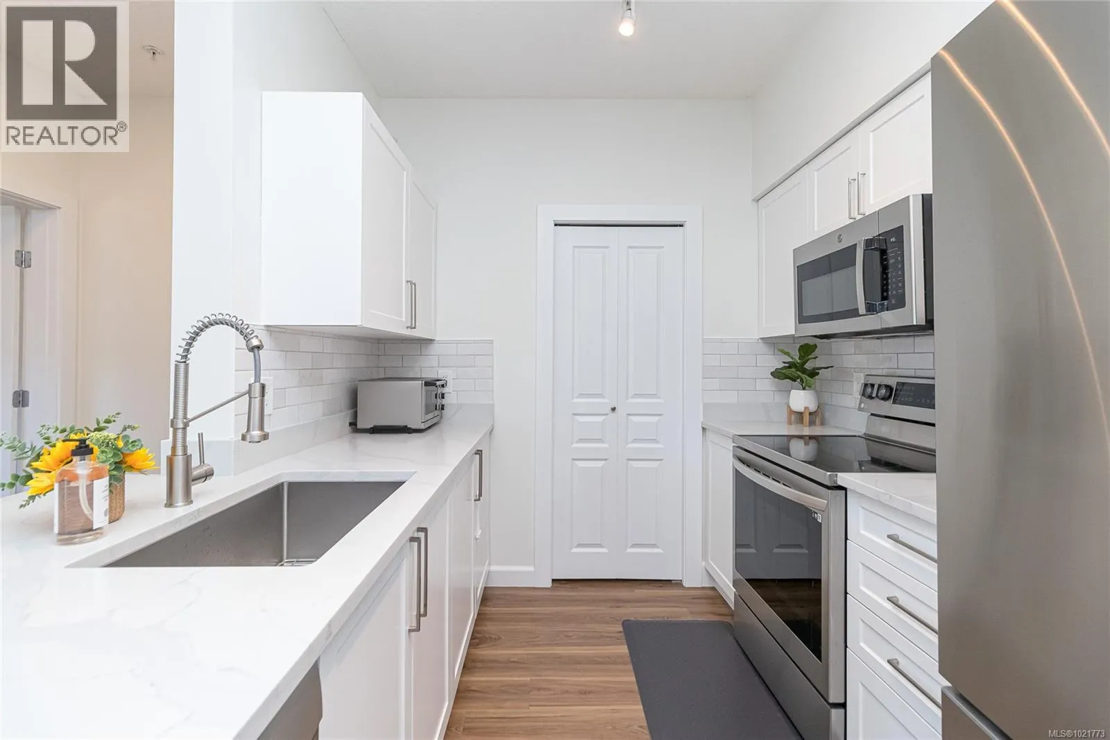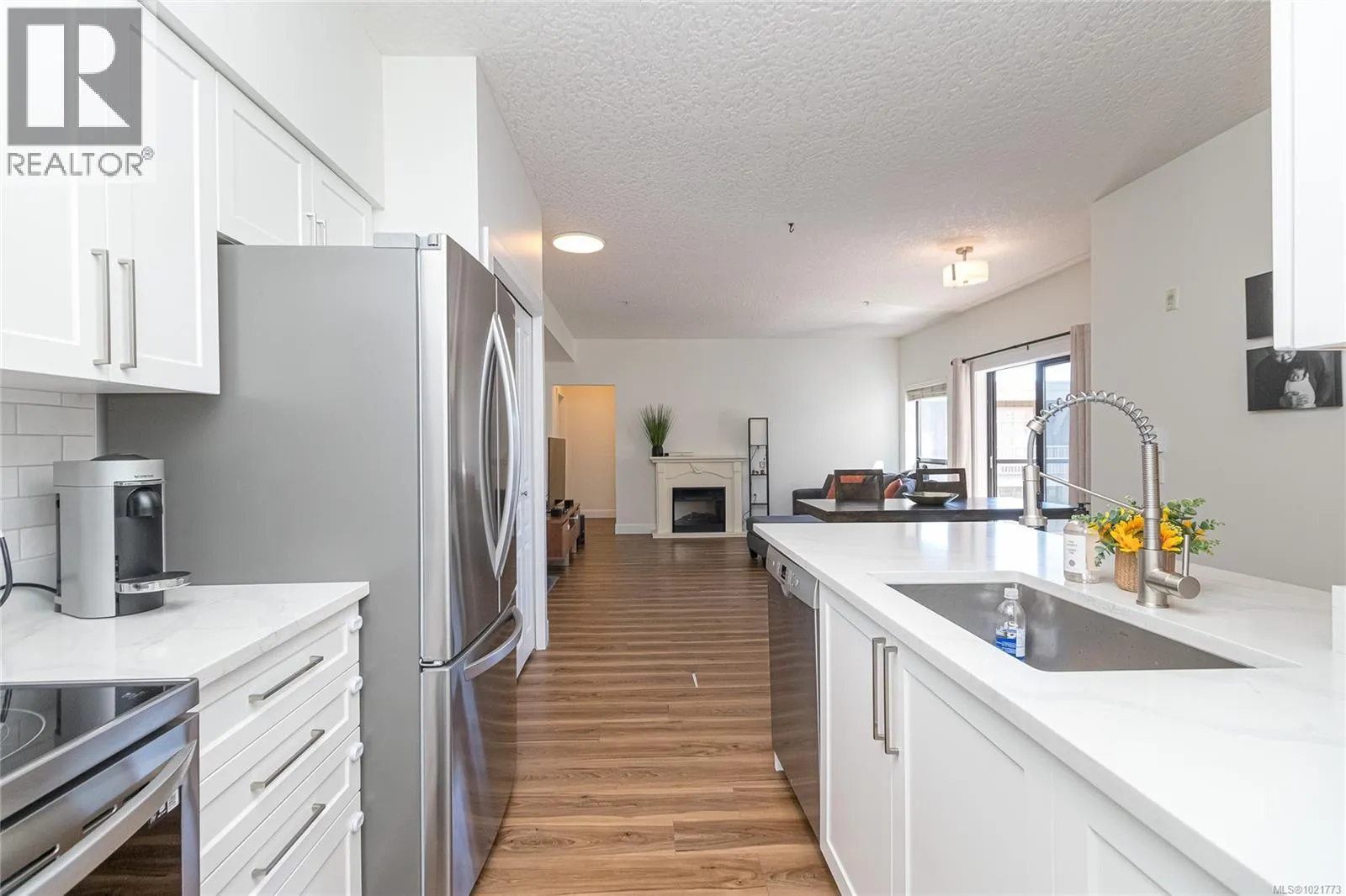 Welcome to this bright and inviting 2-bedroom, 2-bath condo offering the ideal combination of comfort and convenience in the heart of Uptown. With 9â ceilings and updated flooring, the spacious open-concept layout is filled with natural light from large windows. A private balcony extends the living space outdoors, with access from both the living room and primary bedroom. The kitchen provides generous storage and counter space, while the primary suite includes a full ensuite for added comfort. Everyday essentials are covered with in-suite laundry, secure underground parking, and a separate storage locker. Set within a professionally managed building and steps to Uptown Shopping Centre, restaurants, cafés, grocery stores, parks, and major transit, this move-in ready condo is an excellent option for first-time buyers, downsizers, or investors seeking a central lifestyle. (id:27476)