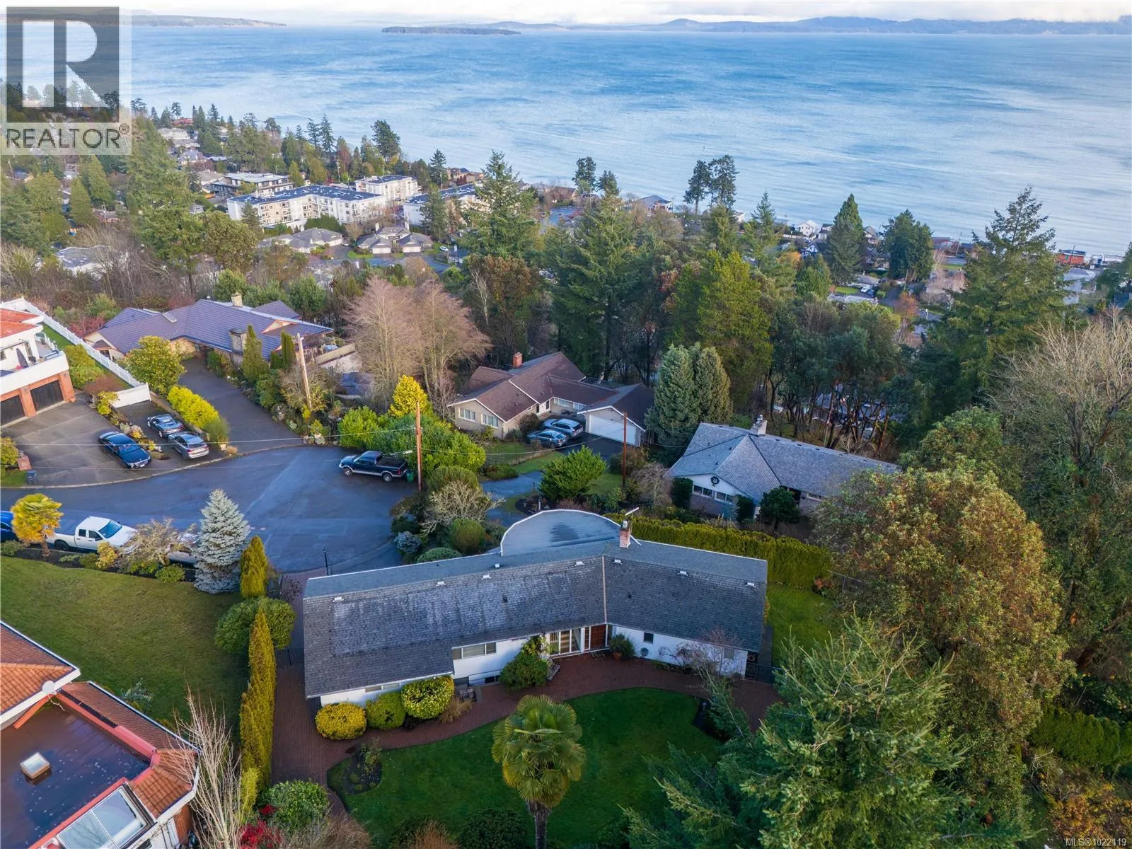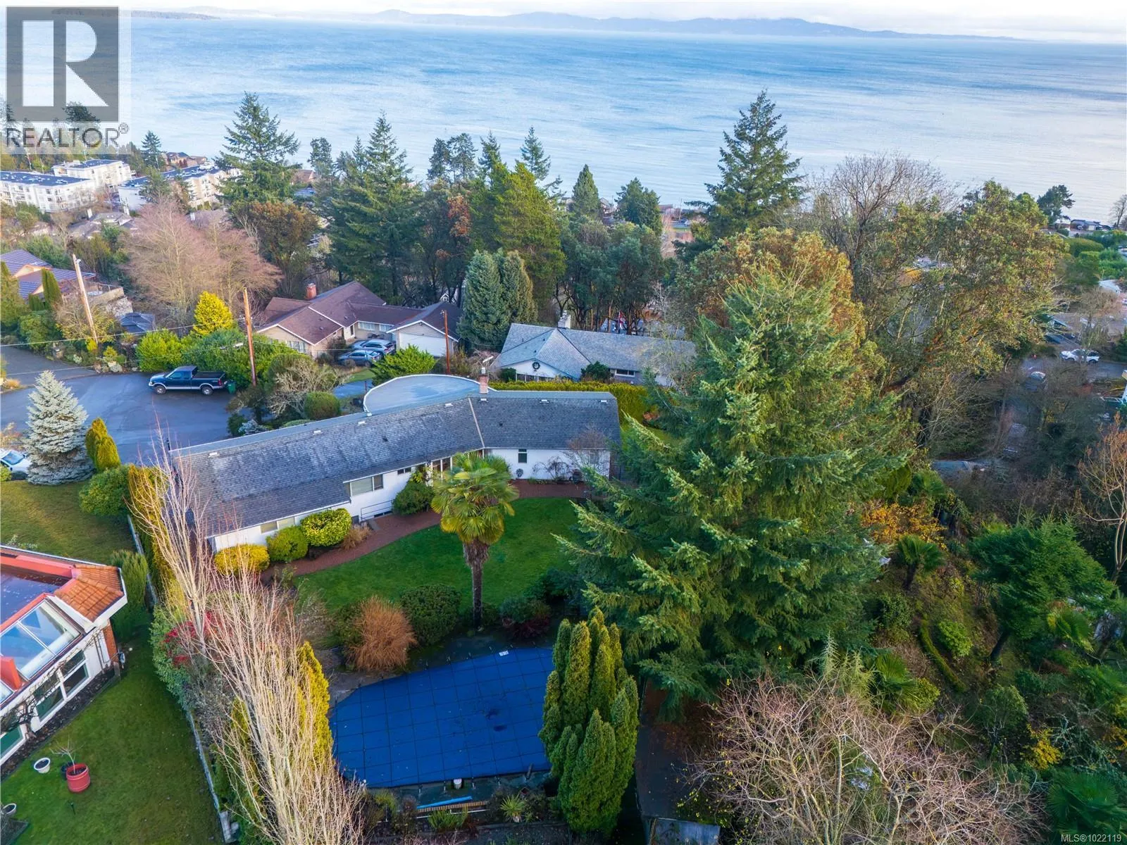Nestled at the end of a quiet cul-de-sac on a lush .33-acre lot, this exceptional 4 bedroom + den, 3 bath Cordova Bay home offers breathtaking ocean views from all primary rooms & unforgettable sunrises over Haro Strait & Mt. Baker. The main level offers a bright living room with floor to ceiling windows & a wood burning fireplace, family room, formal dining & eat-in kitchen. Both the family & living room open to expansive southeast facing deck. The primary bedroom with walk in closet is conveniently located on the main, while the lower level includes a 2 bedroom in-law suite with full kitchen, living & dining area & 3pc bath. Bonus den/rec room, large laundry & crawl space plus double garage also located on the lower level. Outside, enjoy the private, mature garden, beautiful brick patios & sun-drenched in-ground pool. Within minutes to schools, trails & Cordova Bay beach access. Views, peace & privacy in an incredible location - act quick! (id:27476)