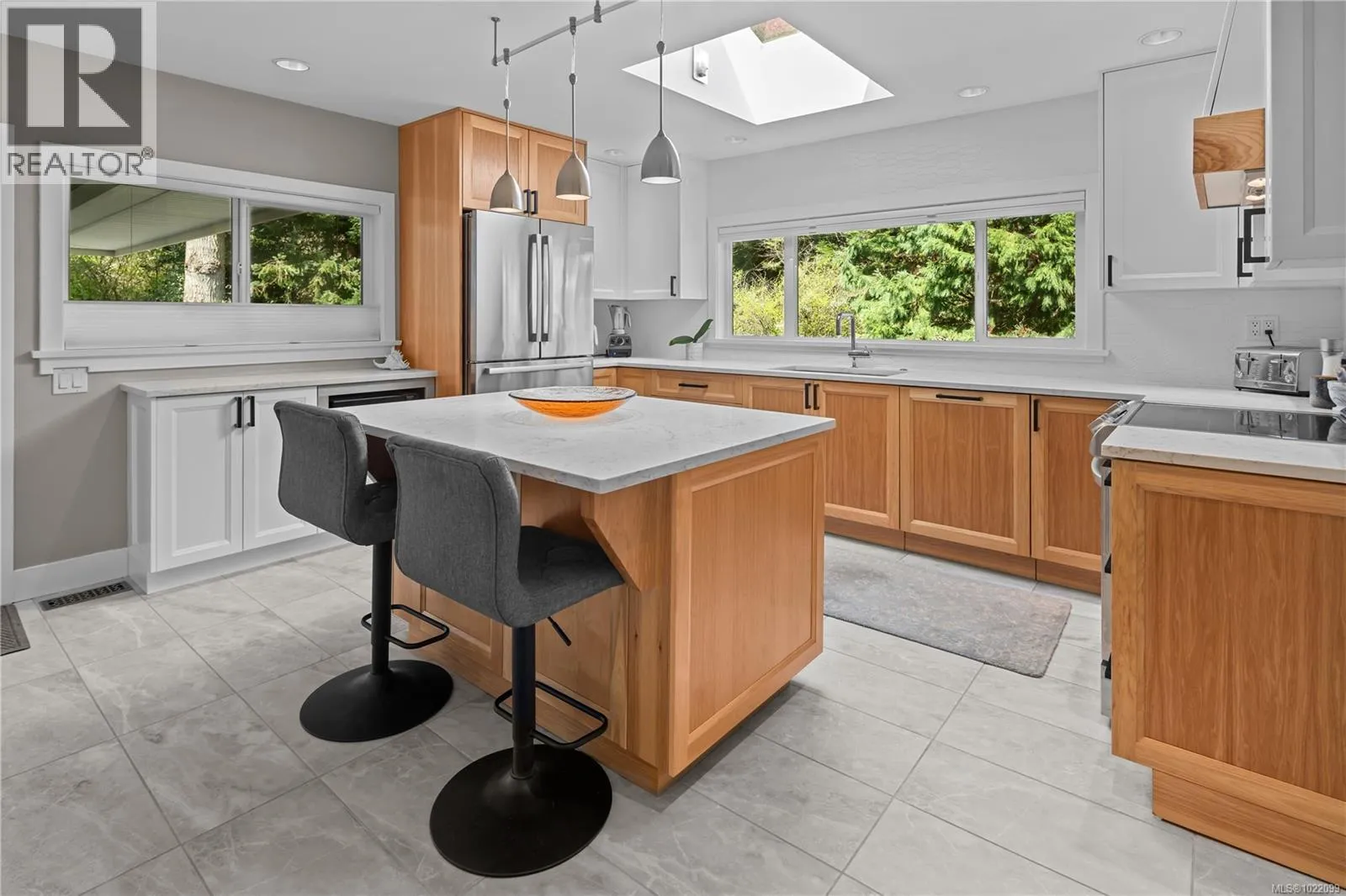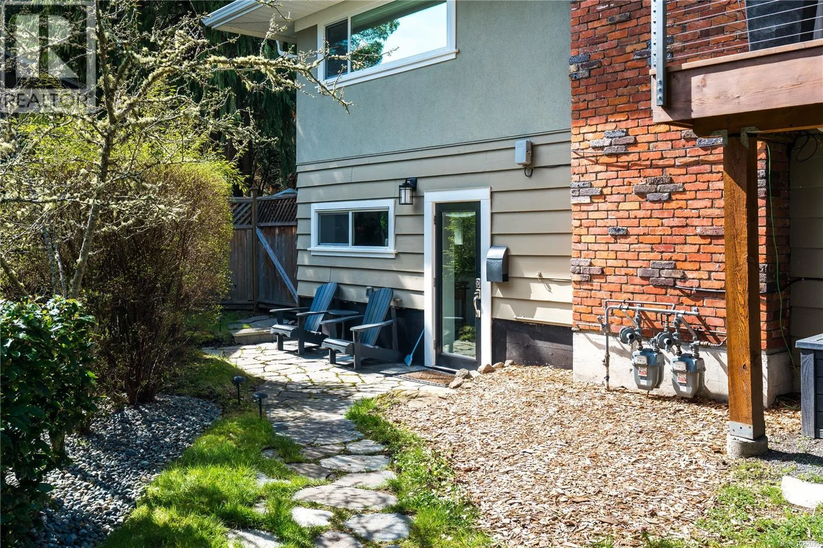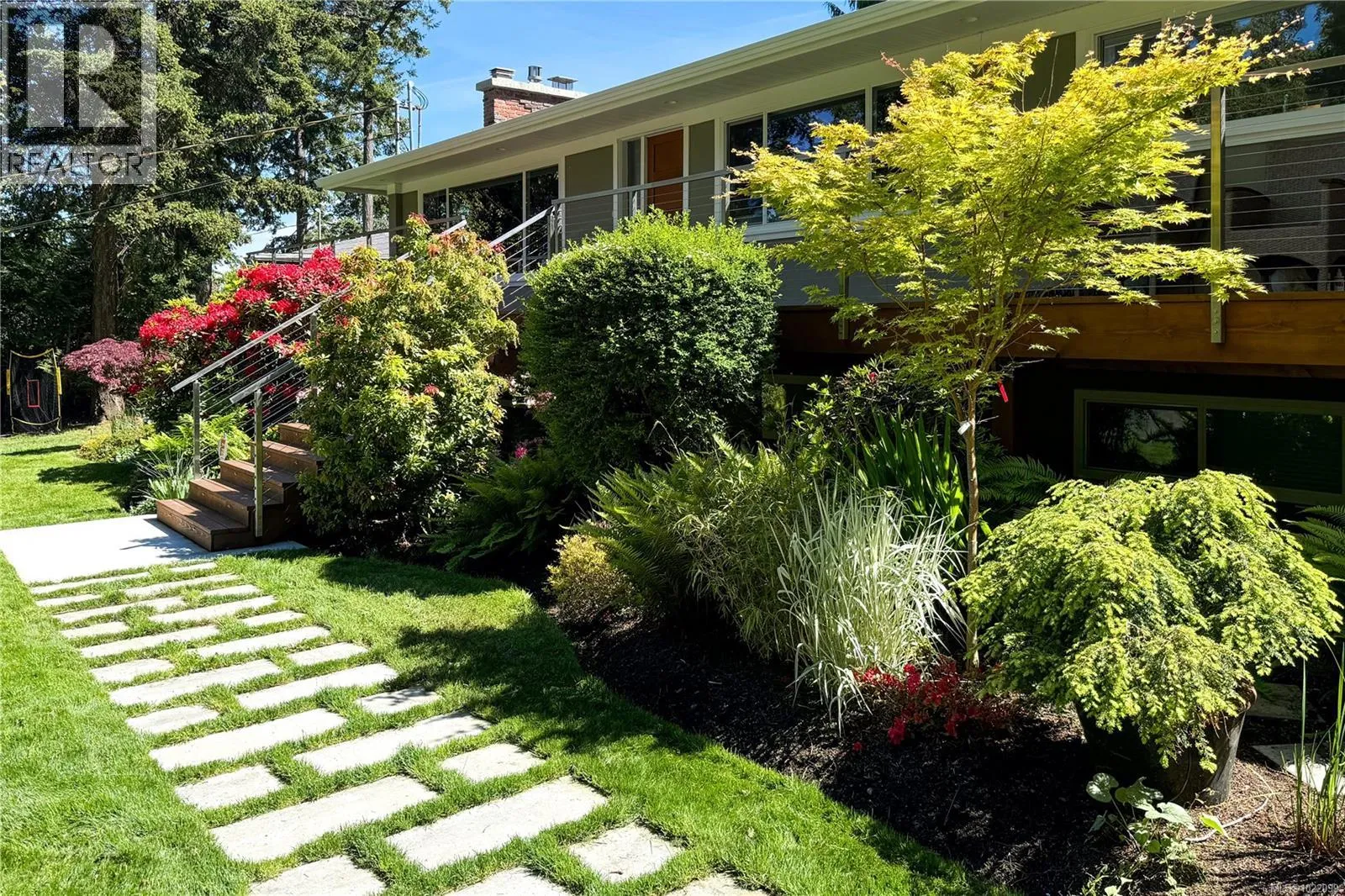 Move in for September! Tucked away on a quiet no-through road in Ten Mile Point, this beautifully renovated 1950s home sits on an expansive 11,000+ sq ft lot, just steps to the ocean and adjacent to Konukson and Phyllis Parks. Thoughtfully updated throughout, it features a custom kitchen, hardwood floors, fir doors, energy efficient windows, 300 amp service, and a new furnace and heat pump. The main level offers a bright, open layout with a gas fireplace, forest views, and a natural flow connecting the kitchen, dining, and living areas. The spacious primary bedroom, two additional bedrooms, and a stylish full bath complete the main floor. Downstairs includes a large laundry room, an additional bedroom with ensuite, and a brand new one bedroom legal suite with its own entrance. The fully fenced backyard is a landscaped retreat with raised garden beds, curated plantings, and a large cedar deck with ocean glimpses. A rare offering in a prime location near beaches, trails, schools, and Cadboro Bay Village. (id:27476)