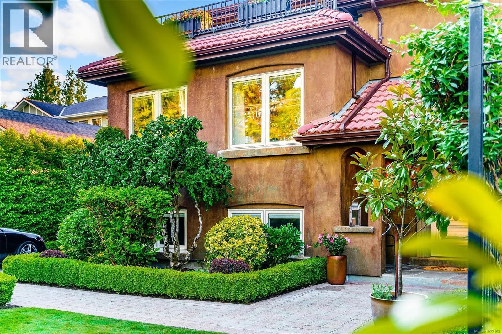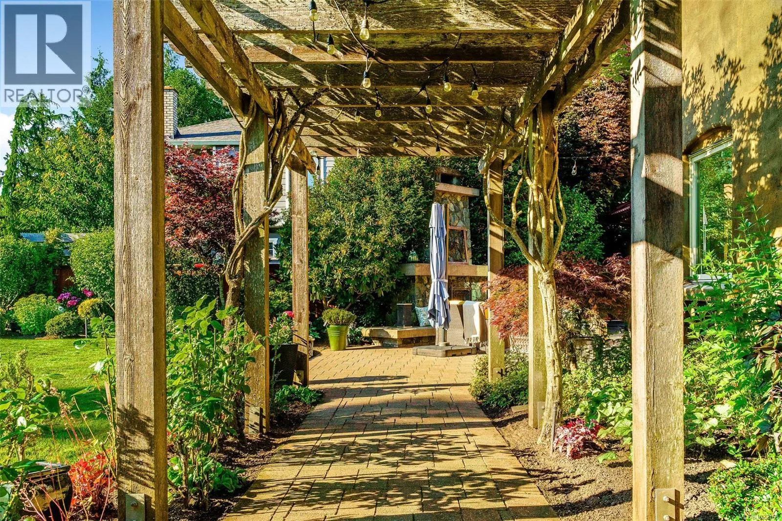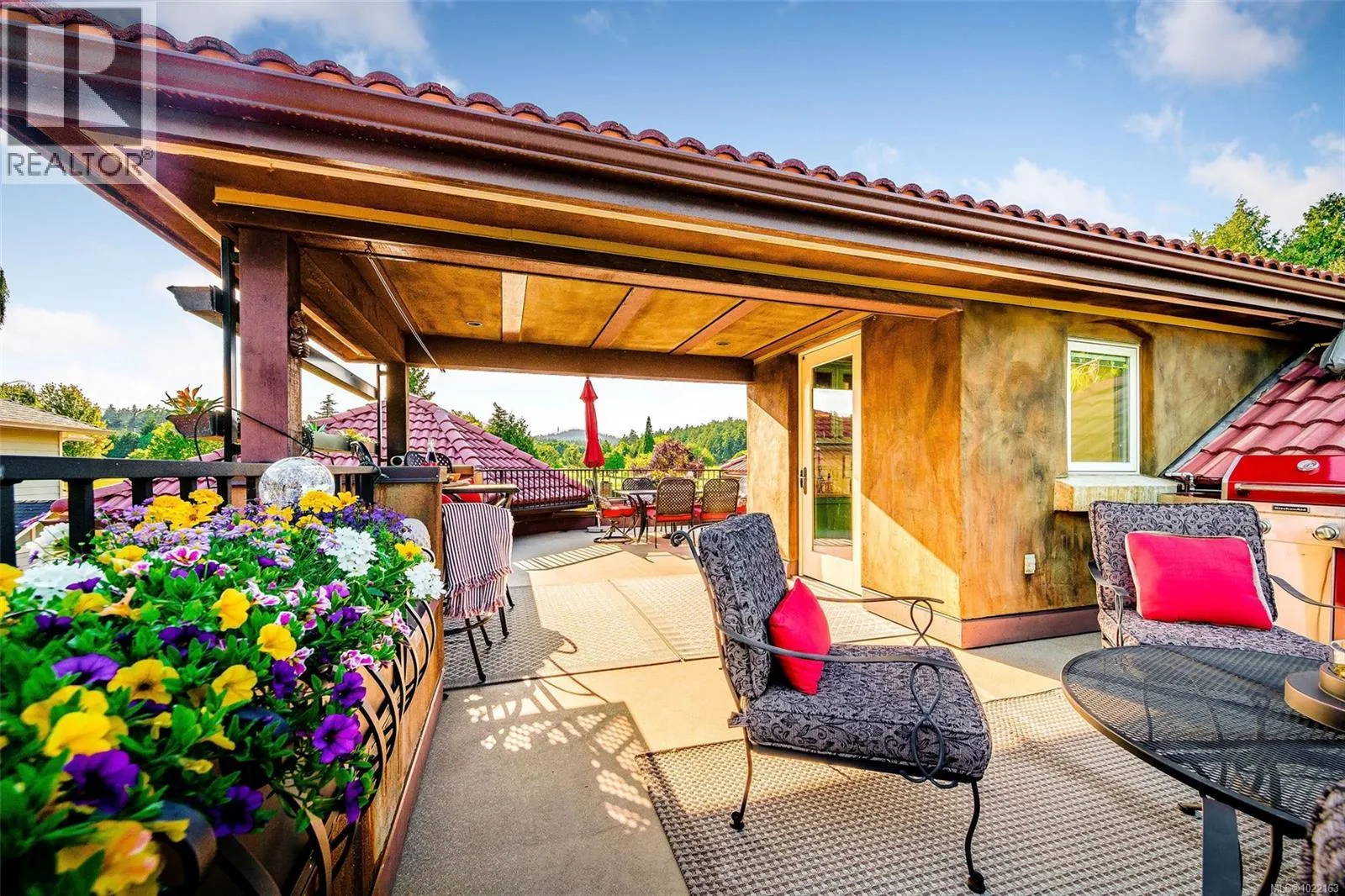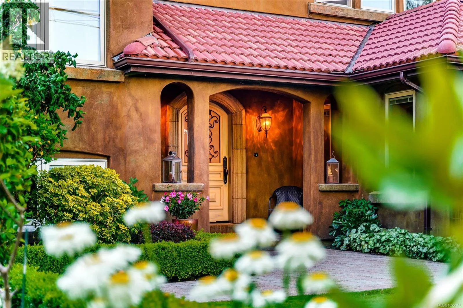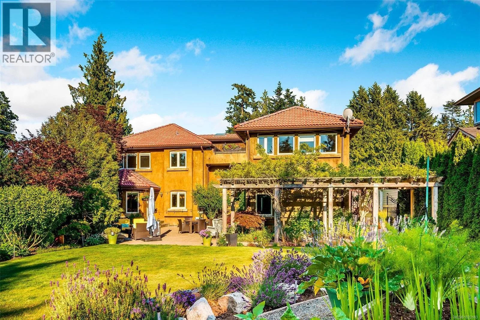 Welcome to this exceptional Mediterranean-style residence located in the heart of highly sought-after Cordova Bay, offering a rare combination of privacy, luxury finishes, and an elevated coastal lifestyle. Rebuilt in 2007, this custom home showcases timeless architecture paired with thoughtful, high-end design throughout. The main level features open-concept great room with exposed beams, soaring ceilings, and beautiful walnut hardwood flooring, creating a warm yet refined atmosphere. The kitchen and living spaces flow seamlessly for everyday living and entertaining alike. The primary suite is a true retreat, offering generous proportions, his-and-her walk-in closets, a comfortable sitting area, private laundry, and a spa-inspired ensuite with a custom slipper tub and separate walk-in shower. Outdoor living is exceptional. The private rooftop terrace features an entertainerâs /kitchen and captures expansive views of Cordova Bay Golf Course and ocean beyondâan ideal setting for sunset gatherings. At ground level, the fully fenced, sundrenched yard is beautifully landscaped with lush greenery, a tranquil pond, and multiple seating areas, including an interlocking brick patio with a gas fireplace. Additional highlights include: â¢Detached studio above the garage with full bathroomâperfect for guests, in-laws, or a private office â¢Lower-level family or media room, custom wine cellar, and spacious laundry room â¢Six bathrooms providing comfort and flexibility for family and guests This distinctive home offers a rare blend of Mediterranean charm, modern comfort, and exceptional outdoor living, all just minutes from beaches, golf, trails, and the amenities of Cordova Bay. A truly unique opportunity to own a custom-crafted home in one of Victoriaâs most desirable coastal communities. (id:27476)