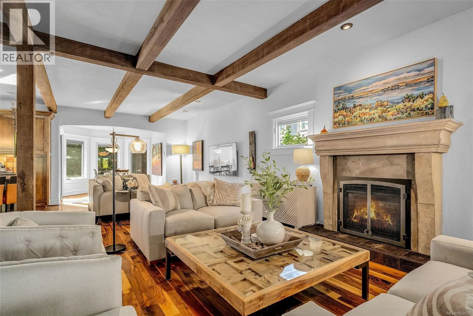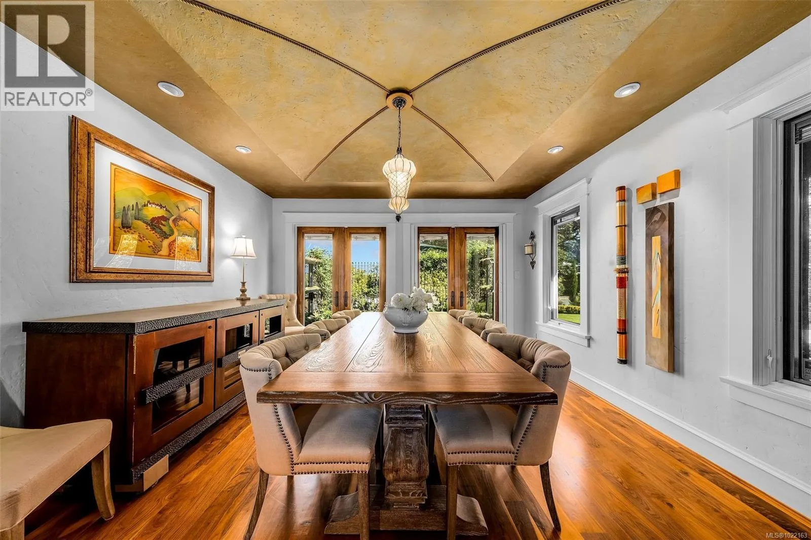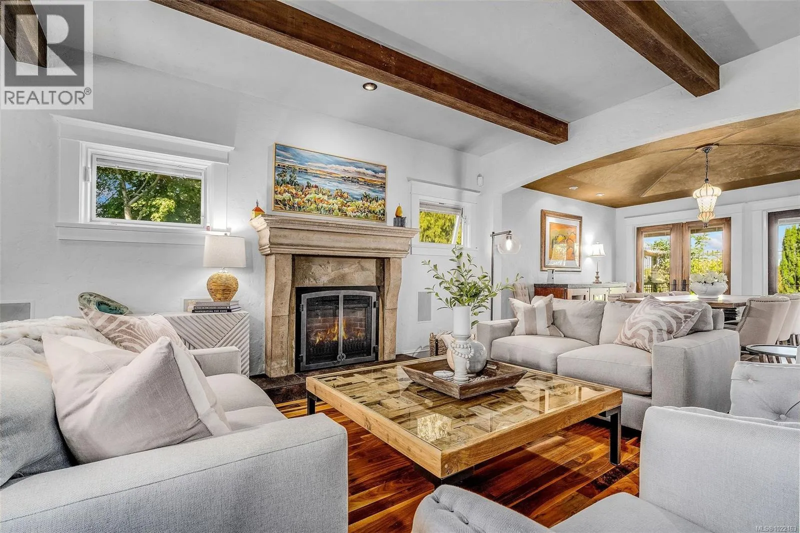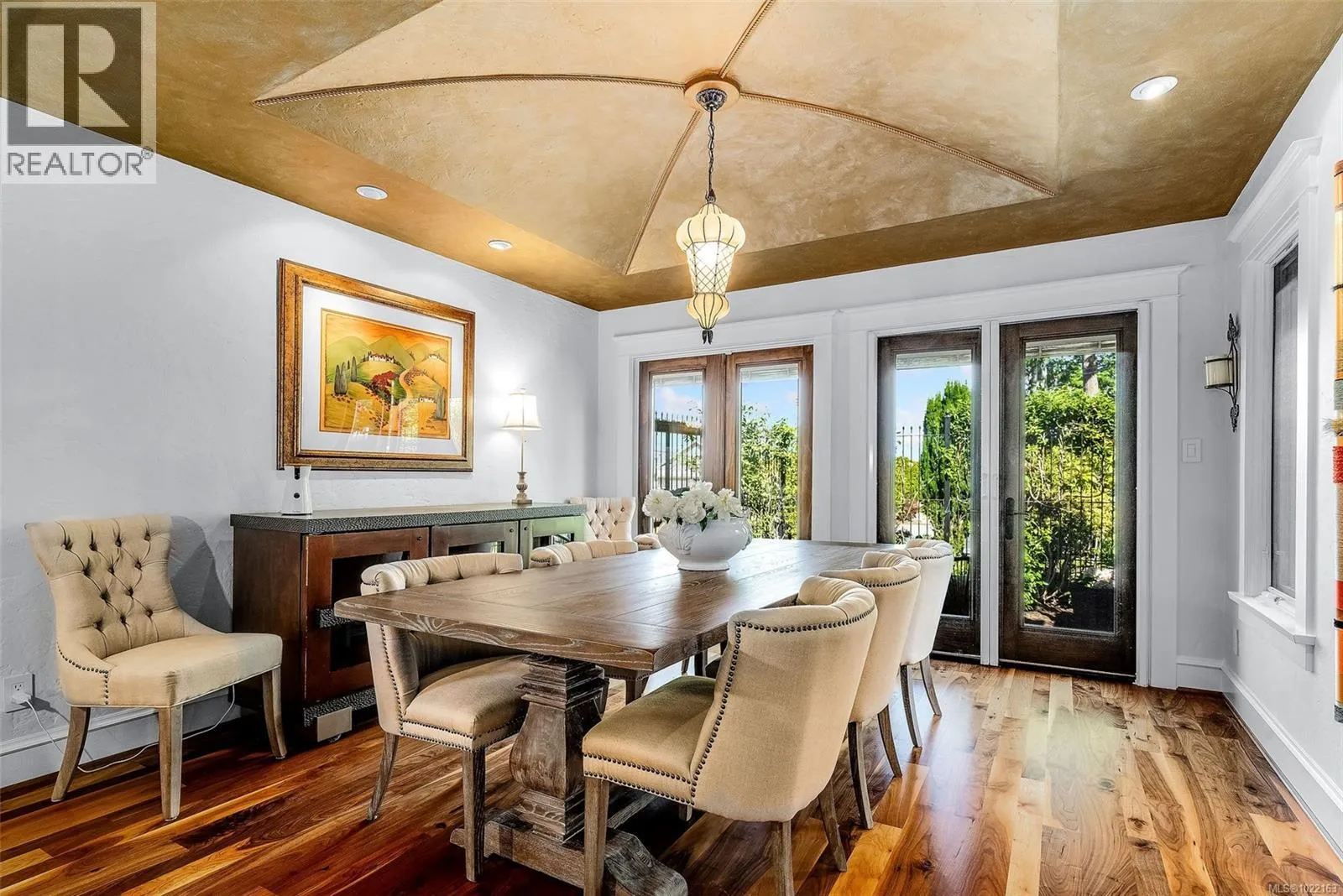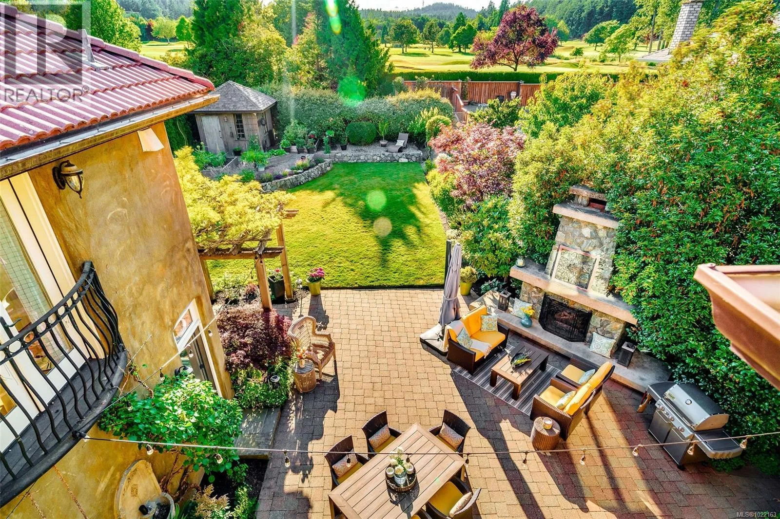 Welcome to this exceptional Mediterranean-style residence located in the heart of highly sought-after Cordova Bay, offering a rare combination of privacy, luxury finishes, and an elevated coastal lifestyle. Rebuilt in 2007, this custom home showcases timeless architecture paired with thoughtful, high-end design throughout. The main level features open-concept great room with exposed beams, soaring ceilings, and beautiful walnut hardwood flooring, creating a warm yet refined atmosphere. The kitchen and living spaces flow seamlessly for everyday living and entertaining alike. The primary suite is a true retreat, offering generous proportions, his-and-her walk-in closets, a comfortable sitting area, private laundry, and a spa-inspired ensuite with a custom slipper tub and separate walk-in shower. Outdoor living is exceptional. The private rooftop terrace features an entertainerâs /kitchen and captures expansive views of Cordova Bay Golf Course and ocean beyondâan ideal setting for sunset gatherings. At ground level, the fully fenced, sundrenched yard is beautifully landscaped with lush greenery, a tranquil pond, and multiple seating areas, including an interlocking brick patio with a gas fireplace. Additional highlights include: â¢Detached studio above the garage with full bathroomâperfect for guests, in-laws, or a private office â¢Lower-level family or media room, custom wine cellar, and spacious laundry room â¢Six bathrooms providing comfort and flexibility for family and guests This distinctive home offers a rare blend of Mediterranean charm, modern comfort, and exceptional outdoor living, all just minutes from beaches, golf, trails, and the amenities of Cordova Bay. A truly unique opportunity to own a custom-crafted home in one of Victoriaâs most desirable coastal communities. (id:27476)