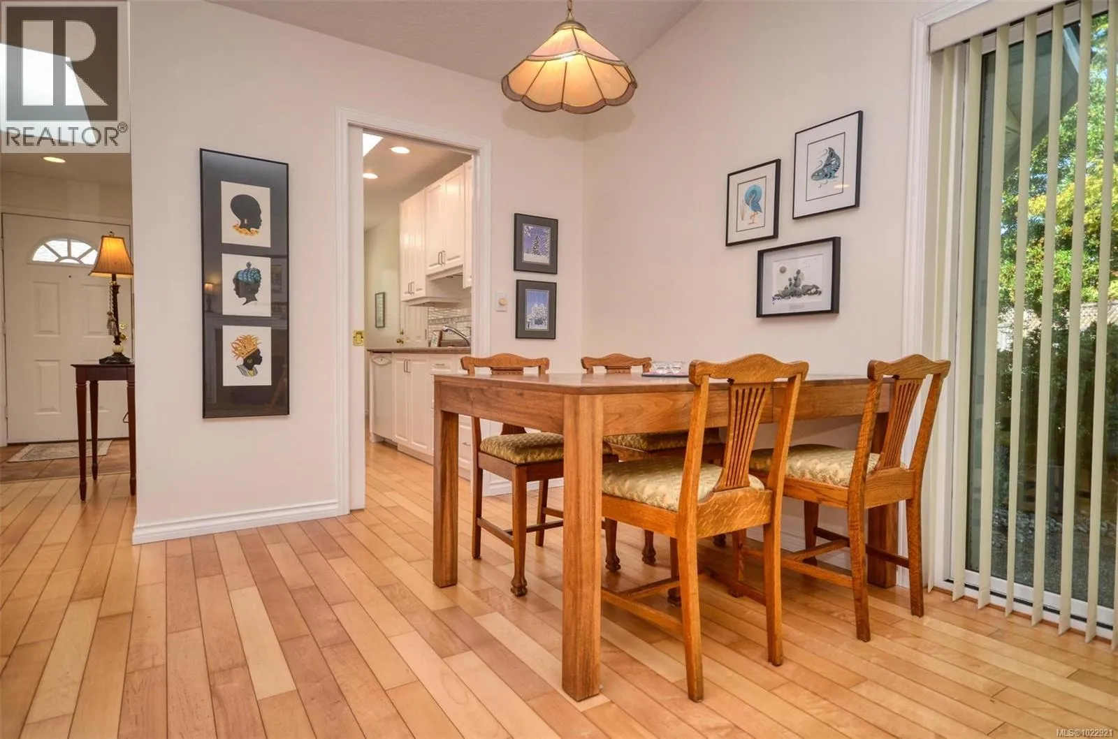 A great condo alternative. What a wonderful opportunity to own a beautiful level entry townhome in the exclusive Cordova Bay Beach community. This open layout 2-bedroom end unit shows well with a spacious primary bedroom, 2 bathrooms, vaulted ceiling, private patio, second bedroom with Murphy bed, sparkling kitchen with eating area, private patio, deep single garage, and a very nice living / dining room combo. Suited to retirees or executive types, this well managed development is in an outstanding location only a short stroll to the beach, golf courses, shopping, and public transportation. A pleasure to view and must be sold. (id:27476)