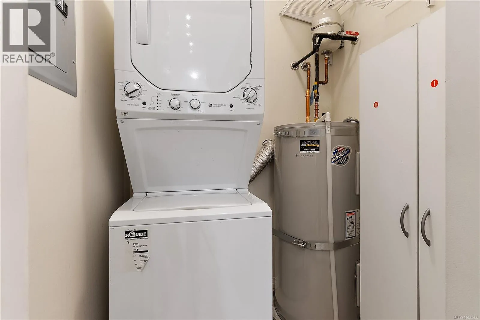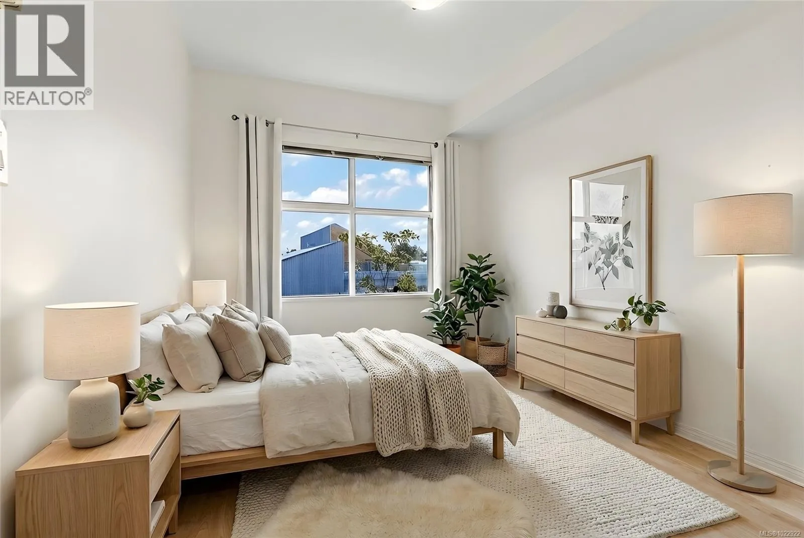 Welcome to this bright and well cared for 2 bedroom 2 bathroom condo close to UVic! 2026 BC Assessment at $566,000. This suite features an open concept floor plan with a split bedroom design, a generous master with walk-through closet and 4 pc ensuite, a secondary full 4pc bathroom, tall ceilings, laminate flooring throughout and large windows in every room. An ideal location only minutes in walking/bikeable distance to UVic or Camosun and amenities in Tuscany Village & Shelbourne Plaza. Easy access to direct bus routes mean only a 10 minute bus ride to the downtown core! ''The Gardens'' is a 2003, quiet, well-kept building with great insulation for optimal privacy, with bike storage, low strata fees that include hot water and allows rentals & pets. This suite includes a designated parking stall and in-unit laundry. Great value for an investor, first time buyers, down-sizers, or students/faculty attending the University! Book your showing today! (id:27476)