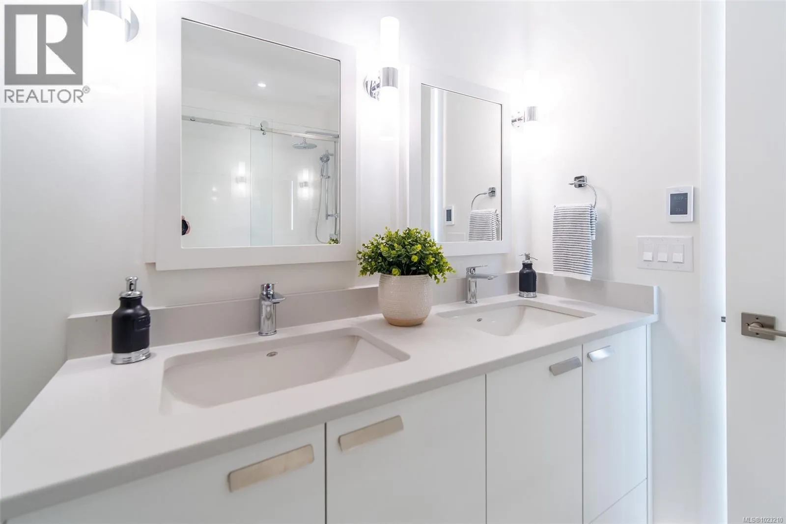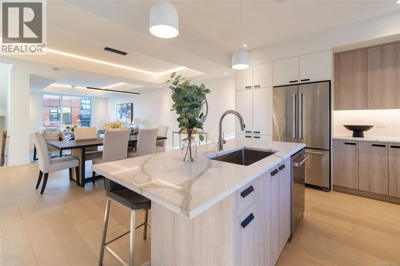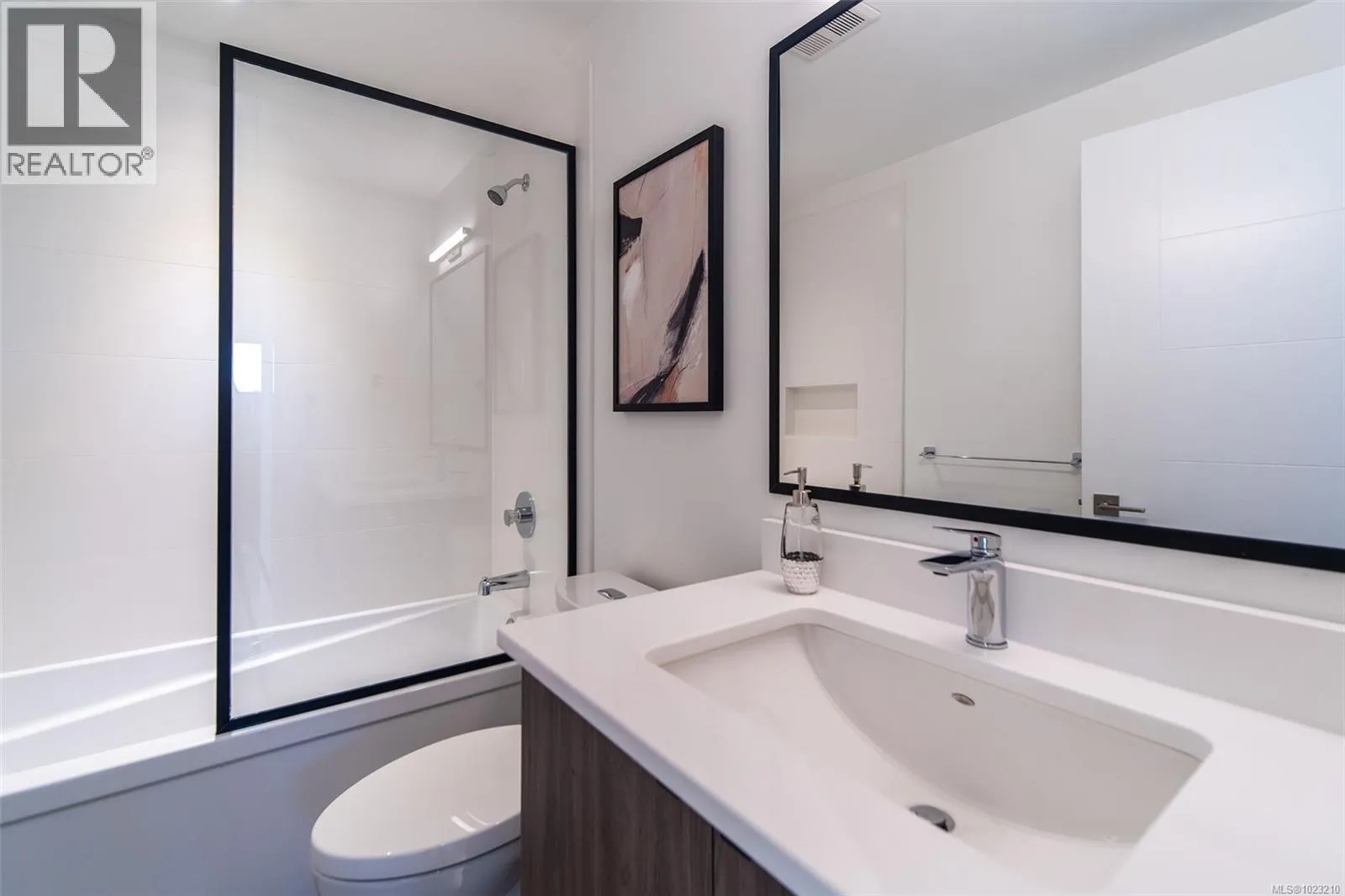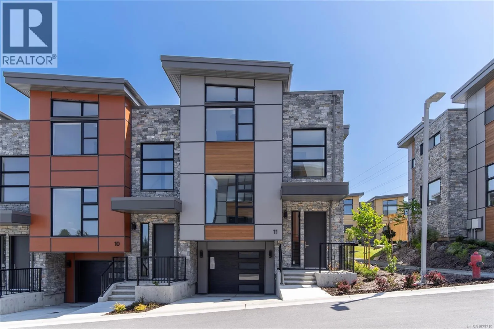 NEW LISTING! THE LAST END-UNIT AVAILABLE! Executive Townhome at Paragon Parc, built by award-winning White Wolf Homes. Offering 2,386+ sq ft of refined living, this 3BD/4BA home blends luxury, space & privacy. Soaring rooflines, oversized windows & West Coast design set the tone. Main flr features: 9â ceilings, gourmet kitchen w/ quartz counters, gas cooktop, wall oven, island, pantry, & deluxe KitchenAid appliances. Open-concept living/dining w/ fireplace, office nook, & powder rm. Stunning primary suite w/ walk-in closets, spa-like ensuite (heated tile, floating vanities, glass shower), + laundry & vaulted ceilings. Lower: media/rec rm, ideal for guests, gym or flex. Add'l features: radiant flrs, remote blinds, EV-ready garage, XL driveway, heat pump, fenced yard & patio backing greenspace. Community garden, kidâs park, trails, shops, airport & DT Victoria mins away. Full new home warranty. Move-in ready âyour luxe lifestyle starts here. (id:27476)