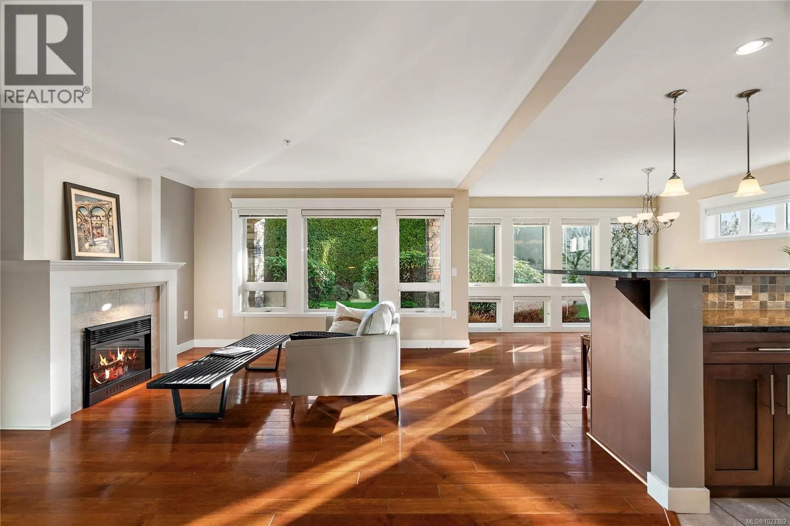Welcome to Heatherdale Estates â one of Royal Oakâs most desirable communities. This ground level 2-bedroom, 2-bathroom corner unit offers 1,100+ sq.ft. of thoughtfully designed open-concept living. Built by Mike Geric, this quality development features hardwood floors, gas fireplace and a great floorplan. Large windows flood the space with natural light. The chef-inspired kitchen features a generous island, granite countertops, and stainless steel appliances â ideal for entertaining or everyday living. Step onto your private sundeck to enjoy morning coffee or unwind in the evening. Additional highlights include in-suite laundry, secure underground parking, and bike storage. This well-maintained, pet-friendly building allows rentals, offering flexibility for both homeowners and investors. Located on a convenient transit route, youâre just minutes from Broadmead Village, Royal Oak Shopping Centre, Commonwealth Place, and the scenic trails of Elk/Beaver Lake. (id:27476)