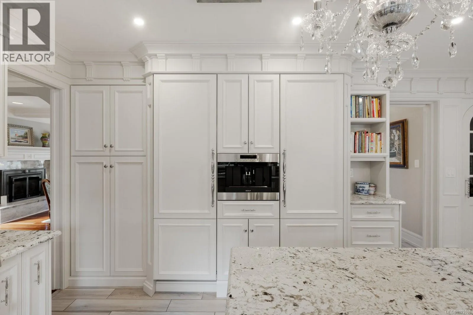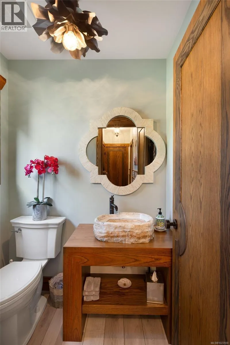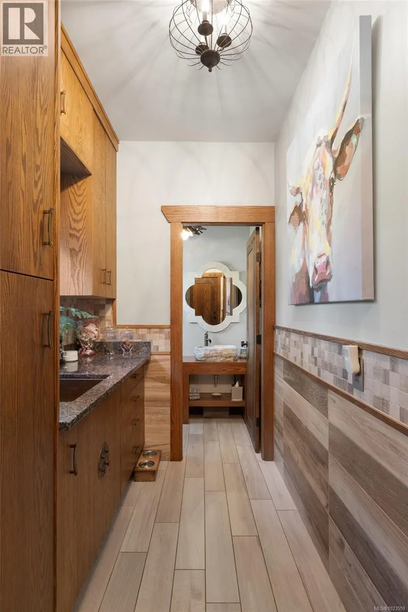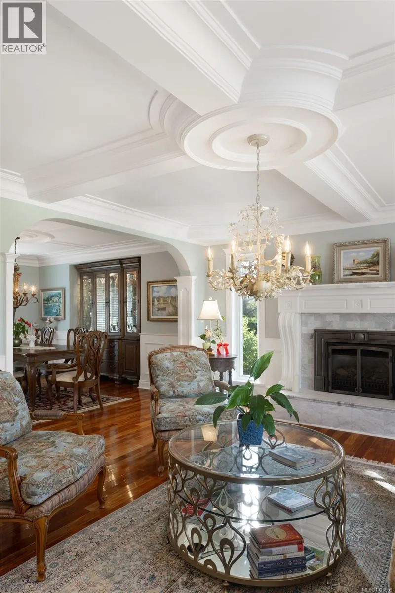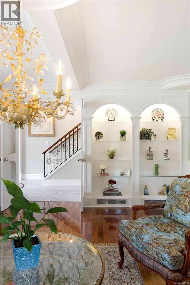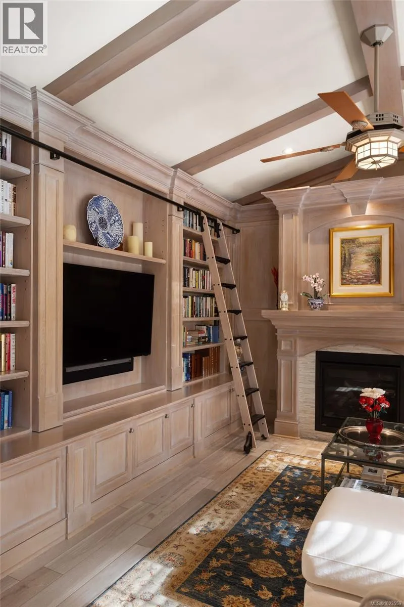 A stately stone exterior French Country Manor in prestigious Wedgewood Point on Ten Mile Point. This luxurious home features a unique blend of timeless design, functional craftsmanship and the comforts of modern living. Backing onto Benson Park, come home to peace, privacy and nature all around on this 1/3 acre of lush landscaped grounds complete with stone pathways, raised and irrigated vegetable and fruit gardens, sun deck, covered patio and hot tub, bathed in South-West light. Inside, architectural interest abounds with elevated bespoke cabinetry throughout; find coffered ceilings, wainscotting and many distinctive functional features. The kitchen is a statement of glamour rooted in tradition; bespoke cabinetry, Wolf & Sub-Zero, built-in coffee station & stone counters. Vaulted Great Room impresses with dramatic floor to ceiling library wall with rolling ladder. Upstairs, a primary suite offers a Juliet balcony, dual walk-in closets, spa-like ensuite with soaker tub & steam shower. Two additional bedrooms, main bath and laundry room complete the upstairs. Double garage, detached single garage with 400+ sq ft loft studio with bathroom offer flexible living or workspace options. (id:27476)