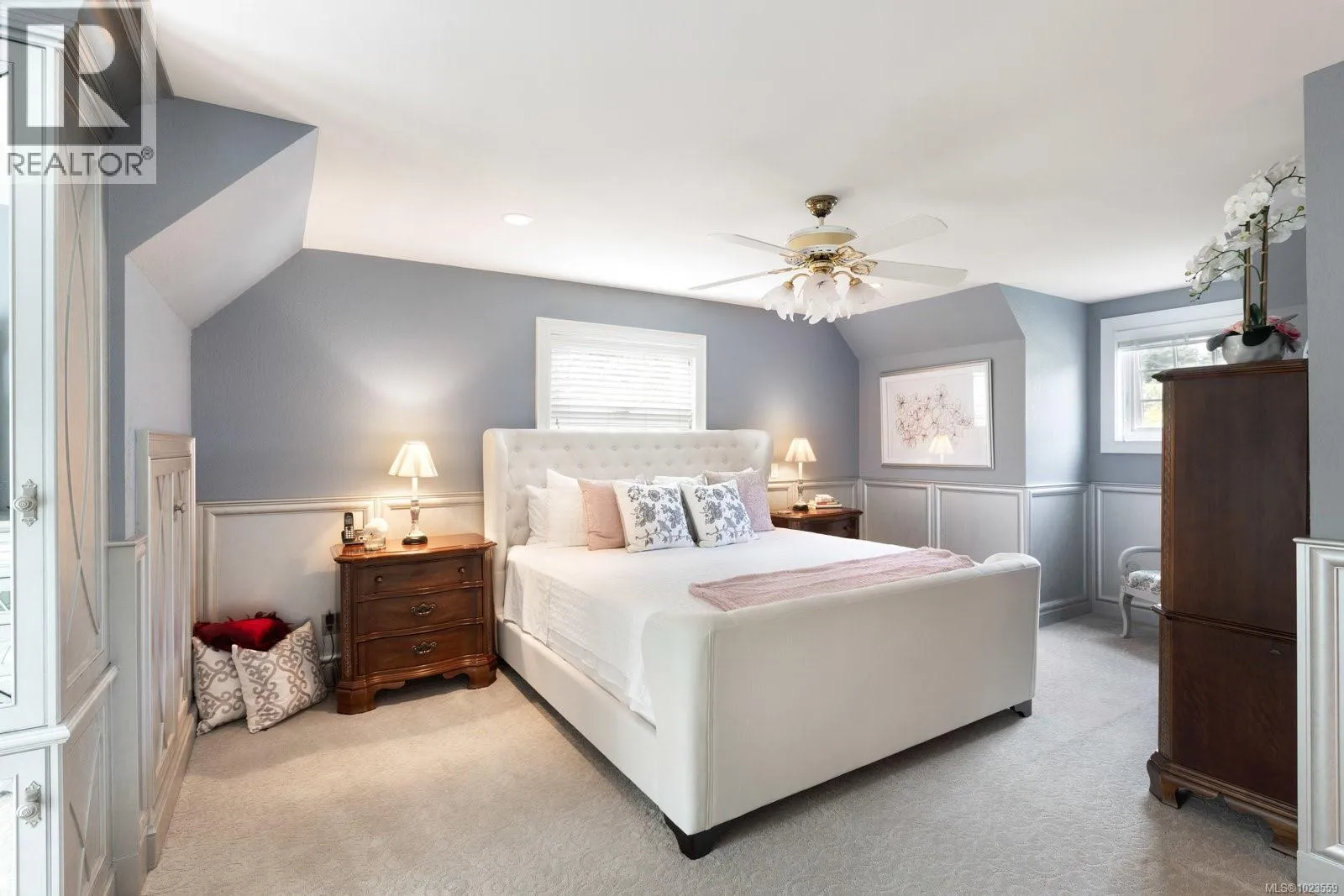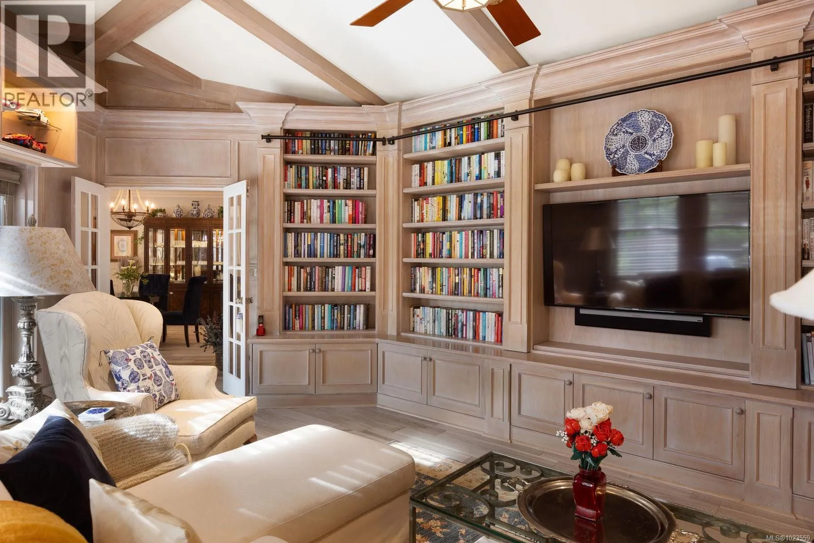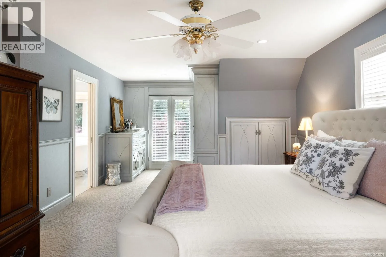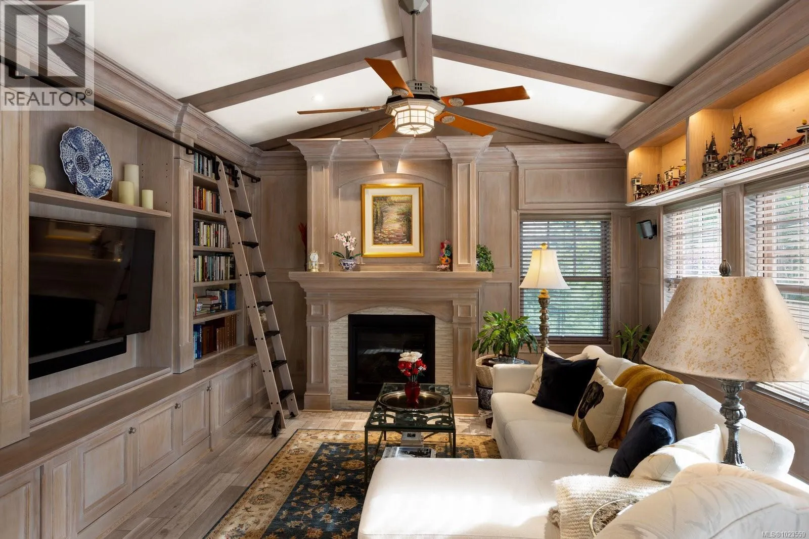 A stately stone exterior French Country Manor in prestigious Wedgewood Point on Ten Mile Point. This luxurious home features a unique blend of timeless design, functional craftsmanship and the comforts of modern living. Backing onto Benson Park, come home to peace, privacy and nature all around on this 1/3 acre of lush landscaped grounds complete with stone pathways, raised and irrigated vegetable and fruit gardens, sun deck, covered patio and hot tub, bathed in South-West light. Inside, architectural interest abounds with elevated bespoke cabinetry throughout; find coffered ceilings, wainscotting and many distinctive functional features. The kitchen is a statement of glamour rooted in tradition; bespoke cabinetry, Wolf & Sub-Zero, built-in coffee station & stone counters. Vaulted Great Room impresses with dramatic floor to ceiling library wall with rolling ladder. Upstairs, a primary suite offers a Juliet balcony, dual walk-in closets, spa-like ensuite with soaker tub & steam shower. Two additional bedrooms, main bath and laundry room complete the upstairs. Double garage, detached single garage with 400+ sq ft loft studio with bathroom offer flexible living or workspace options. (id:27476)