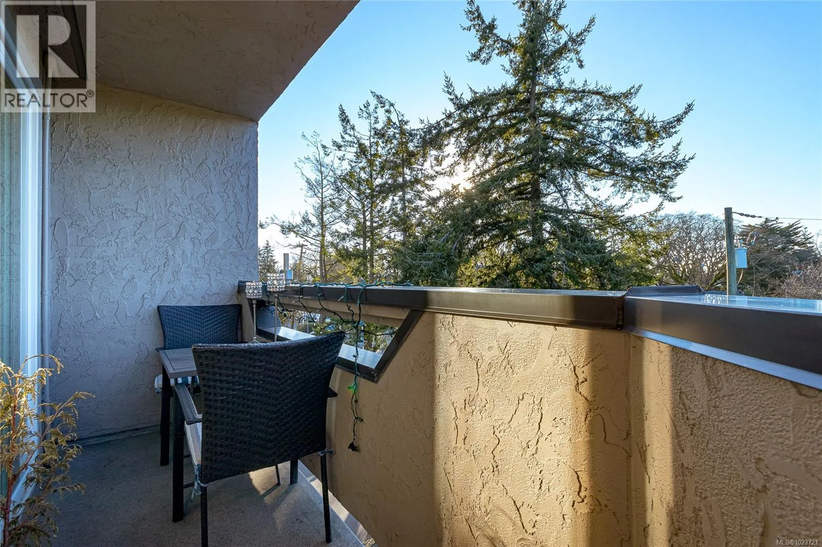 Top-floor and corner privacy with sunset views. This 2 bed, 1 bath condo (approx. 900 sq ft) enjoys west-facing mountain and skyline vistas of the Saanich skyline, bathing the home in natural light all afternoon. The layout offers great separation of spaces with the bedrooms set away from the main living and kitchen area. In-suite laundry keeps day-to-day life simple, and the kitchen has seen recent appliance updates, including a newer dishwasher. Strata fee includes heat and hot water, adding year-round comfort and predictable costs. Window coverings and appliances are included, so you can settle in quickly. Tucked on the quiet side of the building, it feels peaceful while still being close to everything. One parking stall is included, plus extra storage for bikes and seasonal gear. No age restrictions and pet friendly for both cats and dogs. Central location near transit, shopping, schools, major routes and the Galloping Goose Trail. A great blend of light, privacy and convenience. (id:27476)