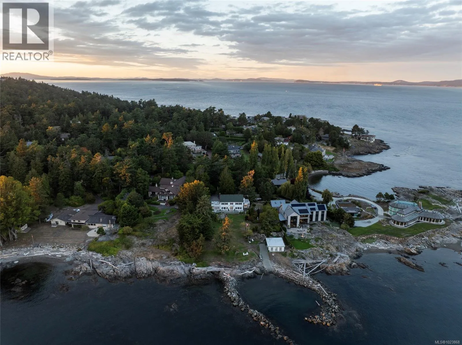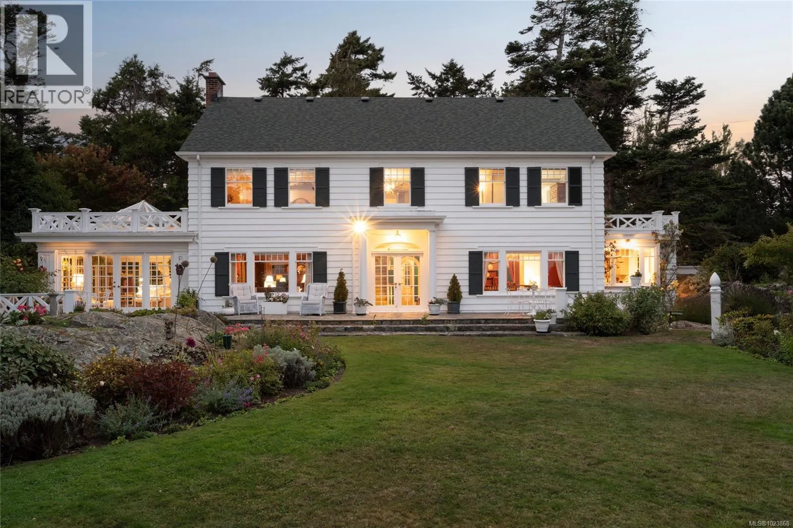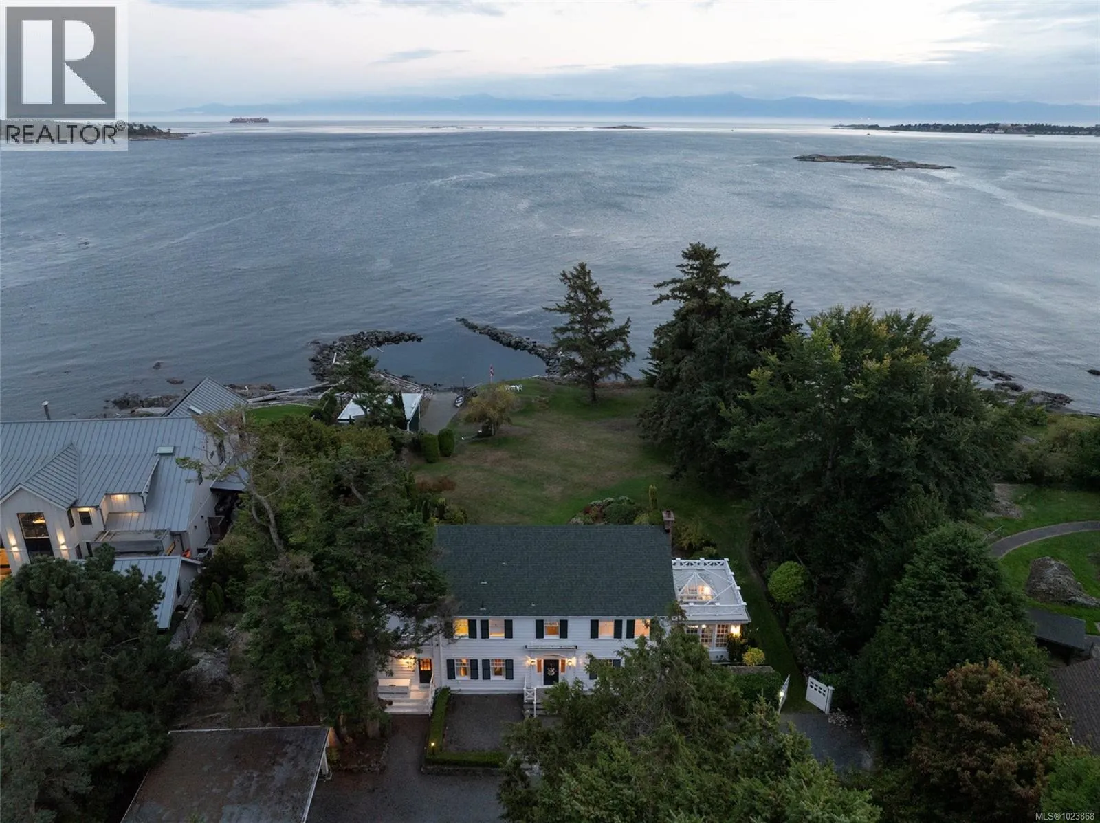 A rare offering of timeless elegance and coastal luxury, this expansive south-facing waterfront estate in prestigious Ten Mile Point is a true sanctuary of beauty, privacy, and refined living. Situated on just over 1.3 acres of manicured grounds, the property enjoys panoramic views of Chatham, Discovery, and the Chain Islands, with complete seclusion in all directions. Formal gardens, originally designed in the 1930s, have been lovingly maintained and were featured in the Conservatory of Musicâs 2025 Annual Garden Tourâan enduring testament to the estateâs charm and national recognition. The grand main residence offers sun-filled principal rooms with effortless flow between the living and dining areasâideal for elegant entertaining. French doors open onto oceanfront patios, while every room captures uninterrupted views and the warmth of the sun. A cookâs dream kitchen anchors the home, complemented by a spectacular glass conservatory that brings the outdoors in with grace and style. Three spacious bedrooms offer peace and comfort, while a charming guest cottageâwith kitchenette, 1.5 baths, and a loft bedroomâserves perfectly as an office, studio, or retreat. A fenced vegetable garden with greenhouse invites quiet reflection and a connection to nature. Water features meander through landscaped paths, enhancing the peaceful atmosphere. The large boathouse is more than just practicalâit has played host to countless summer dinner parties, wedding rehearsals, and musical garden soirées on the lawn. Private beach access and a full deer-fenced perimeter ensure both security and tranquility. Written up in the press for its unique blend of heritage, charm, and elegance, this is one of the largest, most breathtaking waterfront estates on the market today. A rare opportunity to own a legacy property in Victoriaâs most prestigious coastal enclave. (id:27476)