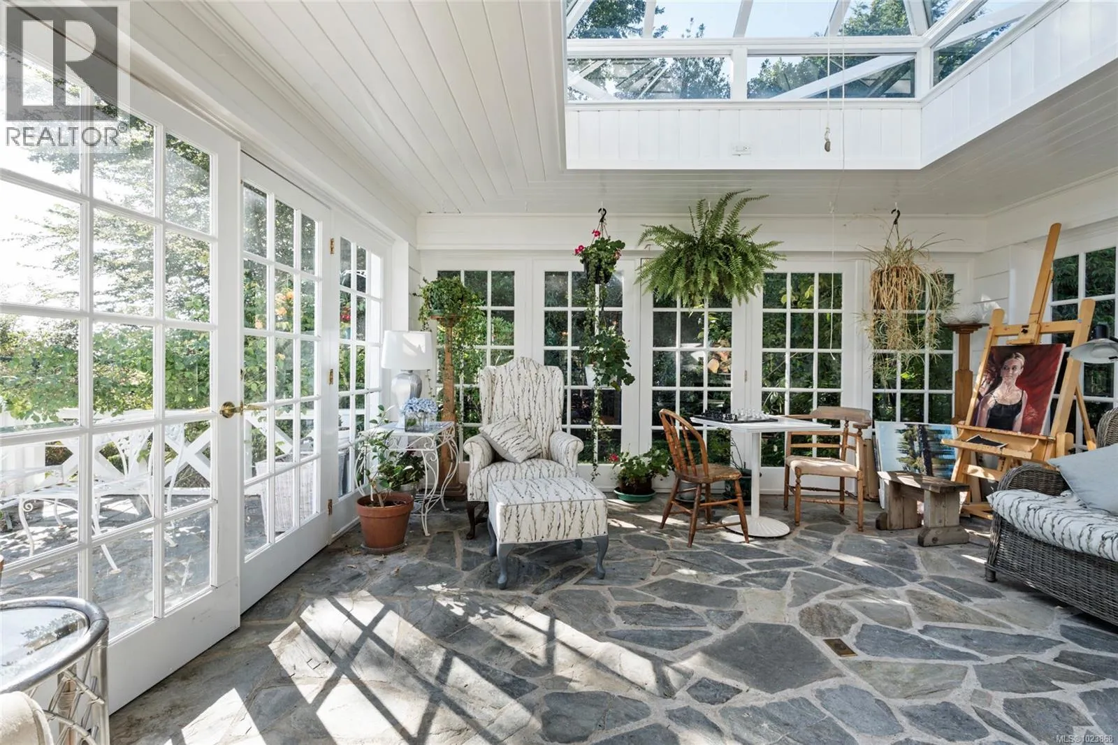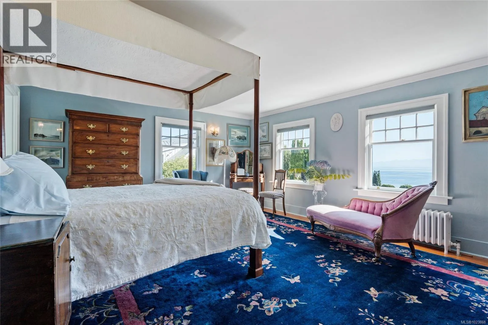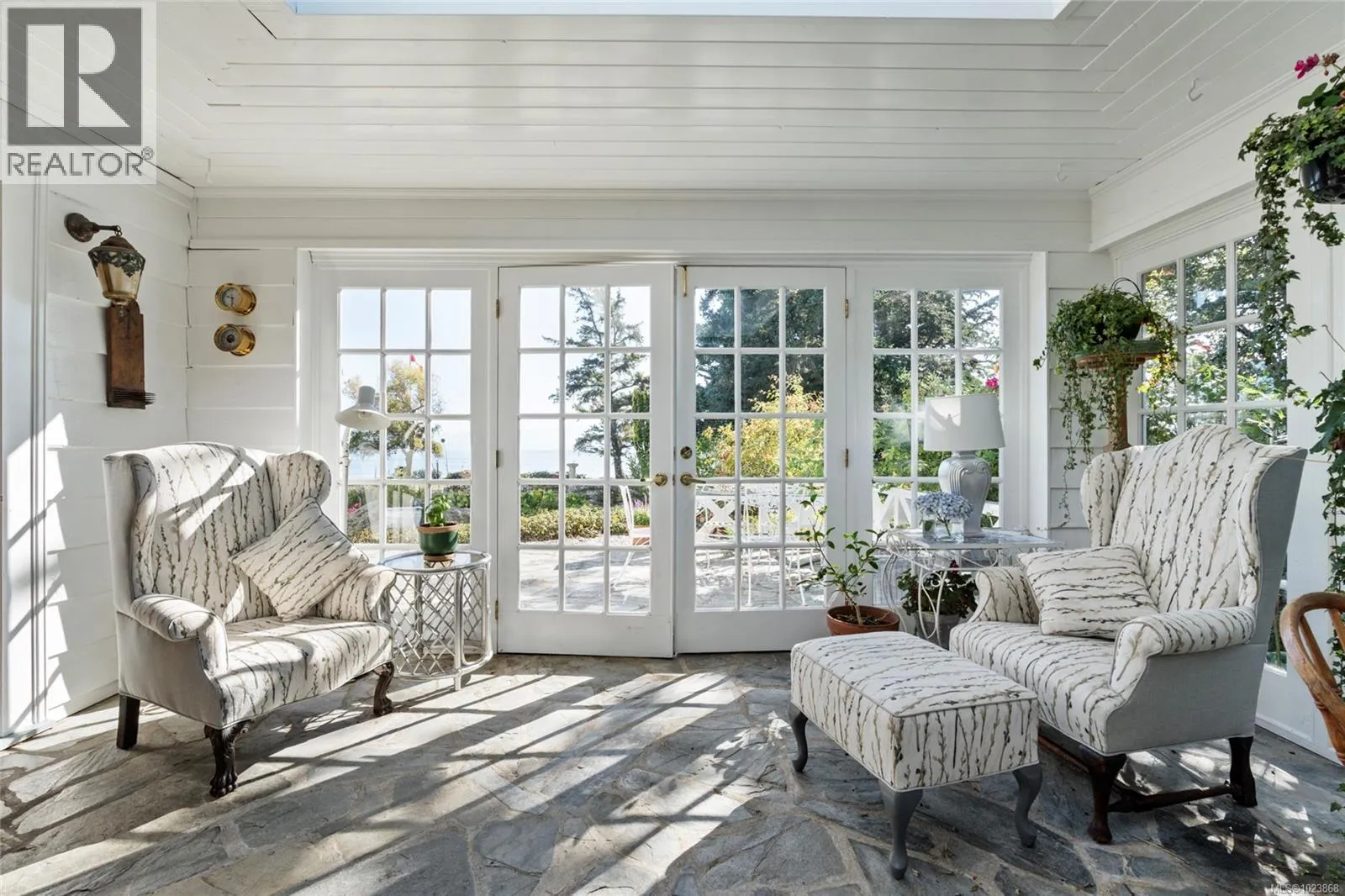 A rare offering of timeless elegance and coastal luxury, this expansive south-facing waterfront estate in prestigious Ten Mile Point is a true sanctuary of beauty, privacy, and refined living. Situated on just over 1.3 acres of manicured grounds, the property enjoys panoramic views of Chatham, Discovery, and the Chain Islands, with complete seclusion in all directions. Formal gardens, originally designed in the 1930s, have been lovingly maintained and were featured in the Conservatory of Musicâs 2025 Annual Garden Tourâan enduring testament to the estateâs charm and national recognition. The grand main residence offers sun-filled principal rooms with effortless flow between the living and dining areasâideal for elegant entertaining. French doors open onto oceanfront patios, while every room captures uninterrupted views and the warmth of the sun. A cookâs dream kitchen anchors the home, complemented by a spectacular glass conservatory that brings the outdoors in with grace and style. Three spacious bedrooms offer peace and comfort, while a charming guest cottageâwith kitchenette, 1.5 baths, and a loft bedroomâserves perfectly as an office, studio, or retreat. A fenced vegetable garden with greenhouse invites quiet reflection and a connection to nature. Water features meander through landscaped paths, enhancing the peaceful atmosphere. The large boathouse is more than just practicalâit has played host to countless summer dinner parties, wedding rehearsals, and musical garden soirées on the lawn. Private beach access and a full deer-fenced perimeter ensure both security and tranquility. Written up in the press for its unique blend of heritage, charm, and elegance, this is one of the largest, most breathtaking waterfront estates on the market today. A rare opportunity to own a legacy property in Victoriaâs most prestigious coastal enclave. (id:27476)