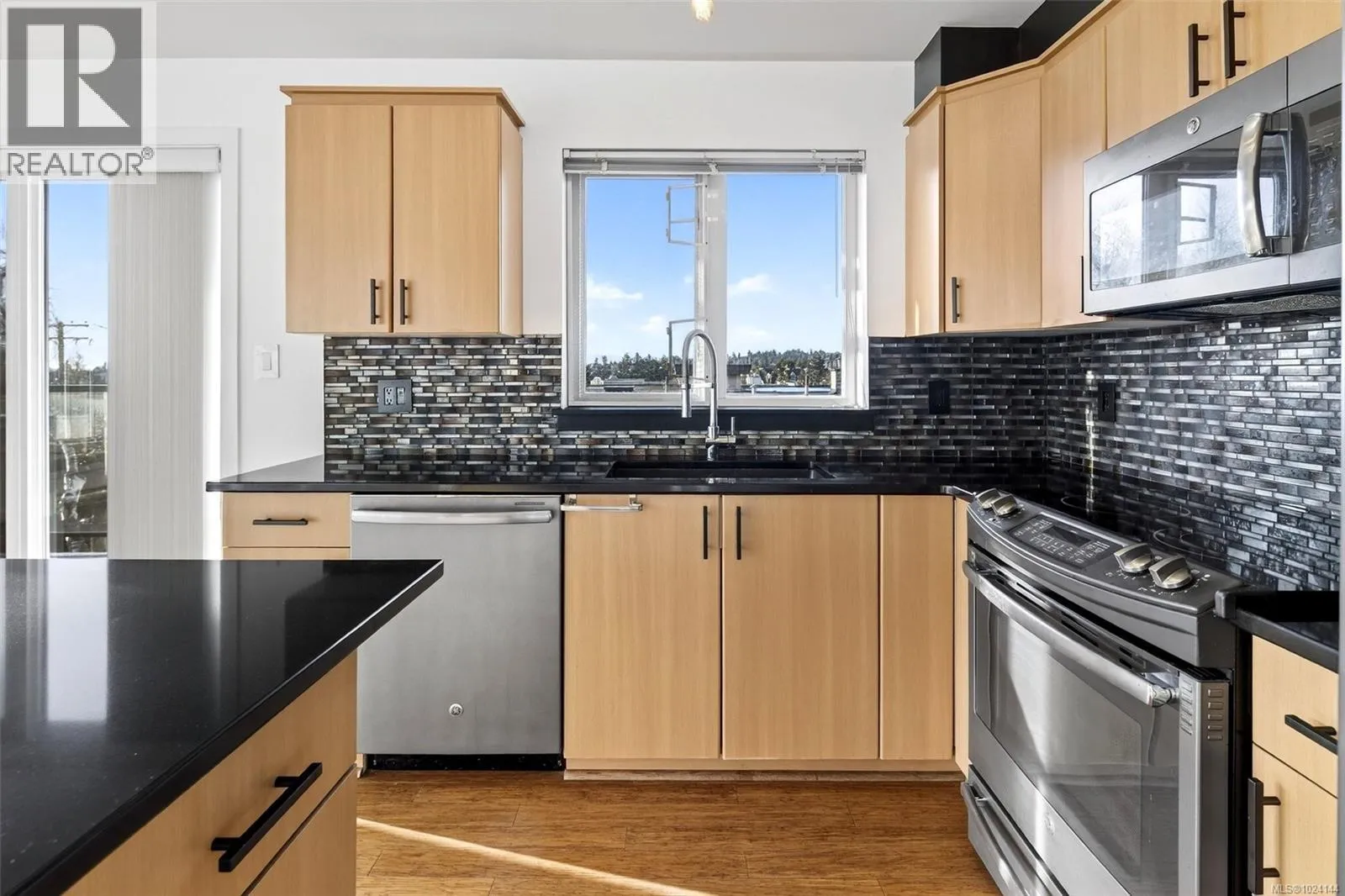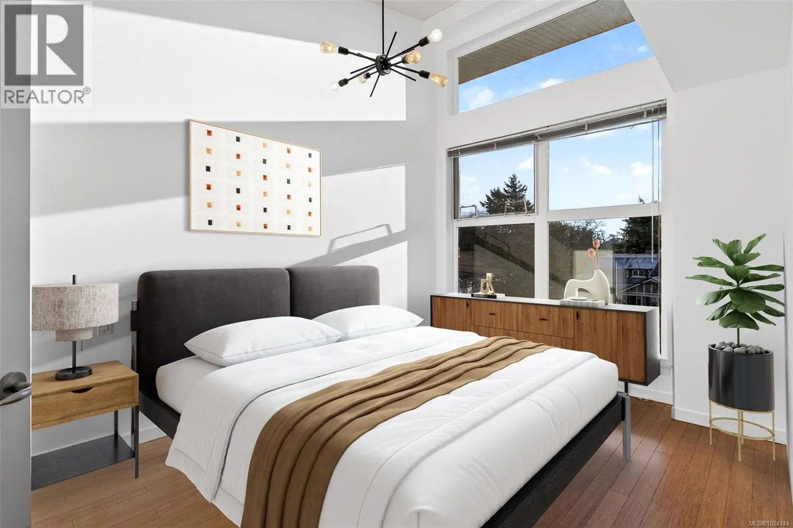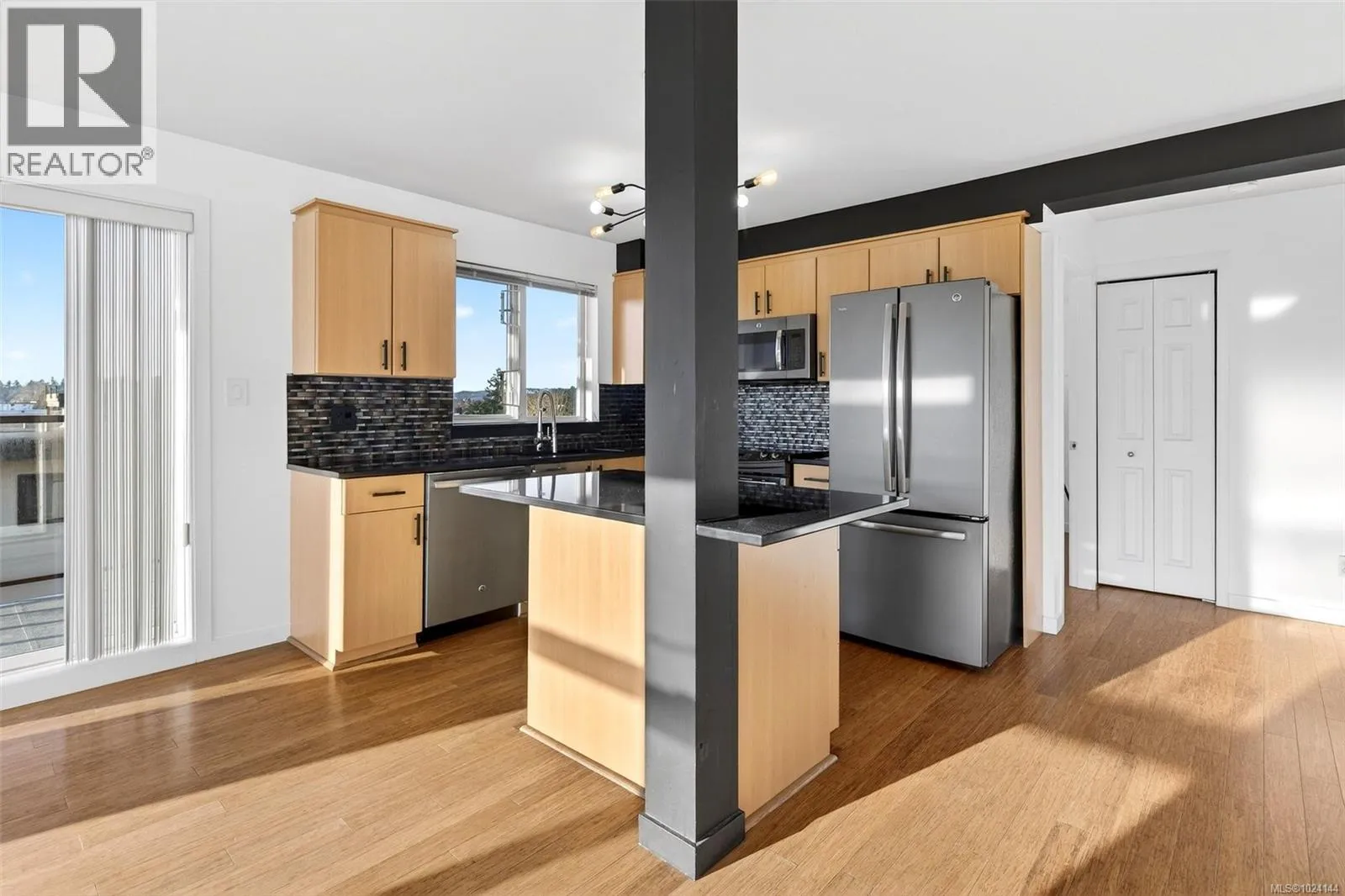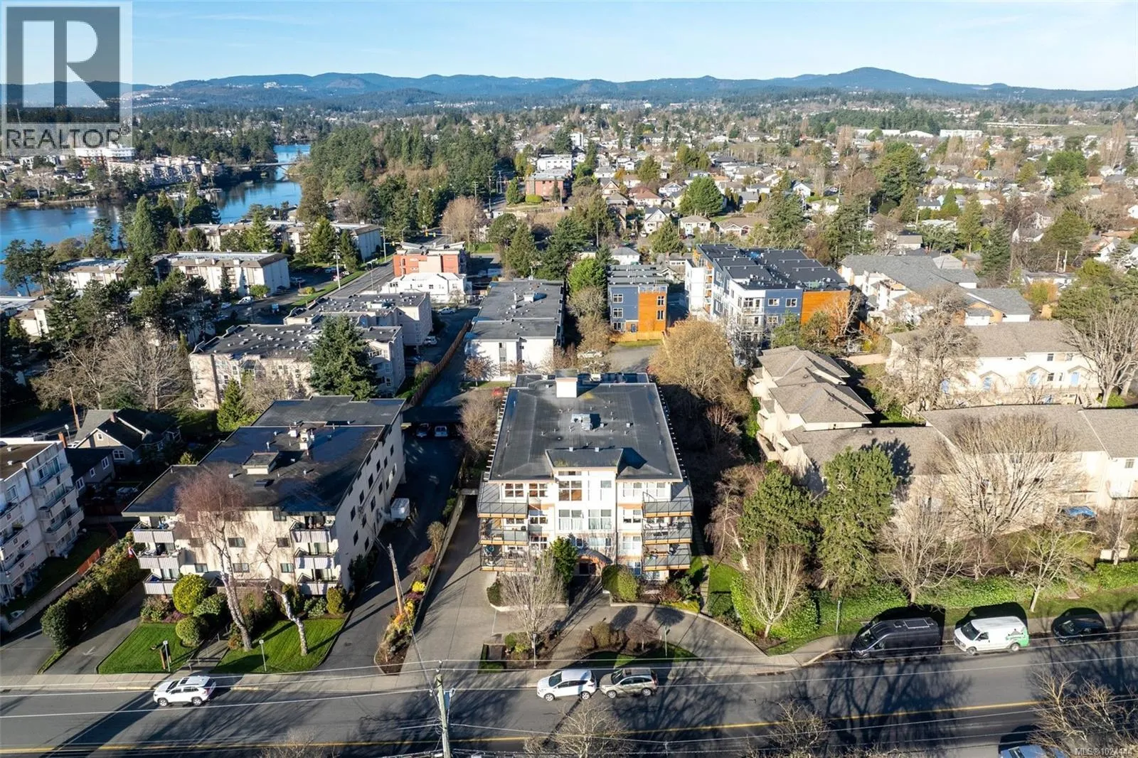 Welcome to this bright top floor, southeast corner suite in Harriet Gardens. This well designed 2-bedroom, 2-bath condo offers a comfortable living space with excellent natural light throughout the day. The open concept living and dining areas flow seamlessly to a generous wrap around balcony, where sweeping views of the Olympic Mountains and Sooke Foothills create the perfect backdrop for your morning coffee or evening sunsets. The primary bedroom features a walk-in closet, vaulted ceilings, and ensuite, while the versatile second bedroom works well for kids, guests, or home office. Secure underground parking, separate storage, bike storage, rooftop patio, and a professionally managed strata provide convenience and peace of mind. Centrally located in the Gorge neighbourhood near shopping, transit, the Gorge Waterway, and the Galloping Goose Trail. With easy access to downtown Victoria, this top-floor corner home offers exceptional value, and privacy all in a sought after location. (id:27476)