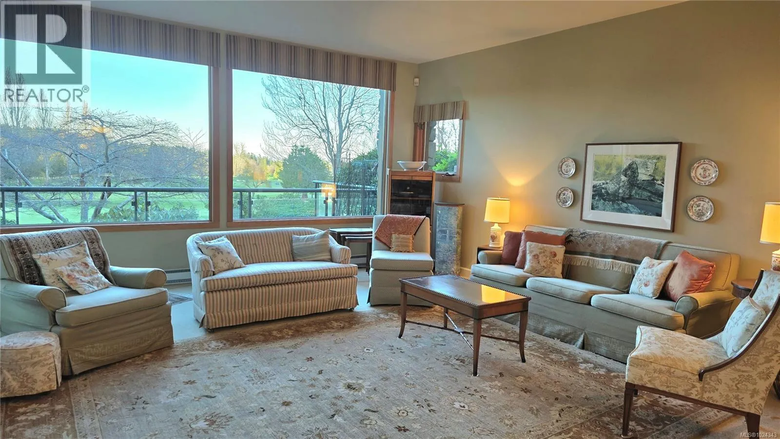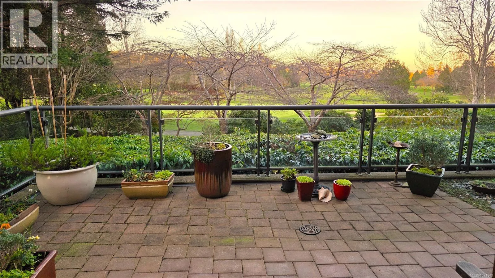 Nestled at the edge of the Cordova Bay Golf Course. Views of the fairways & the feel of a townhouse, this refined residence features exterior access, an expansive private patio in an exceptionally quiet setting. Oversized windows thoughtfully positioned to showcase these striking vistas, invite lots of natural light. Crafted by one of Victoriaâs premier builders, the west coastâinspired building is elegantly clad in wood and stone, blending seamlessly with its natural surroundings. Just steps away from the picturesque Mattickâs Farm, Adrienneâs Tea & the Red Barn Market. Fabulous floor plan: 2 bedrooms & excellent separation for privacy. Oversized dining room against a dramatic backdrop & a beautifully appointed kitchen with granite countertops. The family room extends from the kitchen & opens onto the patio overlooking the golf course. Exceptional offering that delivers world-class living in one of Victoriaâs most sought-after settings. Patio units do not come up for sale very often! (id:27476)