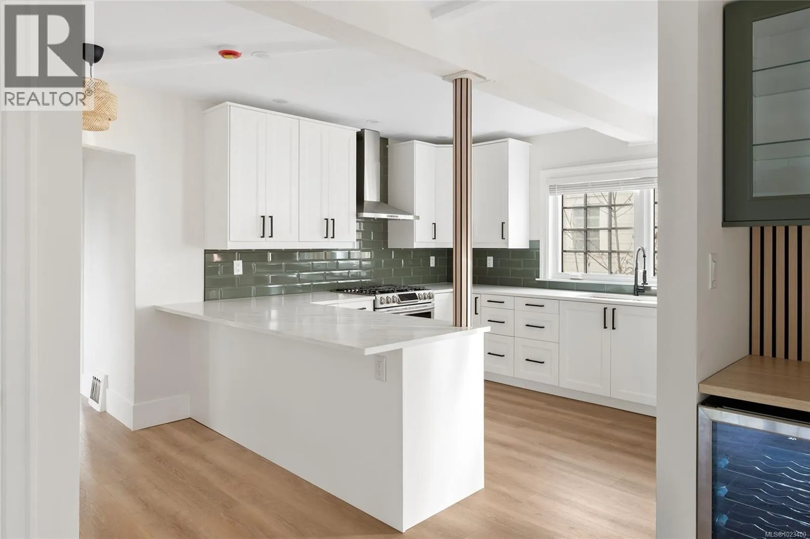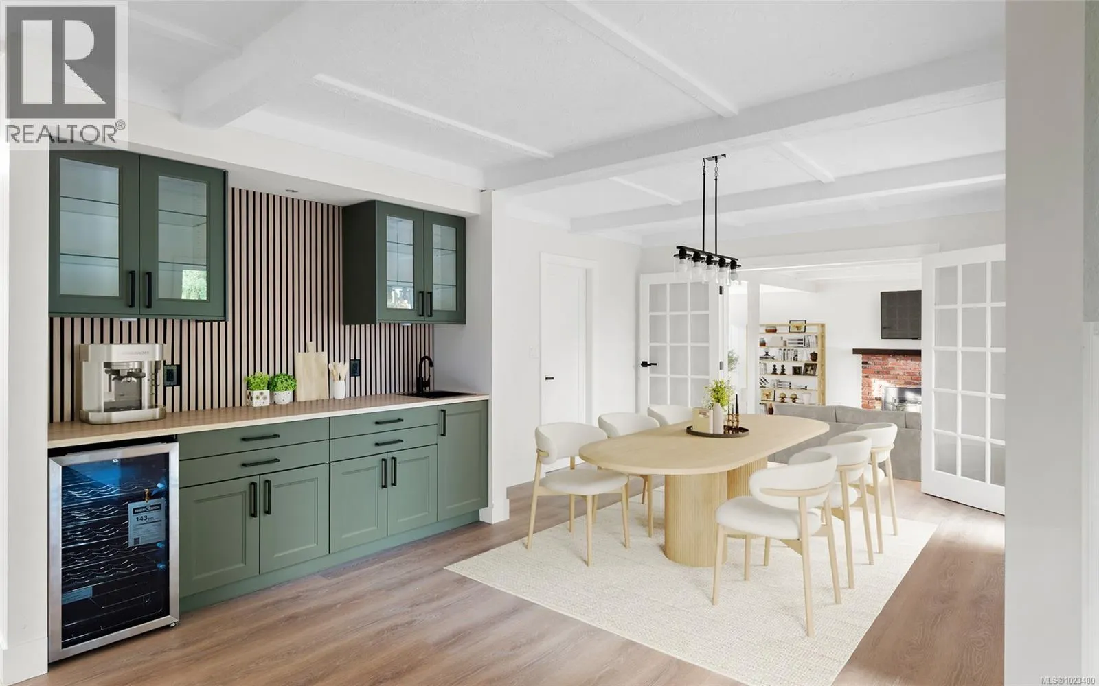 Exceptional character home boasting a luxurious modern renovation while still embodying its true character. Situated in the heart of Cordova Bay & privately nestled on an 11,081 sq/ft lot; this 4,000 sq/ft residence offers 4Beds+Den & 3Baths w/a flexible layout for any lifestyle. The main features an exquisite remodeled kitchen & walk-in pantry seamlessly flowing to a beautiful built-in wet bar & DR. From there step into your opened up character LR accented w/beams, HW flrs, built-ins & FP. Or on those long summer nights, easily transition out to your large deck & fenced yard w/hot tub-perfect for entertaining. A home office, south-facing patio w/ocean views & spacious FR w/gas FP complete the main. Up find an executive primary w/11â vaulted ceilings, dual walk-ins & luxury ensuite, 3 additional BRs & full bath. The lower offers a large rec room & flex space. Updates: flooring, paint, fixtures, newer windows, drains & 2 heat pumps. A perfect blend of timeless charm & modern elegance! (id:27476)