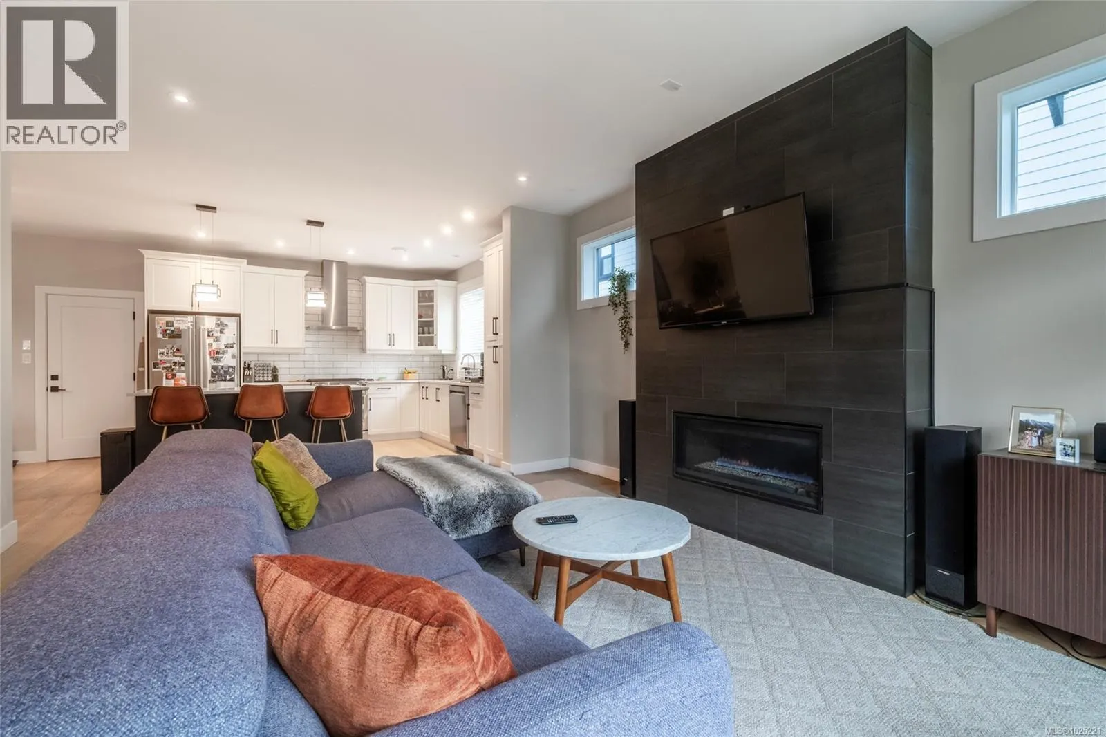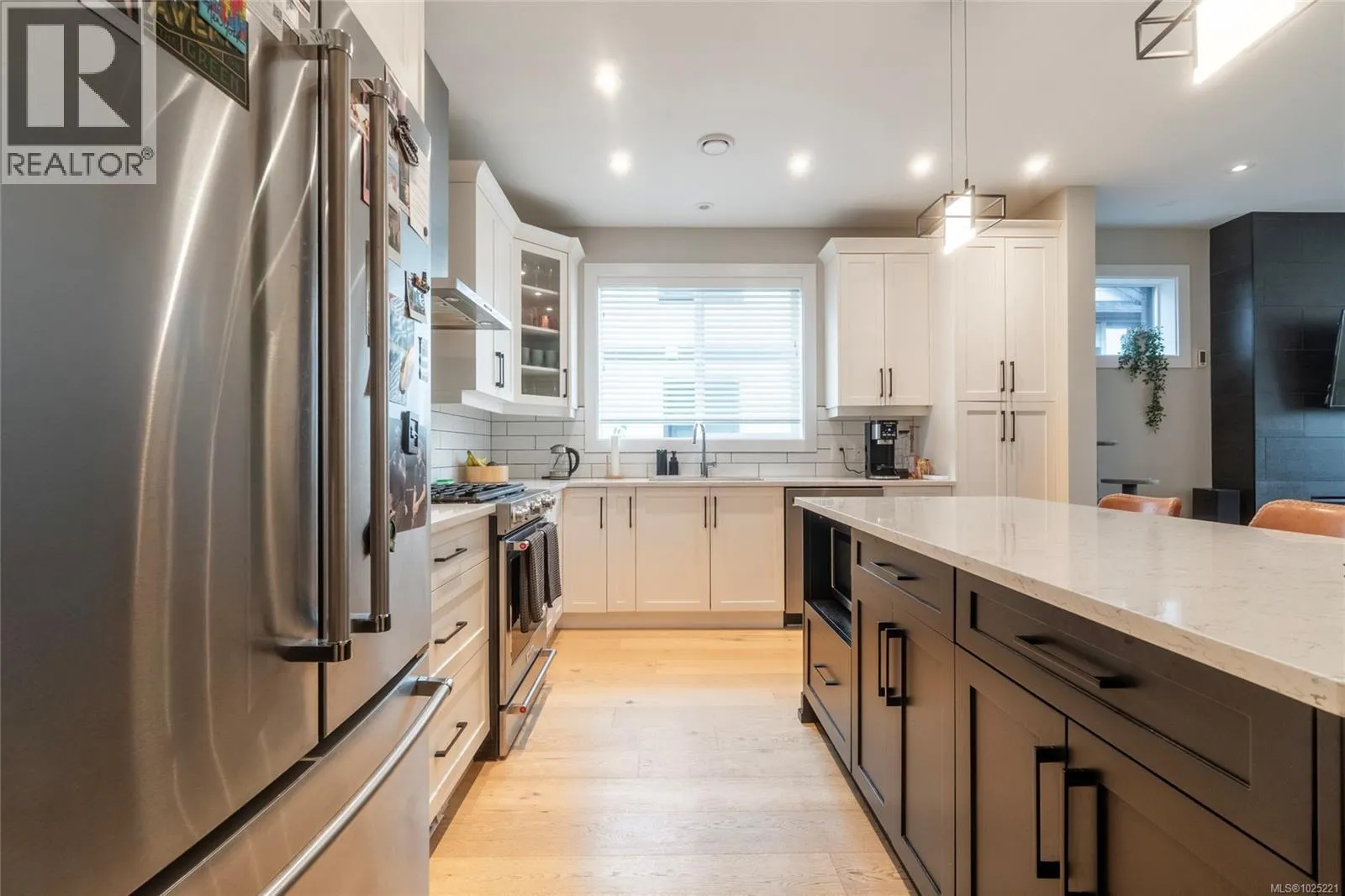Welcome to 4247 Pullet Pl, located in the sought-after High Quadra neighborhood sits this 4 BED 4 BATH (including a legal 1 BED suite) home spanning 2,050 Sq Ft. The main floor features 9â ceilings, engineered hardwood flooring, a grand tiled gas fireplace, and oversized windows filling the space with natural light. The kitchen features SS appliances, quartz countertops and spacious island with amble cabinetry for storage, while separated dining area makes for the perfect spot for a dinner party. French doors open up to a partially covered patio area and fenced private backyard. Retreat to the primary suite with generous sized walk-in closet and ensuite bathroom with oversized shower. 2 additional guest bedrooms, laundry room and 1-bedroom suite (above garage) complete the upper level. Additional features include: LED lighting, green-gold building standard, heat pump and tankless gas hot water. (id:27476)