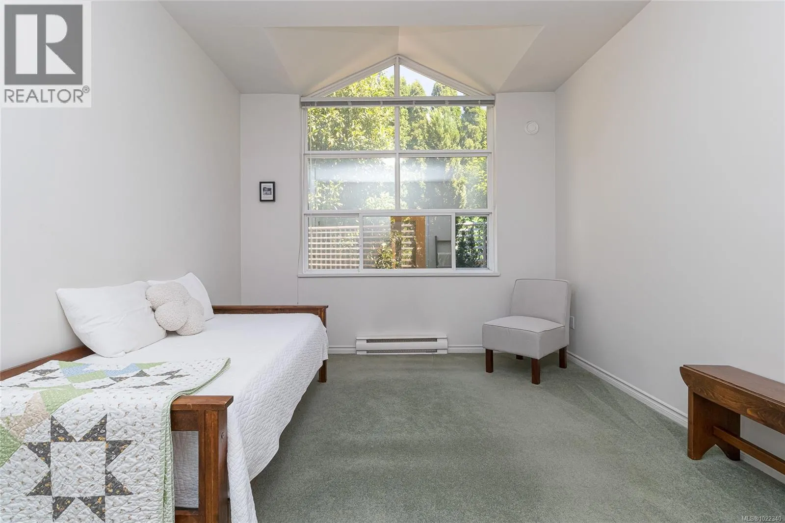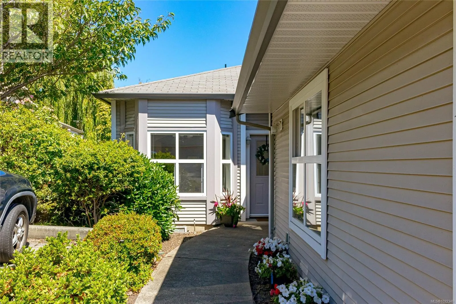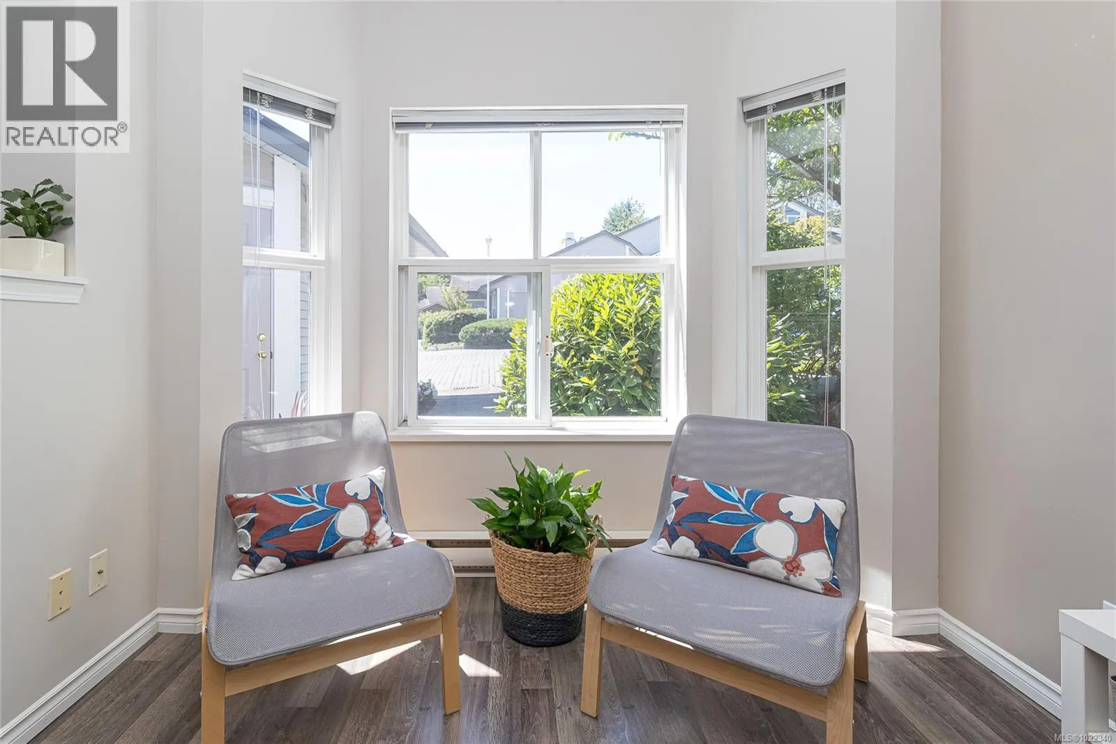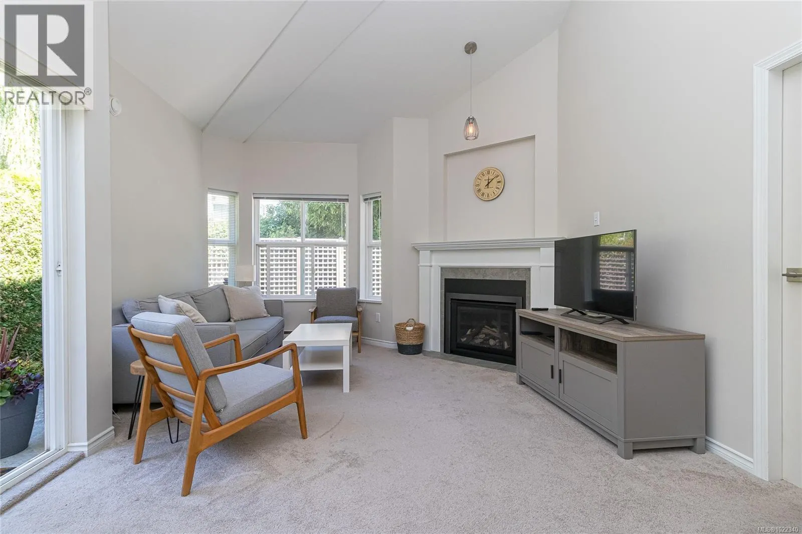 Beautiful 2 BR, 2 bath townhome in a quiet, well-managed complex, ideally located near UVic, shopping, & transit! This bright, 1188 sq ft, semi-detached home offers one level living & a thoughtfully designed layout with stunning vaulted ceilings & large windows to let in the natural light, plus a new cozy gas fireplace in the living room! The open concept living & dining areas flow seamlessly to a fenced, private patio & garden. The large primary BR has oversize windows, a walk-in closet & 3-piece ensuite. The 2nd BR is nicely located away from the primary BR for ultimate privacy, near the main bathroom. The kitchen is bright & sunny, with a functional layout that any cook would appreciate. There is a gorgeous sitting room that could be used as an office or den. Single car garage (new garage door opener!) & an additional parking space beside the home, plus transit is at your doorstep! Low strata fees in a well managed, pet friendly complex with lovely neighbours! (id:27476)