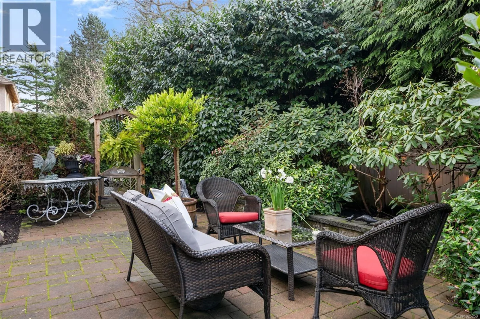 Downsizing never looked so good. Sophisticated level-entry townhouse with seaside-cottage feel in exceptional location. The exclusive Glen Undine complex is steps from Cadboro Bay Village & the beloved Cadboro-Gyro park and beach. Thoughtfully designed layout invites indoor/outdoor entertaining & relaxation, flow-through living/dining, feature gas fireplace, large windows, built-in storage & level access to utterly charming SW-facing patio garden. Sunny, remodelled kitchen has quartz counters, generous fitted drawers & cupboards, instant hot water faucet & Fisher & Paykel appliances; sep laundry room with sink; spacious bedroom with walk-in closet and ensuite. Upstairs the easy living continues: primary bedroom with walk-in closet & lush treetop views; gorgeous spa bathroom, bedroom/office & flex room. Very private end unit, enclosed garage & storage plus bonus outdoor parking spot. Updates by current owner include retractable window screens, new hot-water heater & garden enhancements. (id:27476)