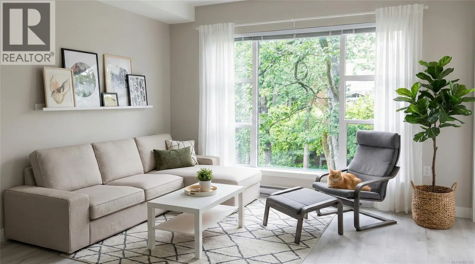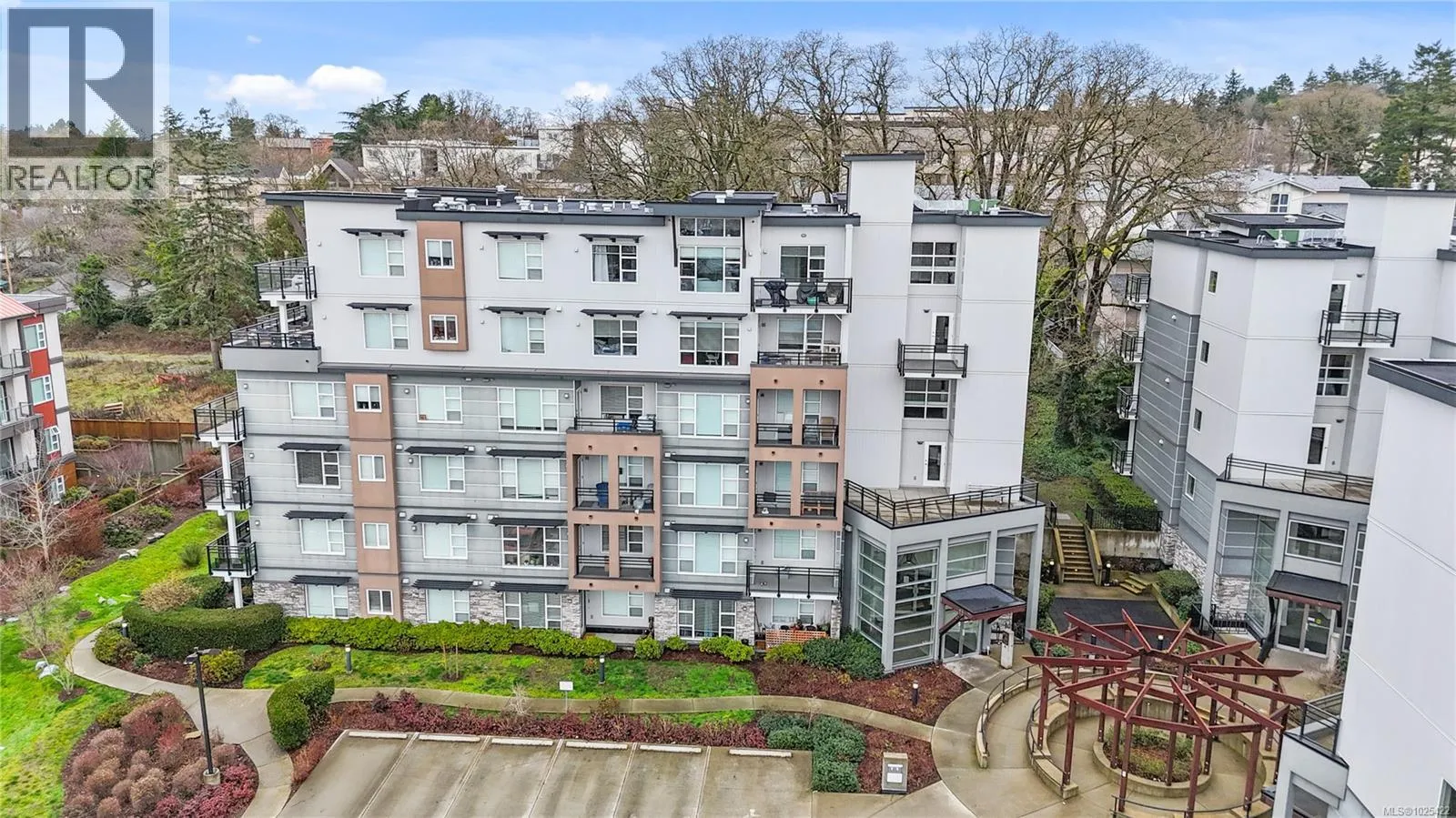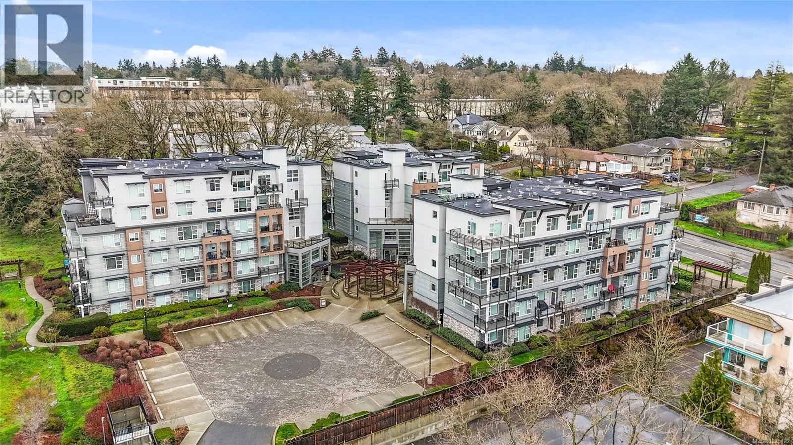 Like new top-floor 2 bed, 2 bath condo in the sought-after Shire complex. Bright open-concept living and dining filled with natural light, overlooking a protected Garry Oak meadow on the quiet side of the building. Modern kitchen with quartz counters, island, stainless steel appliances, slow-close cabinetry, and excellent storage. Both bathrooms feature heated tile floors, plus convenient in-suite laundry. Pet-friendly building. Secure underground parking, separate storage, and bike locker included. Centrally located minutes to downtown, Mayfair Shopping Centre, Thrifty Foods, University of Victoria, and Camosun College. Exceptional value in a prime location. (id:27476)