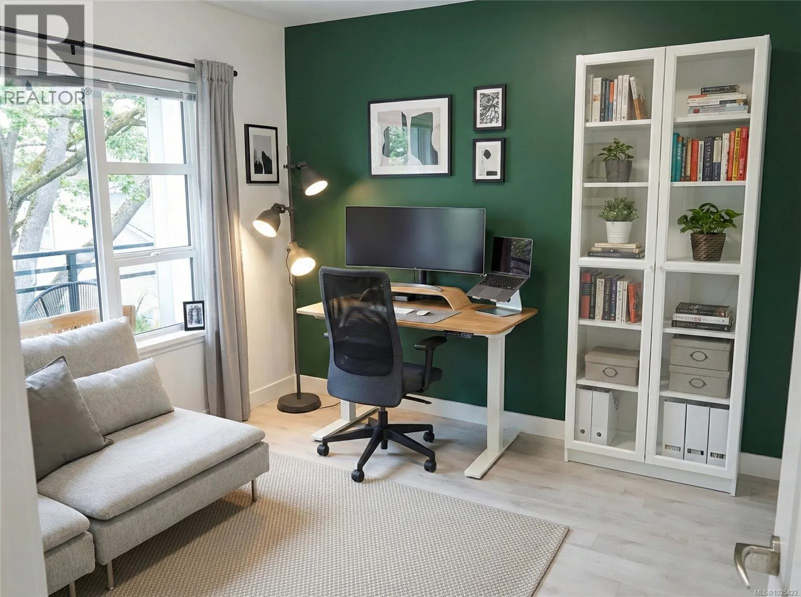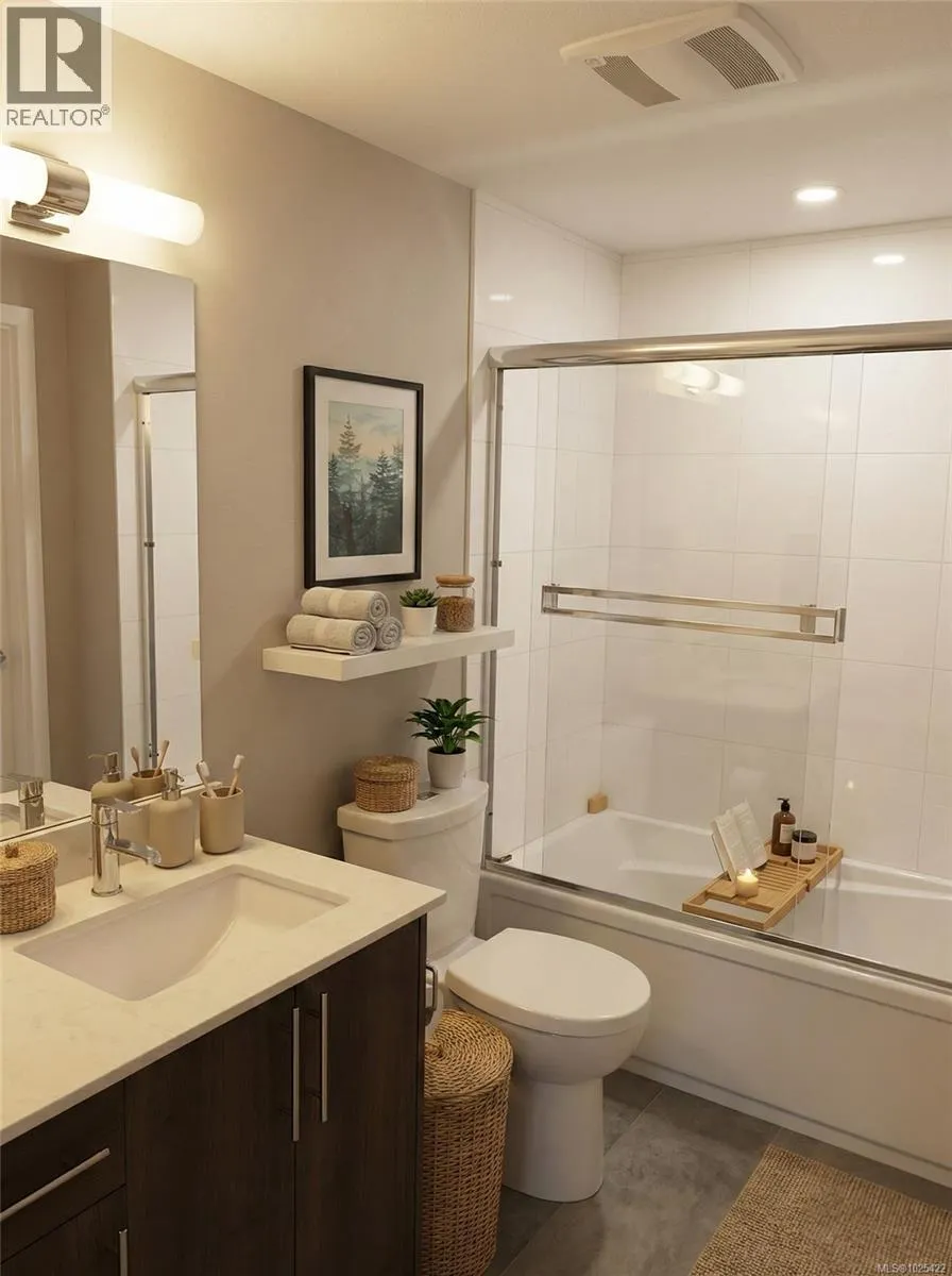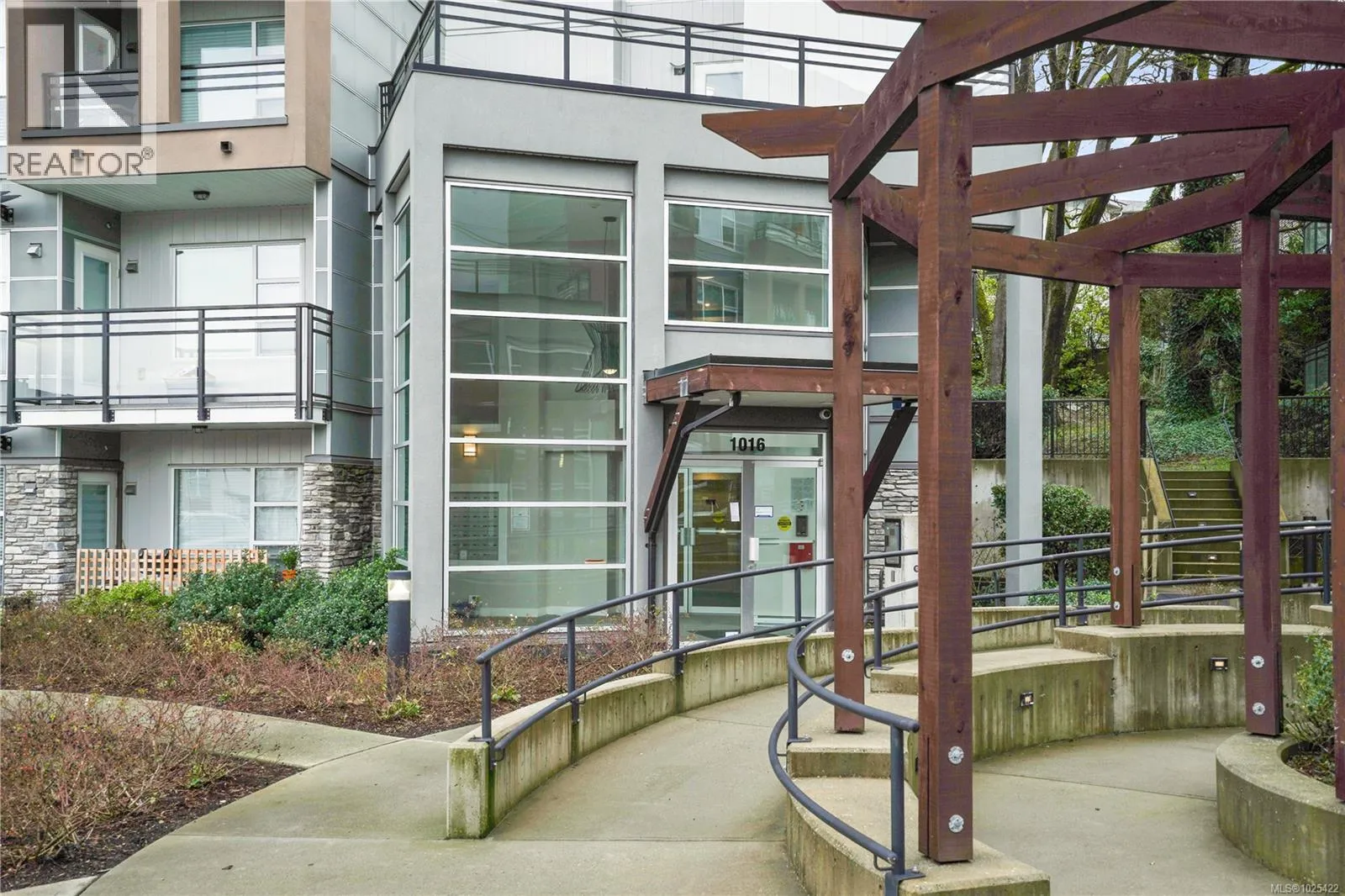 Like new top-floor 2 bed, 2 bath condo in the sought-after Shire complex. Bright open-concept living and dining filled with natural light, overlooking a protected Garry Oak meadow on the quiet side of the building. Modern kitchen with quartz counters, island, stainless steel appliances, slow-close cabinetry, and excellent storage. Both bathrooms feature heated tile floors, plus convenient in-suite laundry. Pet-friendly building. Secure underground parking, separate storage, and bike locker included. Centrally located minutes to downtown, Mayfair Shopping Centre, Thrifty Foods, University of Victoria, and Camosun College. Exceptional value in a prime location. (id:27476)