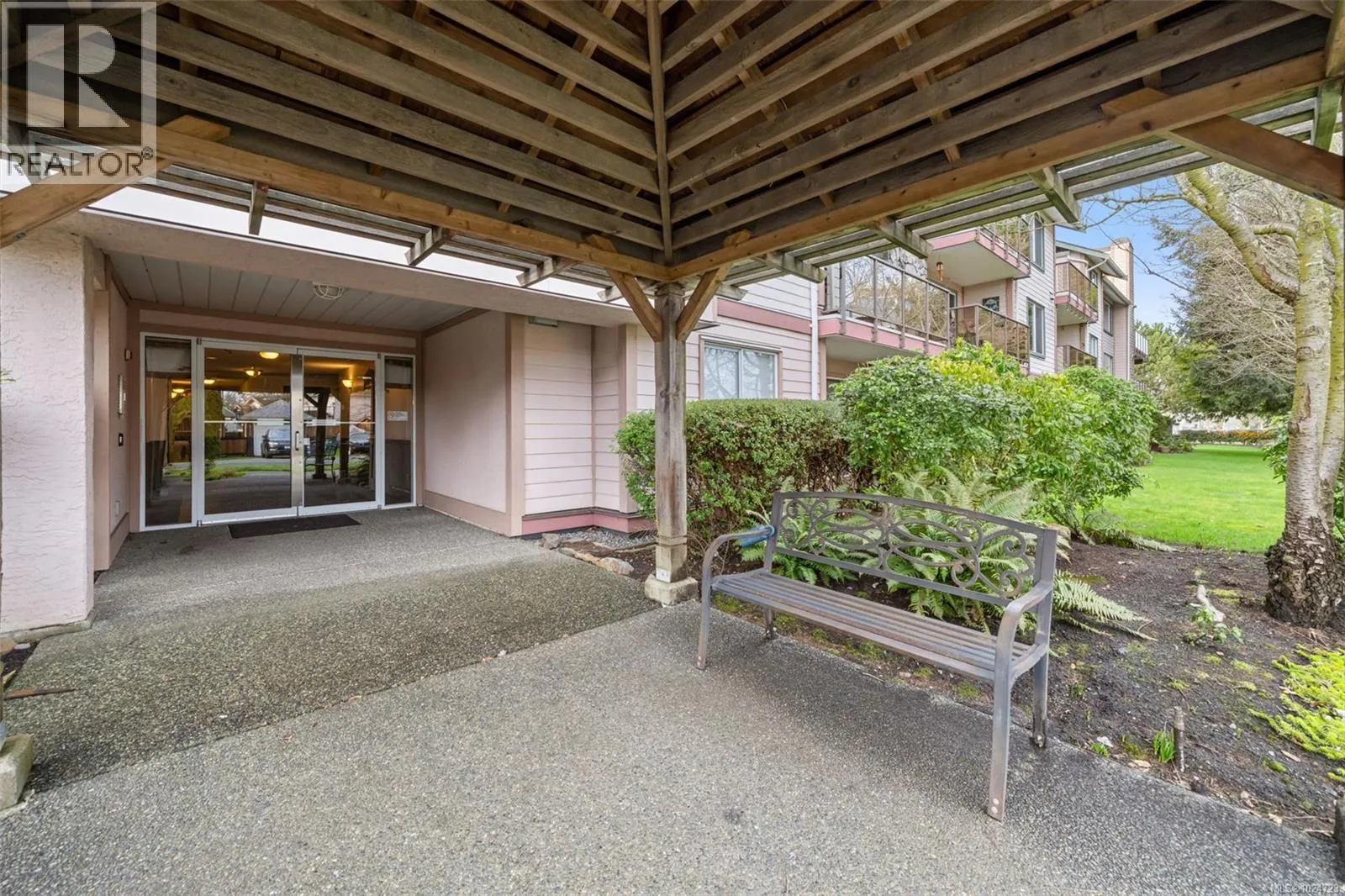 Welcome home to this large, bright two bedroom suite offering an easy, low maintenance lifestyle in a convenient central location. Laminate flooring runs throughout, and full size in-suite laundry adds everyday comfort. The entry opens to a spacious living room with a cozy gas fireplace and an adjoining dining area that easily hosts friends and family. The kitchen includes plenty of workspace plus a casual eating area for morning coffee. Retreat to the generous primary bedroom featuring a walk-in closet and direct access to the full bathroom. Outdoors, enjoy a large west facing patio that looks onto a quiet, private rear area of the building, ideal for relaxing evenings and barbecues. Minutes to Uptown, the Galloping Goose and Lochside trails, and transit right nearby for simple commuting. (id:27476)