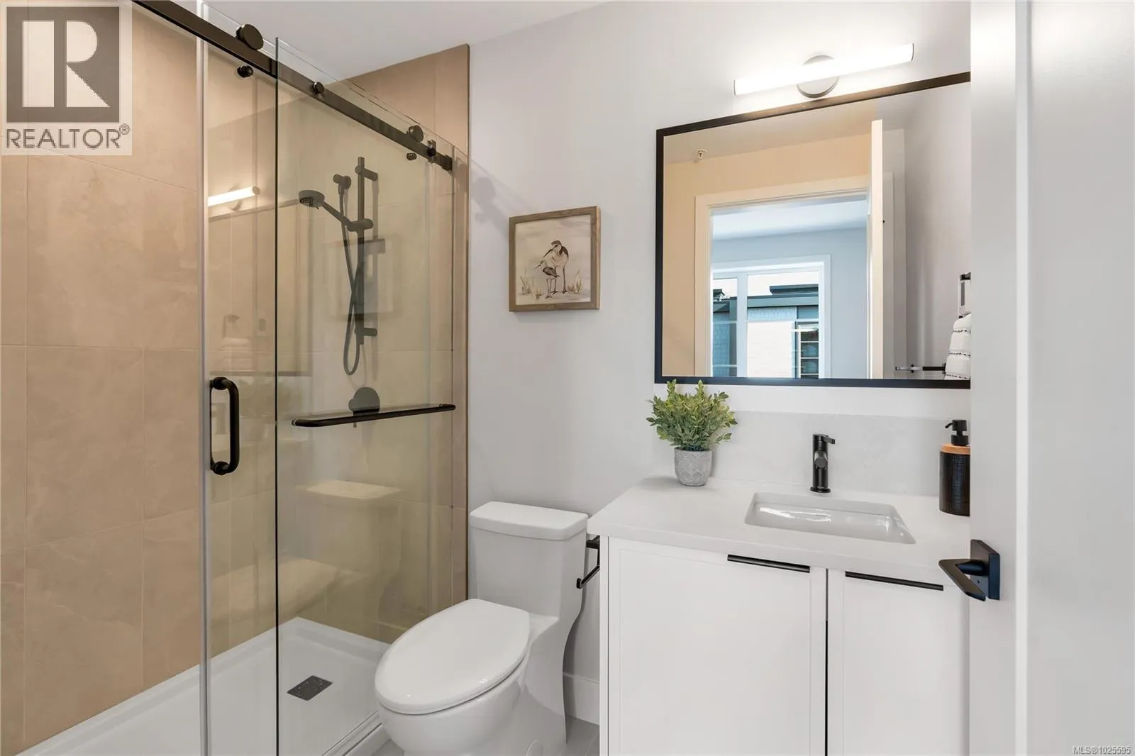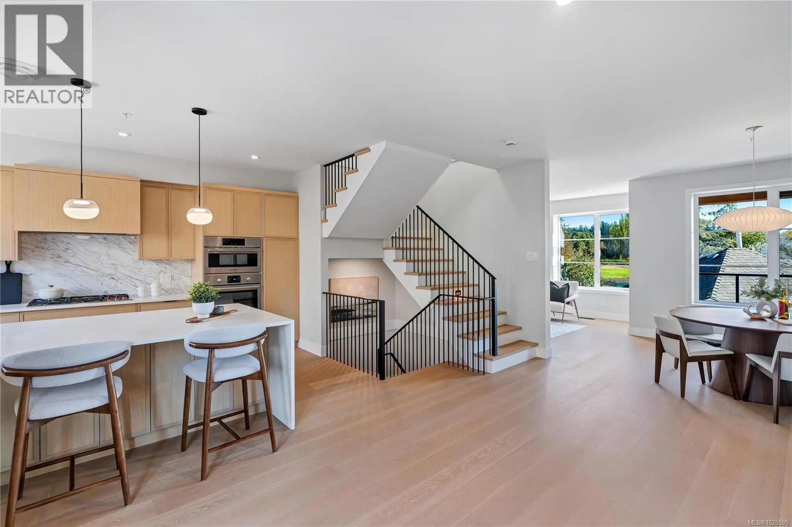 Steps from the sand & surf in friendly Cadboro Bay Village is The Osprey. 14 modern townhomes designed for living life to the fullest in one of the most scenic and walkable neighbourhoods in Greater Victoria. Each distinct floor plan offers an expansive living room, dining room and kitchen on the main level & two large top-floor bedrooms with views of the ocean or surrounding village. Primary bedroom boasts a large 5 pce ensuite, large walk-in closet and balcony. An additional ground floor flex room provides with closet endless opportunities for guest space plus private bathroom. Designed for comfort with engineered flooring throughout, large windows & custom millwork w/ designer hardware. Luxurious kitchen with European appliance package & quartz waterfall countertop. Energy efficient heat pump & gas on demand hot water. #13 features a double garage & private yard space with larger patio. Built by award winning GT Mann Contracting, MOVE-IN NOW! (id:27476)