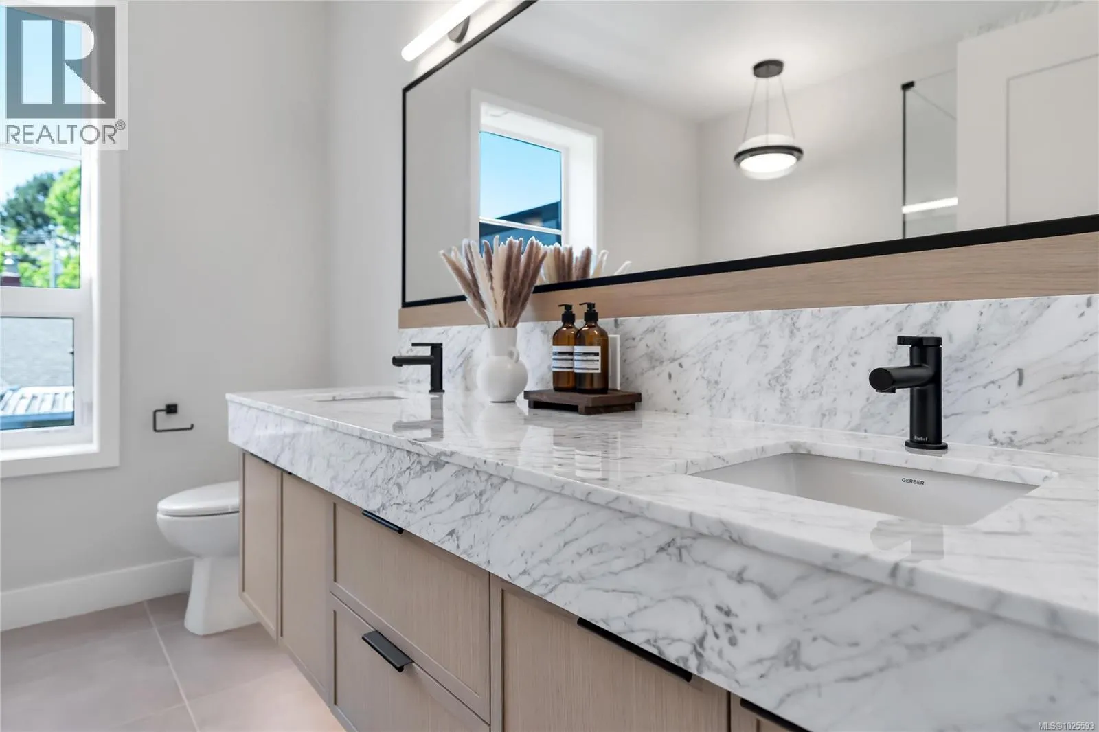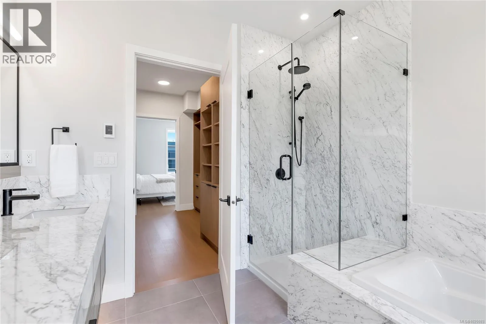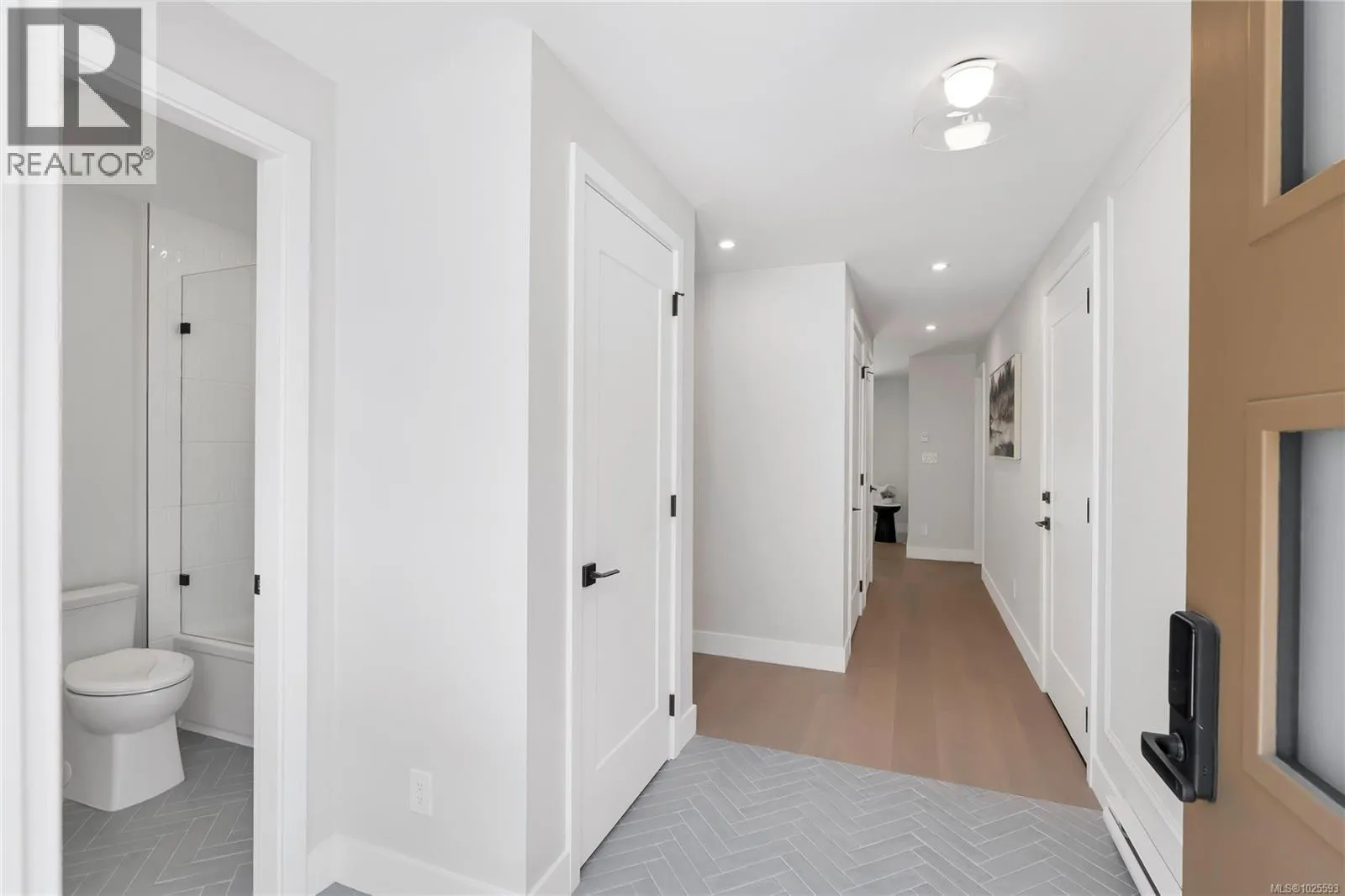 Steps from the sand and surf in friendly Cadboro Bay Village is The Osprey. 14 modern townhomes designed for living life to the fullest in one of the most scenic and walkable neighbourhoods in Greater Victoria. Each distinct floor plan offers an expansive living room, dining room and kitchen on the main level & two large top-floor bedrooms with views of the ocean or surrounding village. Primary bedroom boasts a large 5 pce ensuite, walk-in closet and balcony. An additional ground floor flex room provides endless opportunities for guest space plus private bathroom. Designed for comfort with engineered flooring throughout, large windows with automatic blinds & custom millwork w/ designer hardware. Luxurious kitchen with European appliance package & quartz waterfall countertop. Energy efficient heat pump & gas on demand hot water. #5 features an extra rec area on the ground floor, garage with driveway parking & private yard space. Built by award winning GT Mann Contracting, MOVE-IN NOW! (id:27476)