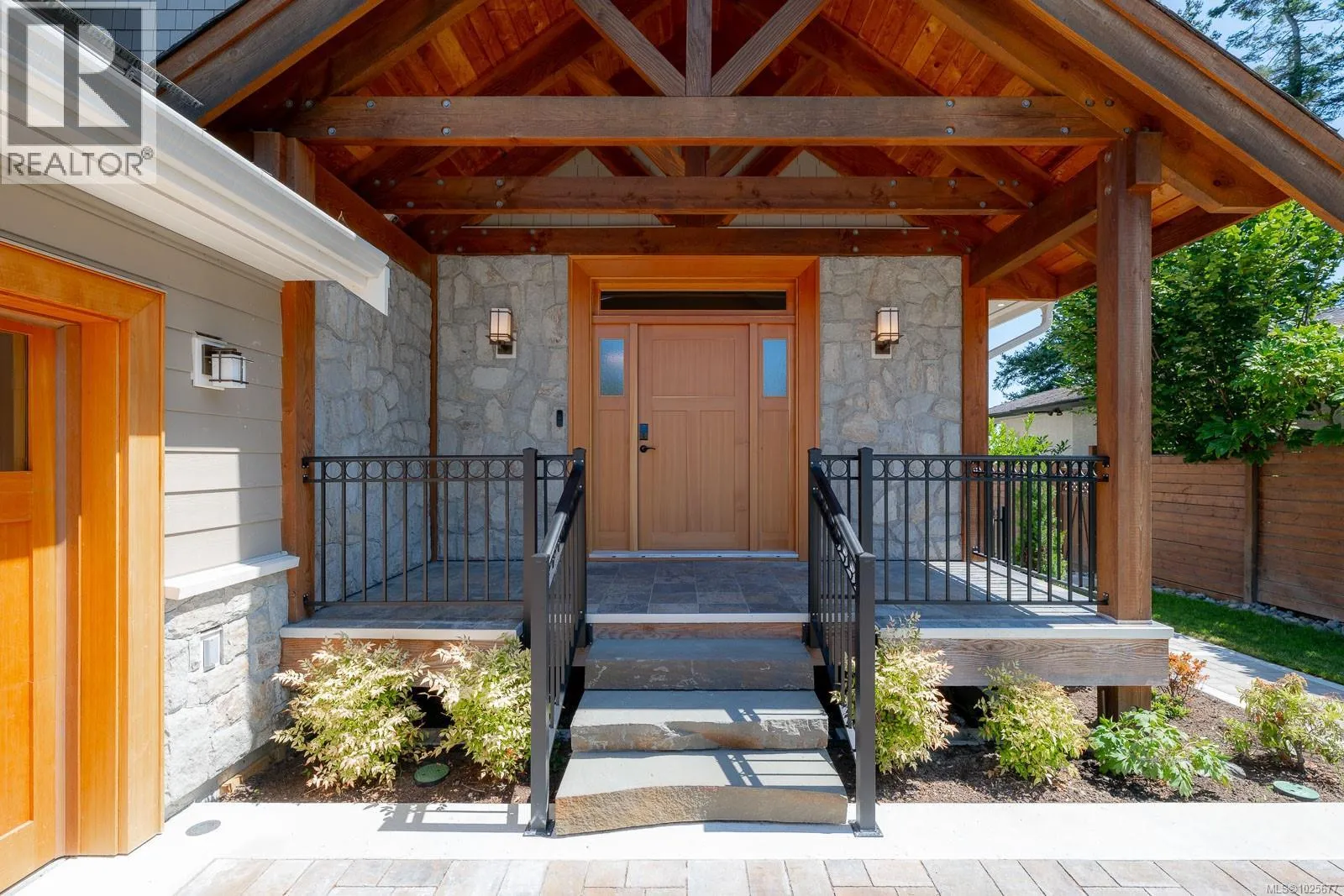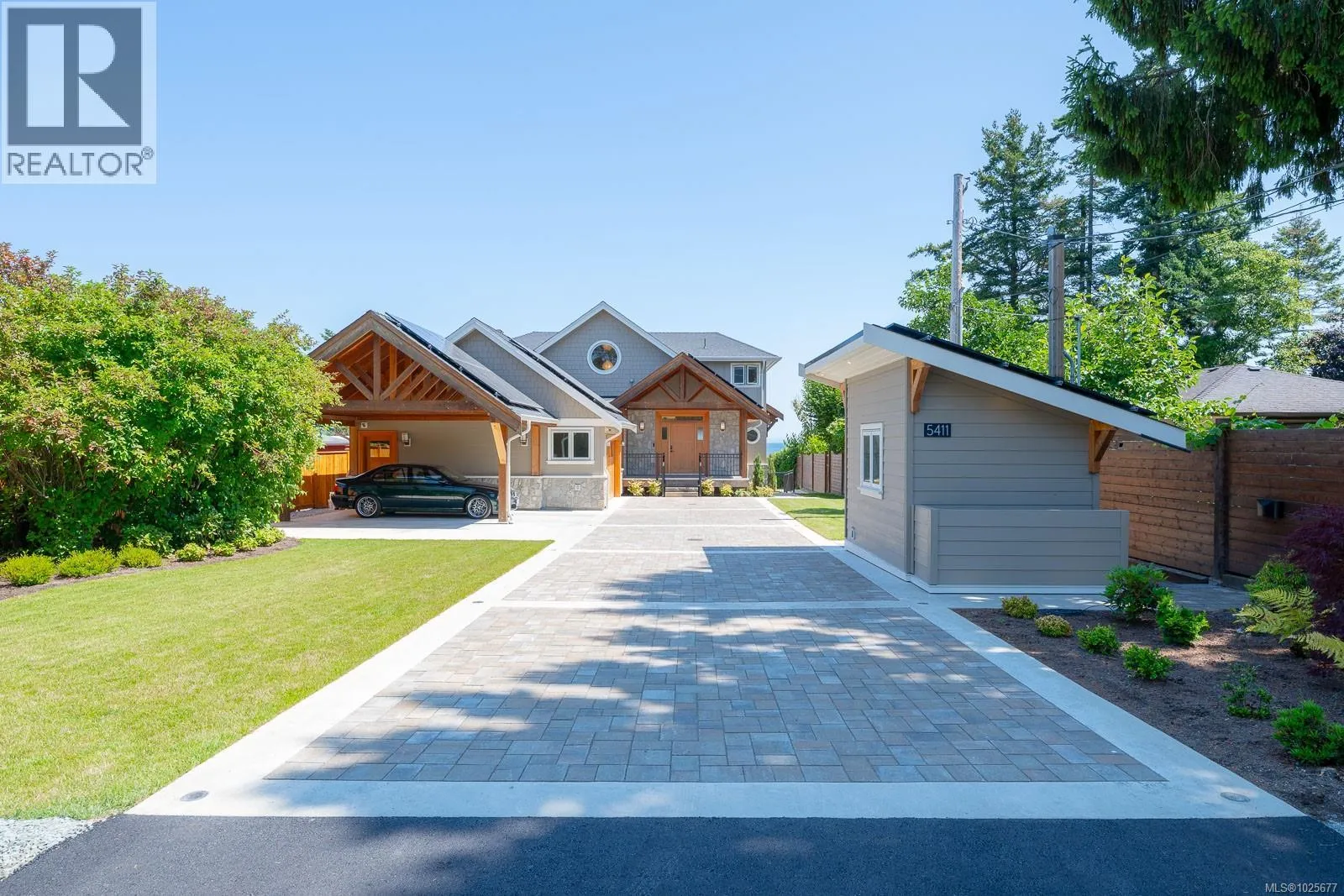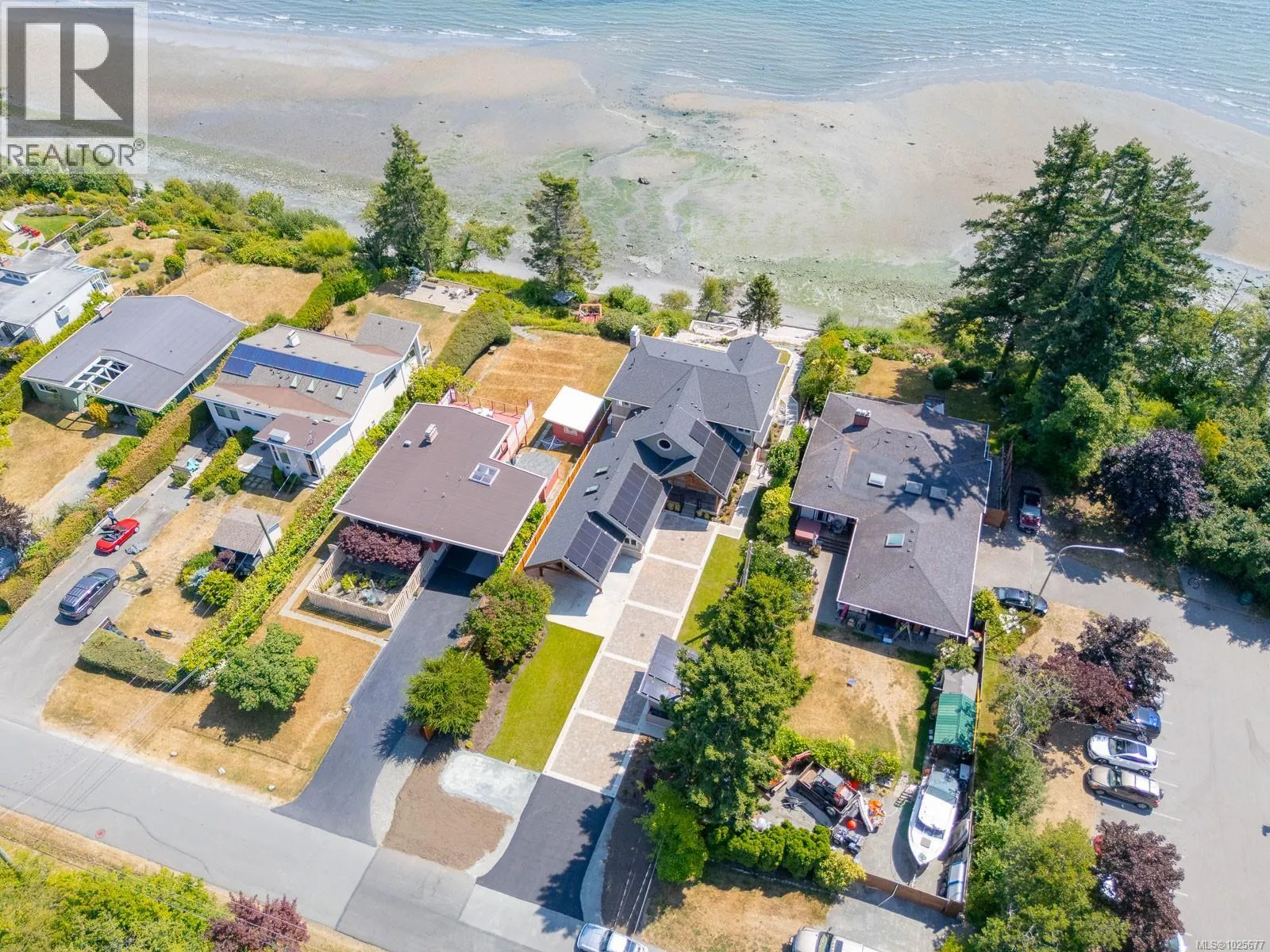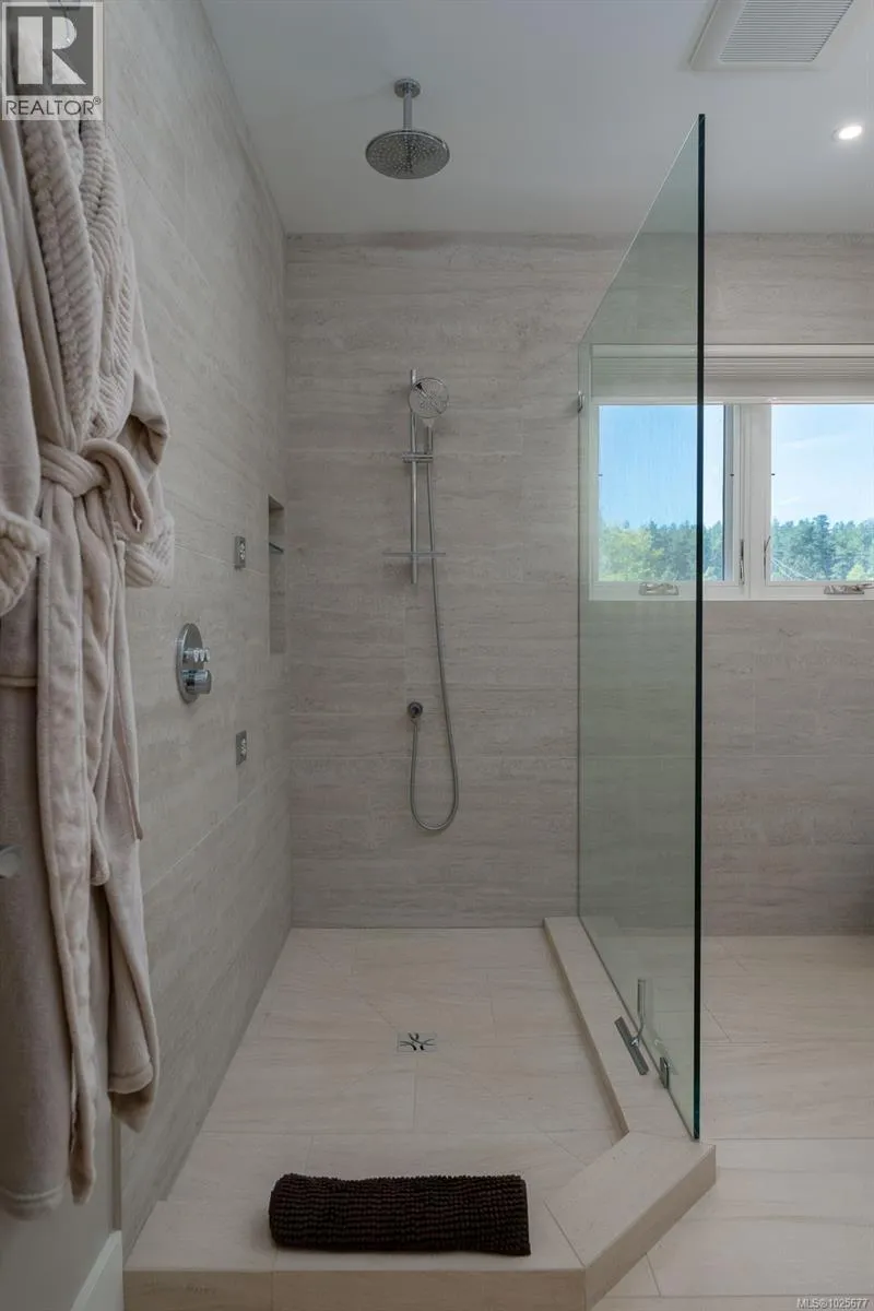 A spectacular vista awaits at this waterfront West Coast masterpiece in Cordova Bay. Situated on a 0.40-acre lot with 70 feet of beach access on Victoria's ''Street of Dreams,'' this 4,800 sq ft home features distinctive cedar timber frame architecture and luxury Loewen windows. The interior boasts a soaring two-story foyer, natural limestone flooring, and an elevator to all three floors. The gourmet kitchen is a chef's delight with a quartz island, 48'' Refrigerator/Freezer, dual fuel range, multiple dishwashers, and a butler's pantry. Entertain in the separate dining room with a built-in wine fridge or the living room with its wood-burning fireplace. The main floor also includes a bedroom with ensuite access and two spa bathrooms. The upstairs master suite features awe-inspiring views, motorized Lutron blinds, a lavish walk-in dressing room, and a ''his and her'' ensuite with a freestanding tub and two-person body sprays. Two additional bedrooms, another spa bathroom, and a full laundry room complete the upper level. The lower floor offers a custom fir wine cellar and a self-contained 2-bedroom ocean-view suite with its own kitchen, laundry, walkout patio, and hot tub. Eco-conscious buyers will appreciate the 14kW solar system and EV charger. The property includes a heated double garage, a double carport, radiant heating, heat pump A/C, and a masterpiece of masonry featuring Basalt stone walls and living wall softscaping. An offering of this calibre is a truly extraordinary treasure. (id:27476)