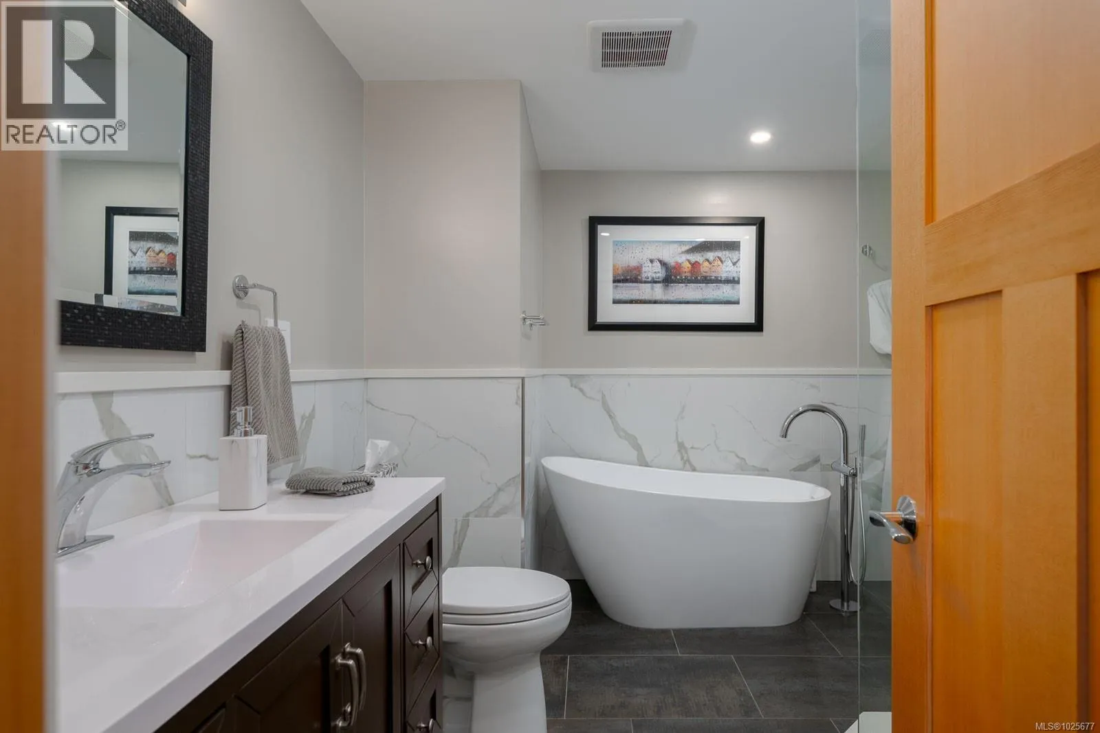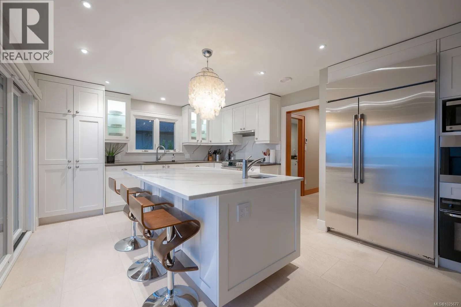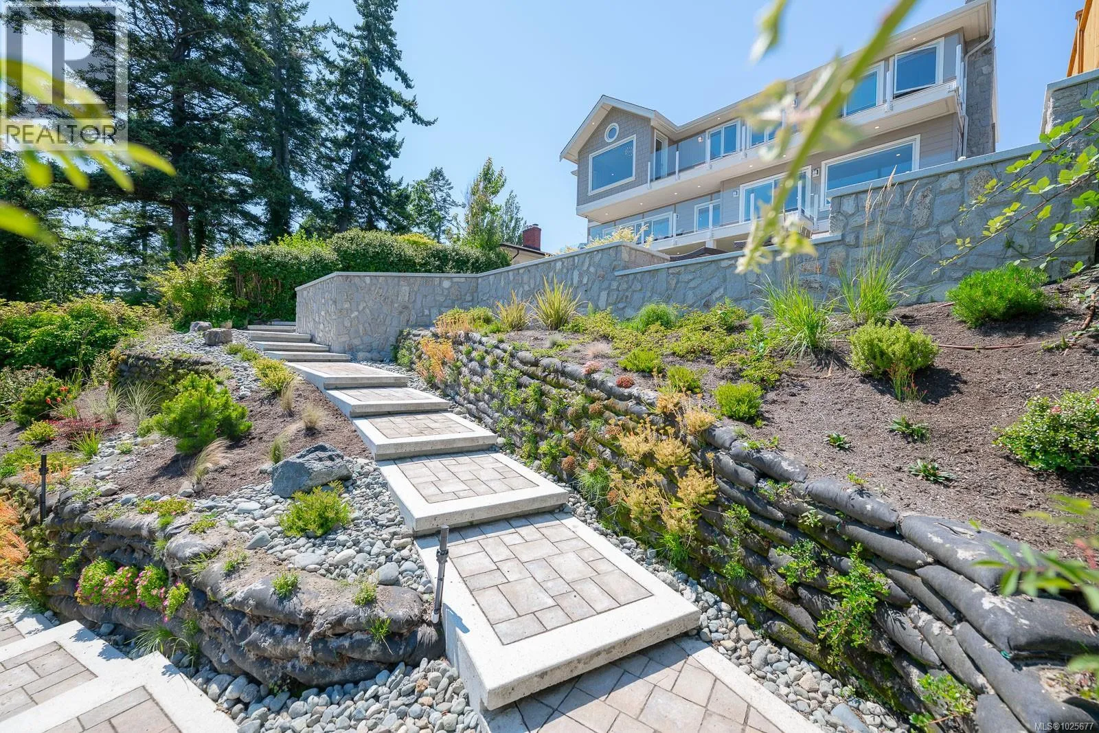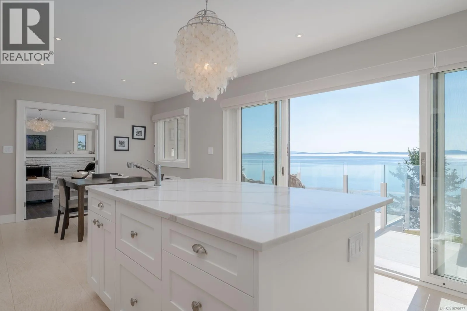 A spectacular vista awaits at this waterfront West Coast masterpiece in Cordova Bay. Situated on a 0.40-acre lot with 70 feet of beach access on Victoria's ''Street of Dreams,'' this 4,800 sq ft home features distinctive cedar timber frame architecture and luxury Loewen windows. The interior boasts a soaring two-story foyer, natural limestone flooring, and an elevator to all three floors. The gourmet kitchen is a chef's delight with a quartz island, 48'' Refrigerator/Freezer, dual fuel range, multiple dishwashers, and a butler's pantry. Entertain in the separate dining room with a built-in wine fridge or the living room with its wood-burning fireplace. The main floor also includes a bedroom with ensuite access and two spa bathrooms. The upstairs master suite features awe-inspiring views, motorized Lutron blinds, a lavish walk-in dressing room, and a ''his and her'' ensuite with a freestanding tub and two-person body sprays. Two additional bedrooms, another spa bathroom, and a full laundry room complete the upper level. The lower floor offers a custom fir wine cellar and a self-contained 2-bedroom ocean-view suite with its own kitchen, laundry, walkout patio, and hot tub. Eco-conscious buyers will appreciate the 14kW solar system and EV charger. The property includes a heated double garage, a double carport, radiant heating, heat pump A/C, and a masterpiece of masonry featuring Basalt stone walls and living wall softscaping. An offering of this calibre is a truly extraordinary treasure. (id:27476)